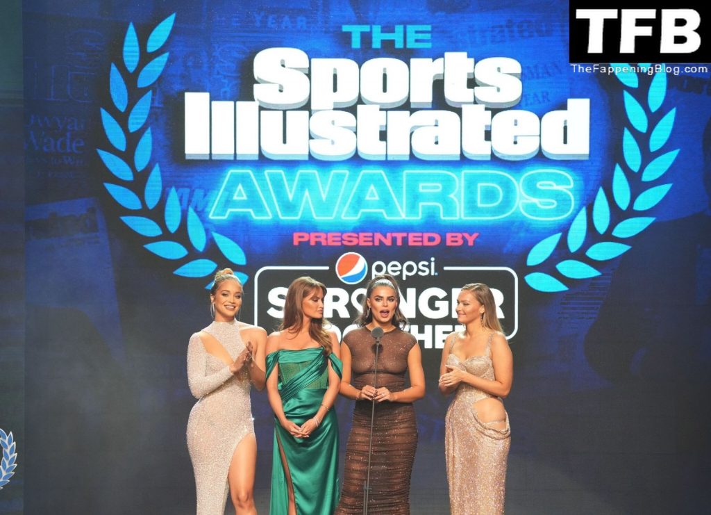 La bellissima modella Jasmine Sanders posa sul tappeto rosso e sfoggia la sua figura sul palco ai Sports Illustrated Awards 2021 a Hollywood, 07/12/2021.