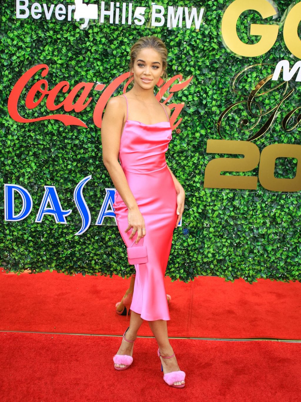 Modella Jasmine “Golden Barbie” Sanders è stata fotografata mentre posava con un vestito rosa sul red carpet al 7° Annual Gold Meets Golden a Los Angeles, 01/04/2020.