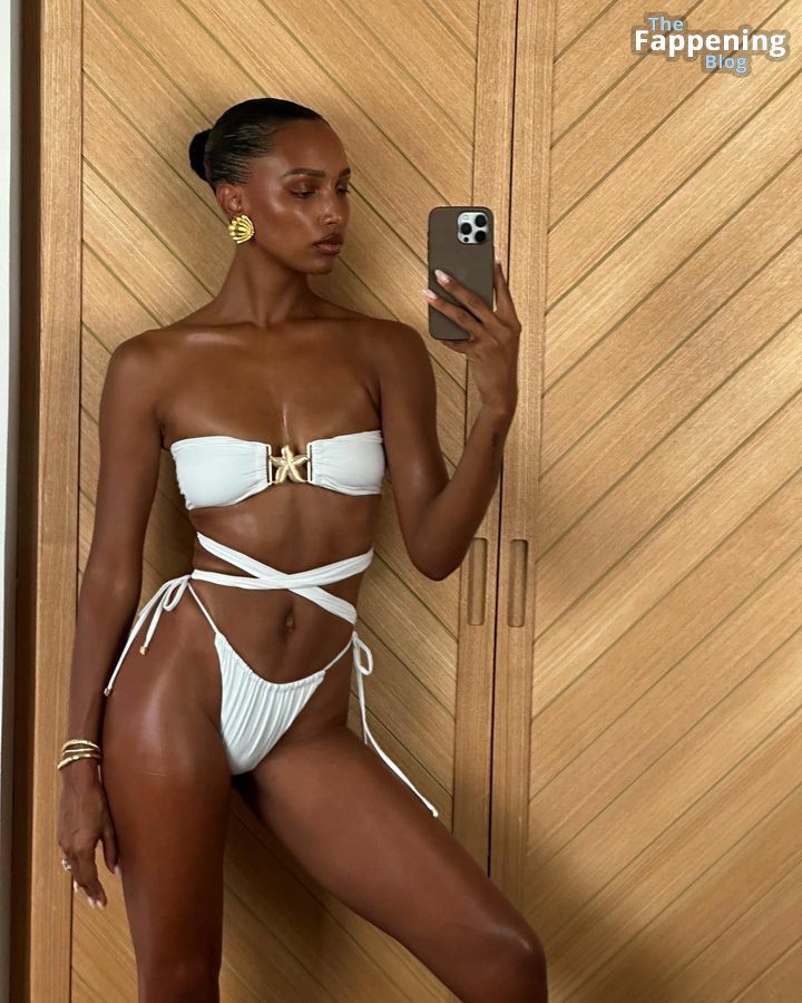 Dai un’occhiata! Jasmine Tookes è favolosa nei suoi selfie in bikini bianco super hot. Preparati a rimanere incantato da questo servizio fotografico selfie sui social media.
