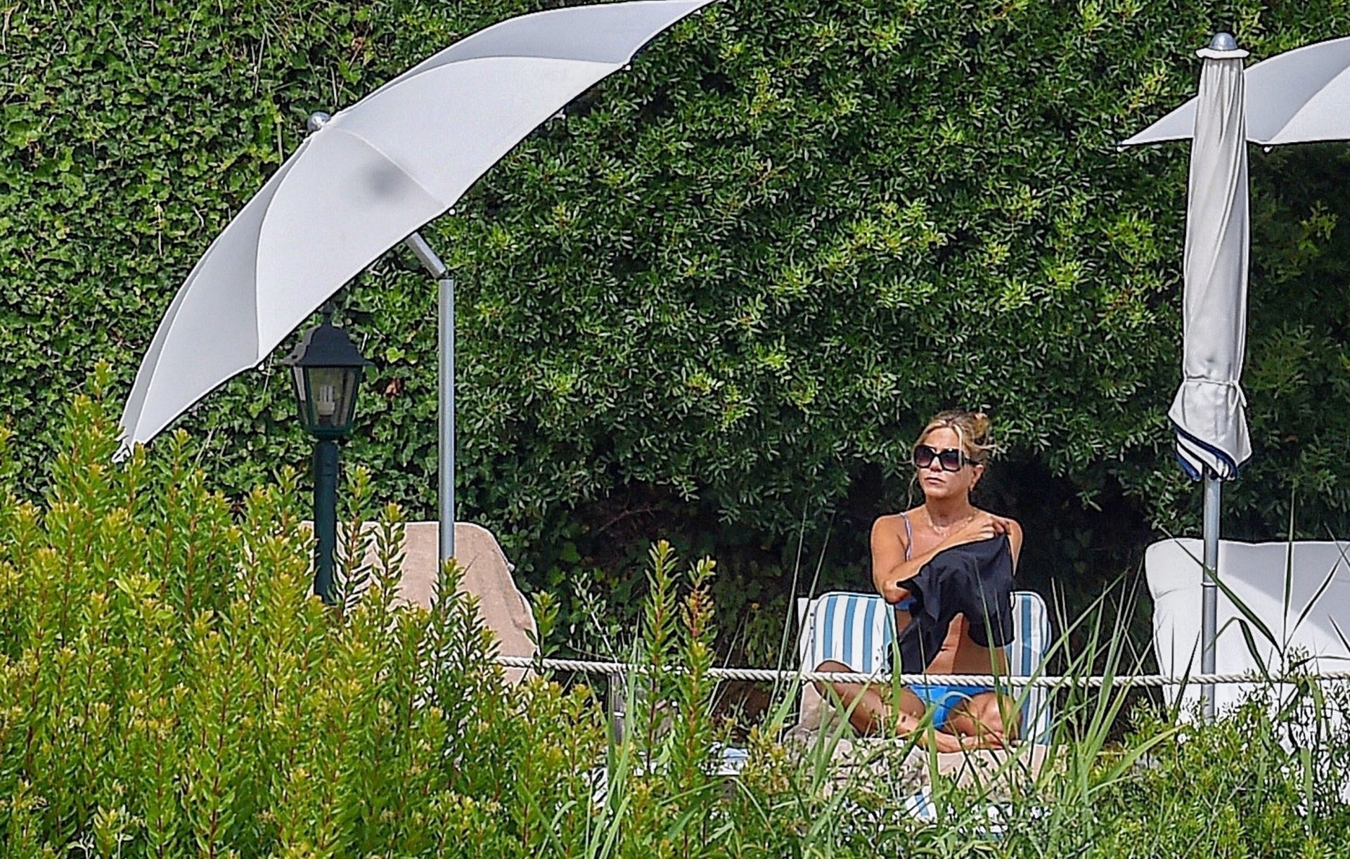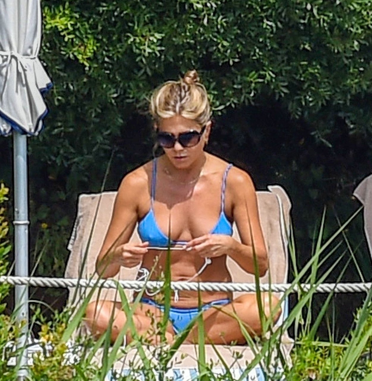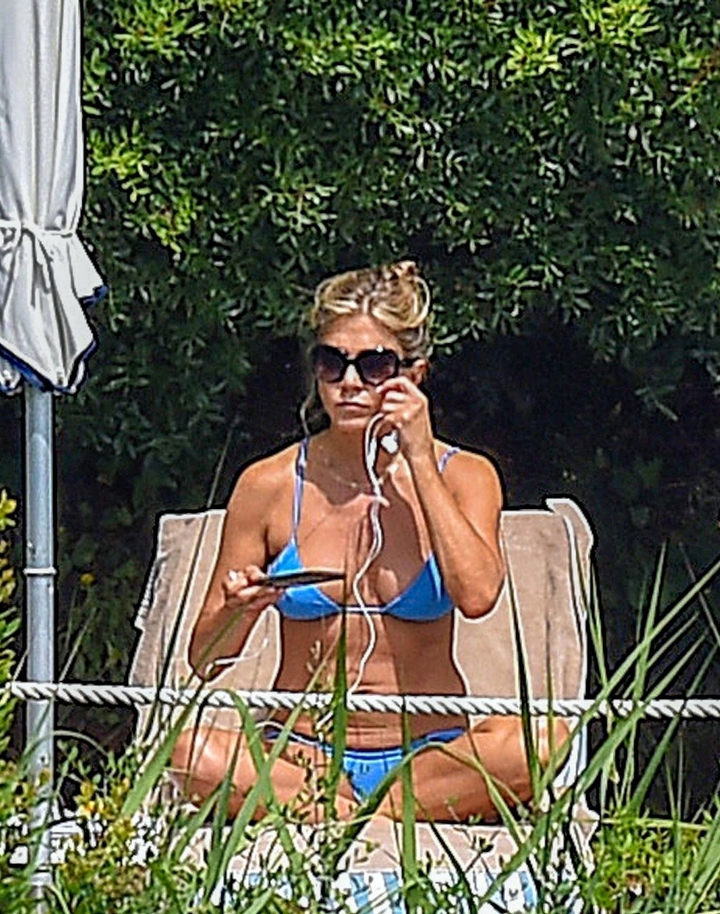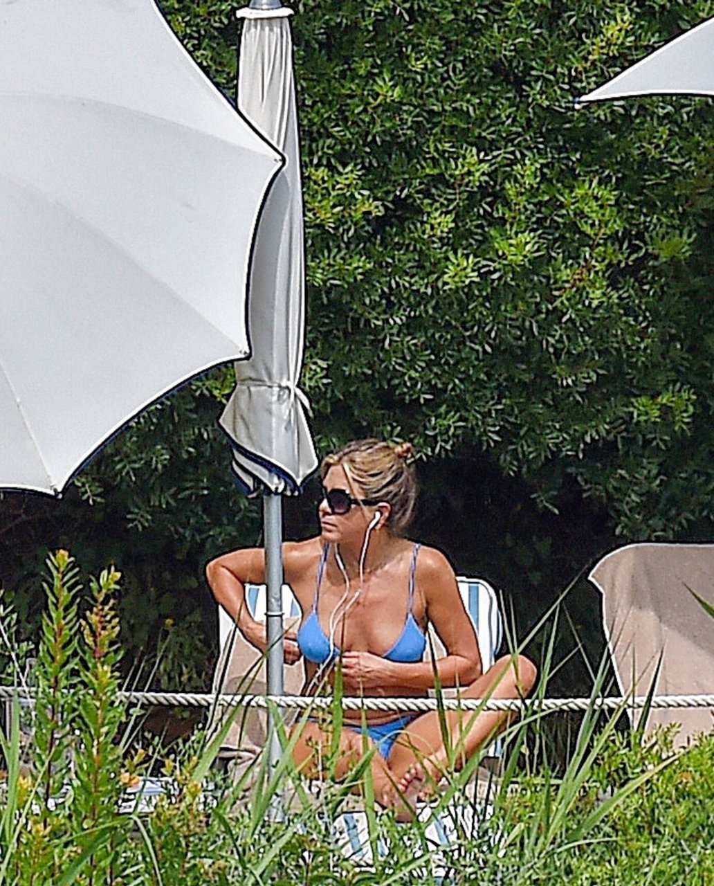 L’attrice americana Jennifer Aniston (49) mostra il suo corpo tonico in bikini mentre viene fotografata mentre si rilassa a bordo piscina a Portofino prima dell’inizio delle riprese del suo nuovo film “Murder Mystery,” 22/07/2018.