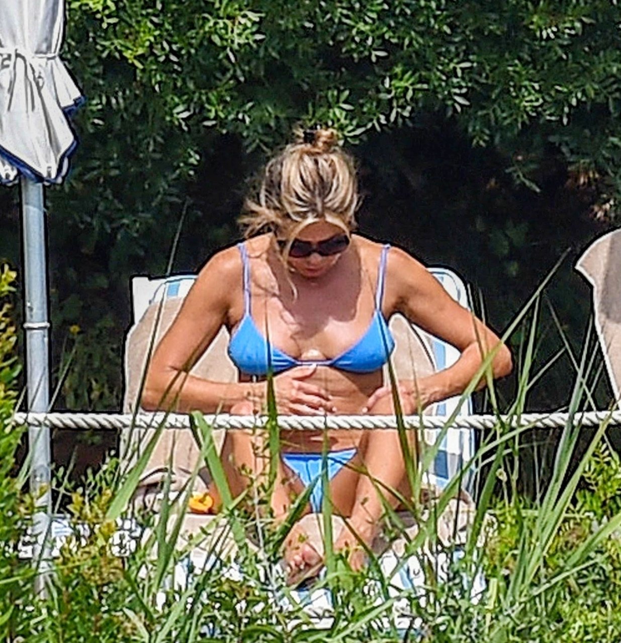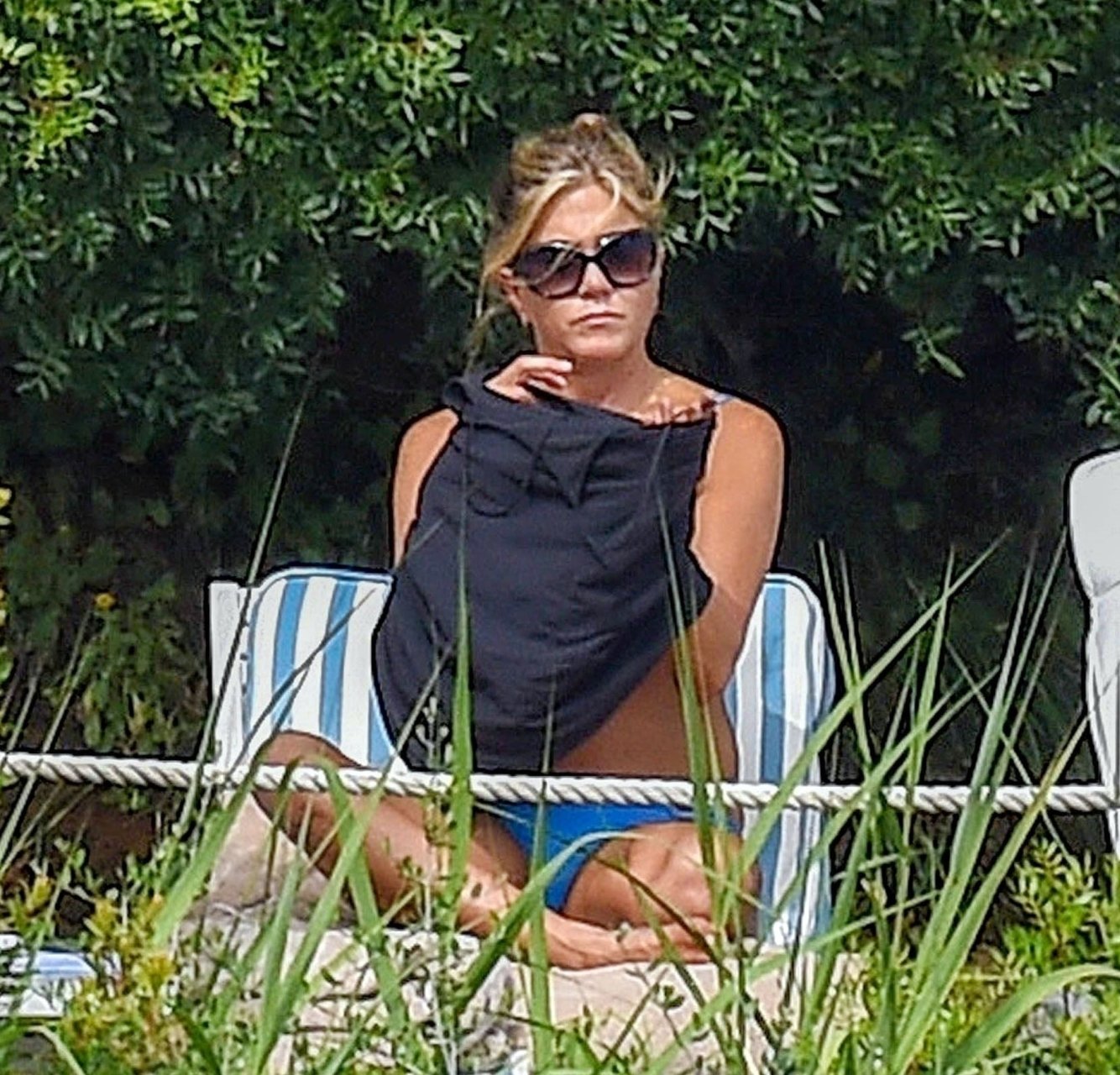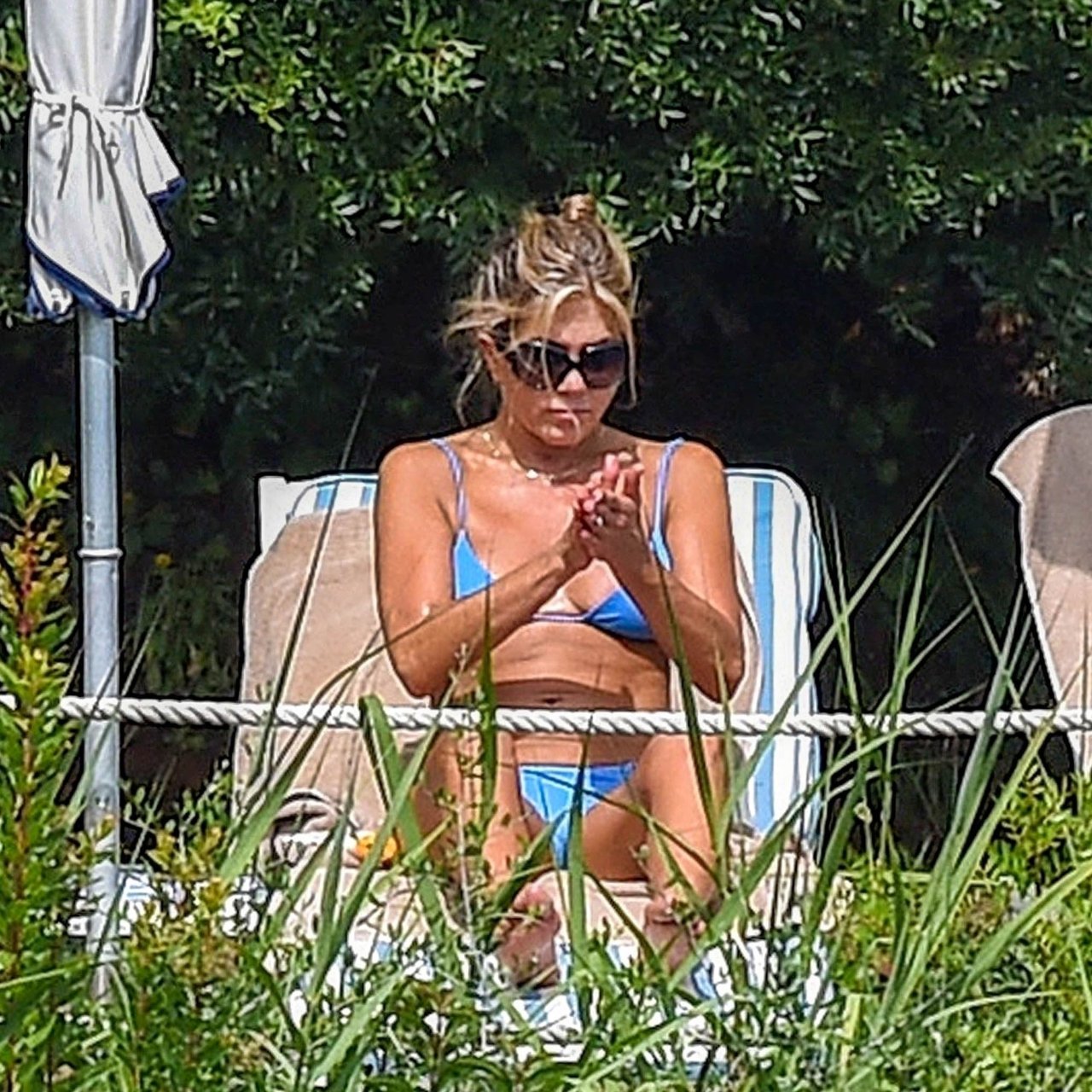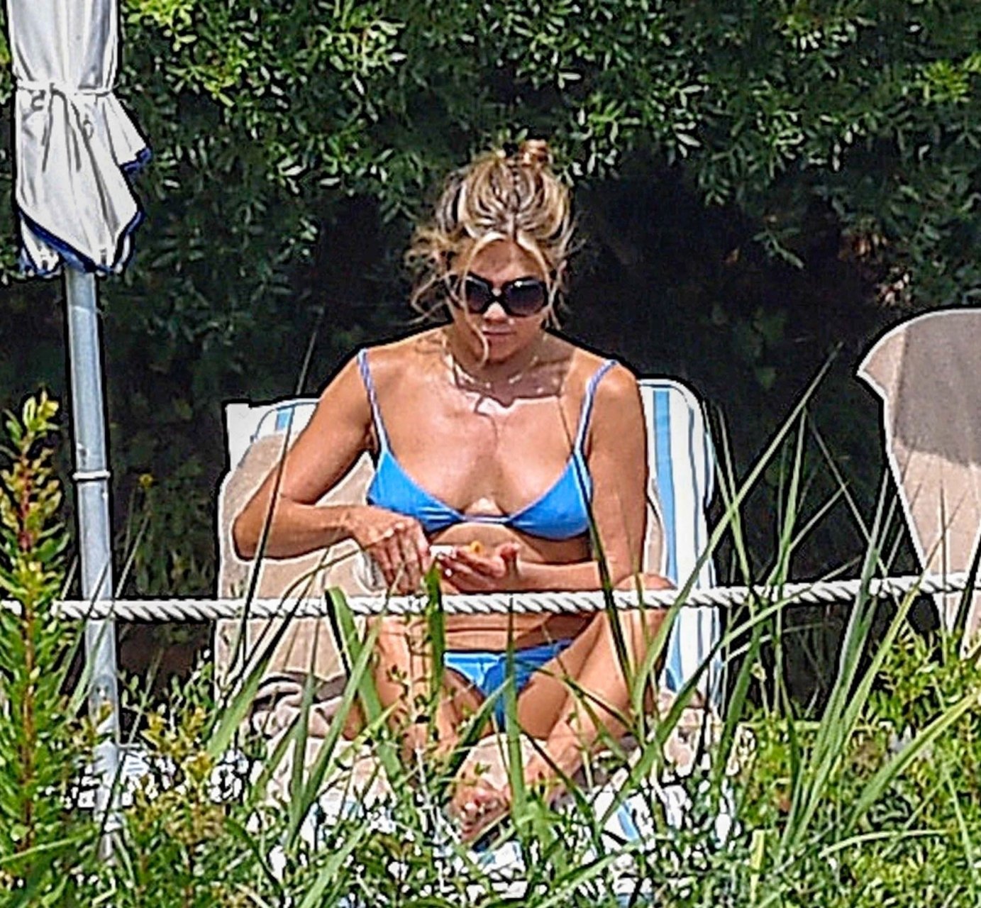 L’attrice americana Jennifer Aniston (49) mostra il suo corpo tonico in bikini mentre viene fotografata mentre si rilassa a bordo piscina a Portofino prima dell’inizio delle riprese del suo nuovo film “Murder Mystery,” 22/07/2018.