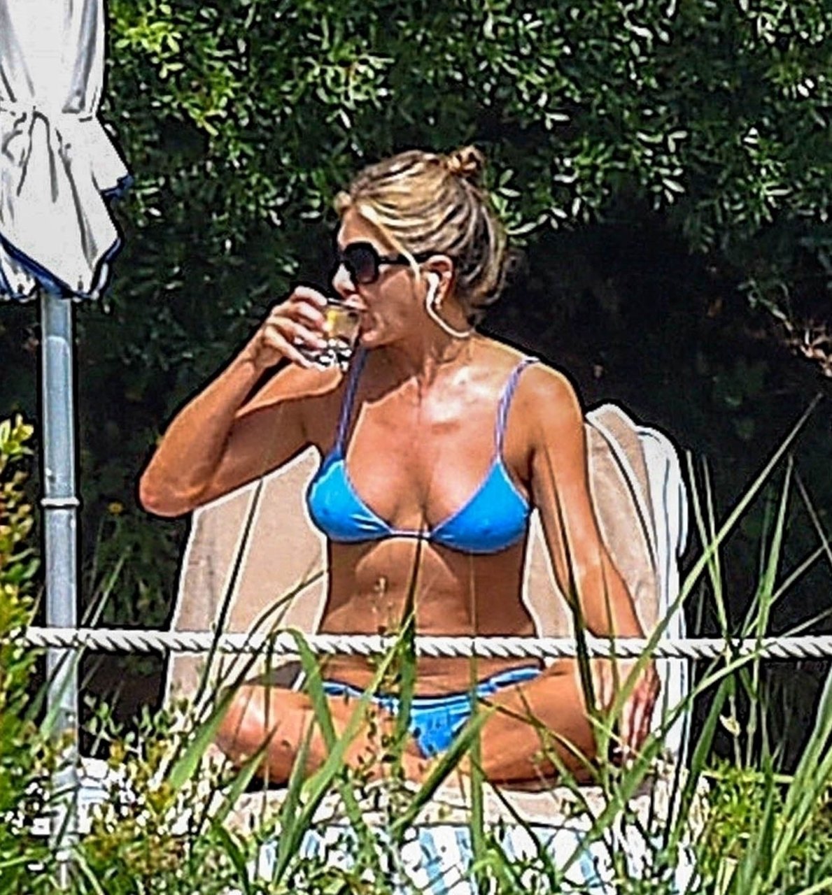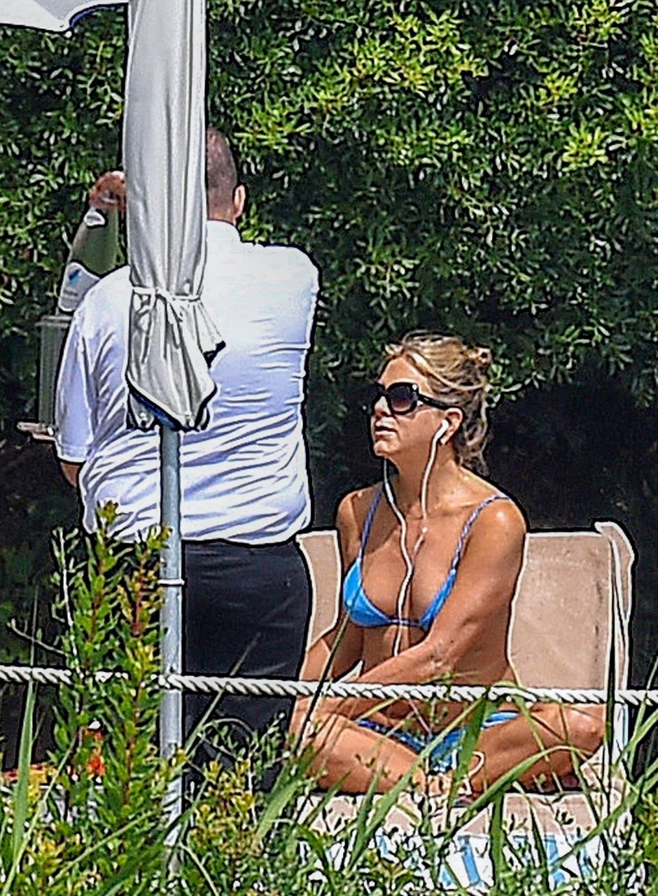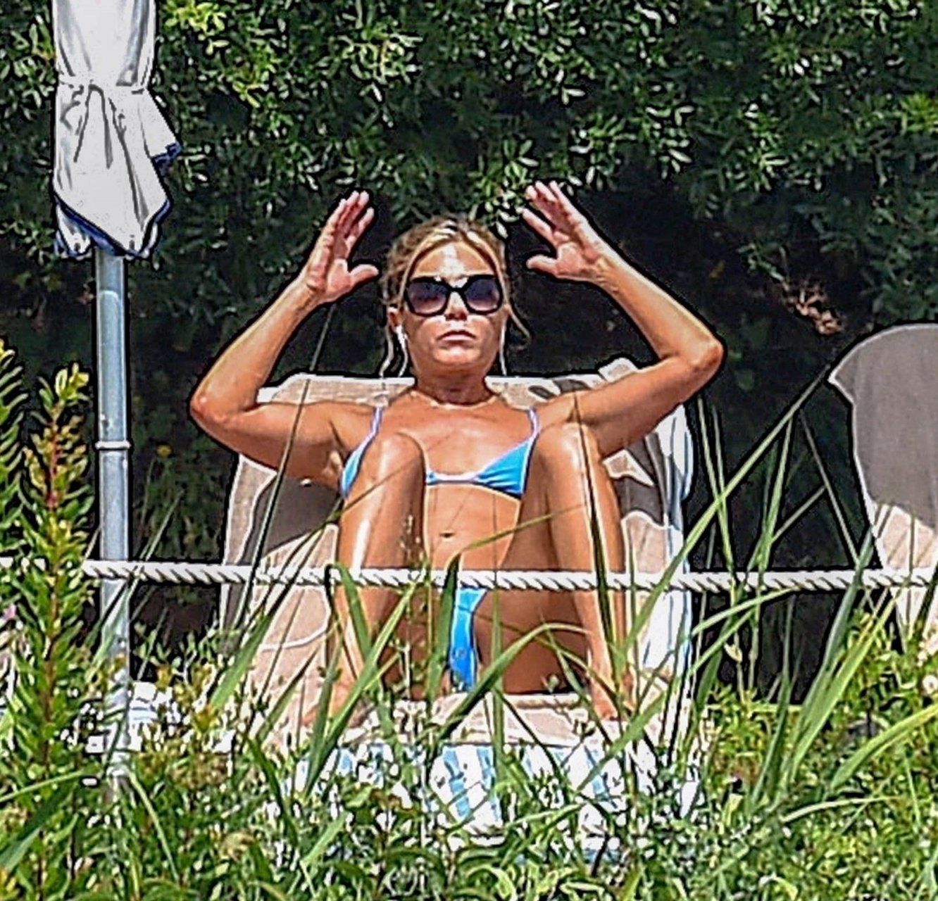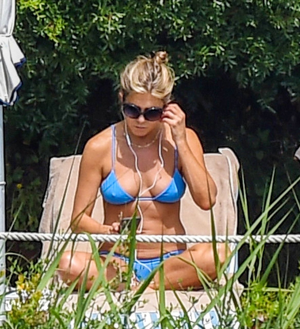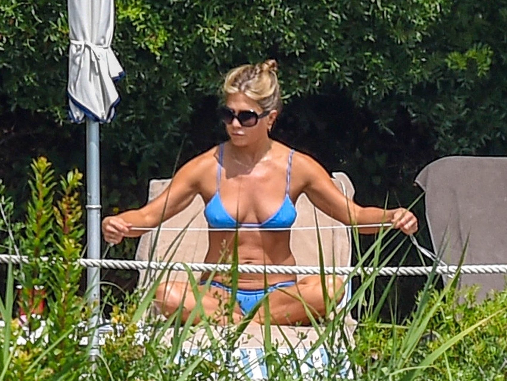 L’attrice americana Jennifer Aniston (49) mostra il suo corpo tonico in bikini mentre viene fotografata mentre si rilassa a bordo piscina a Portofino prima dell’inizio delle riprese del suo nuovo film “Murder Mystery,” 22/07/2018.