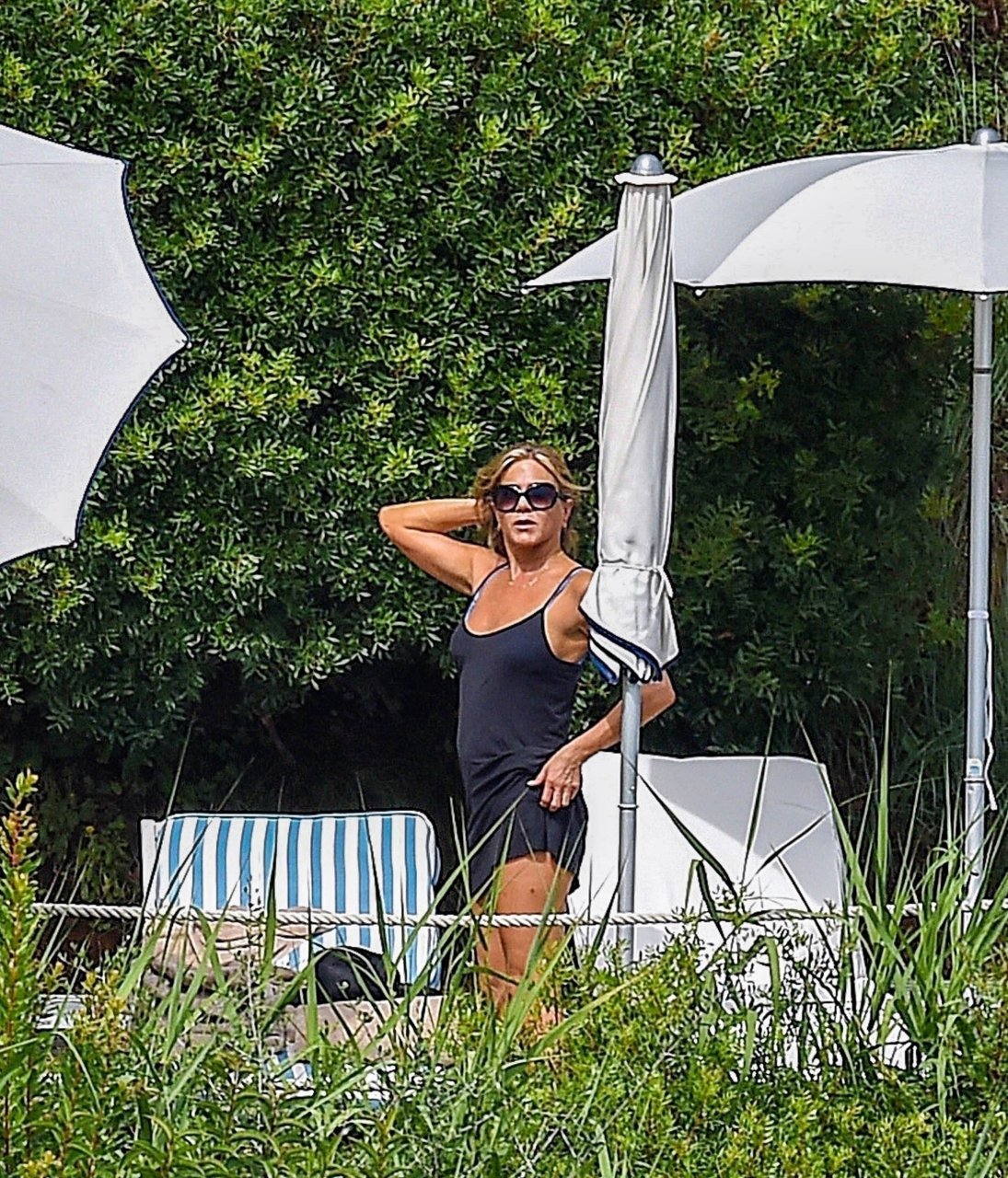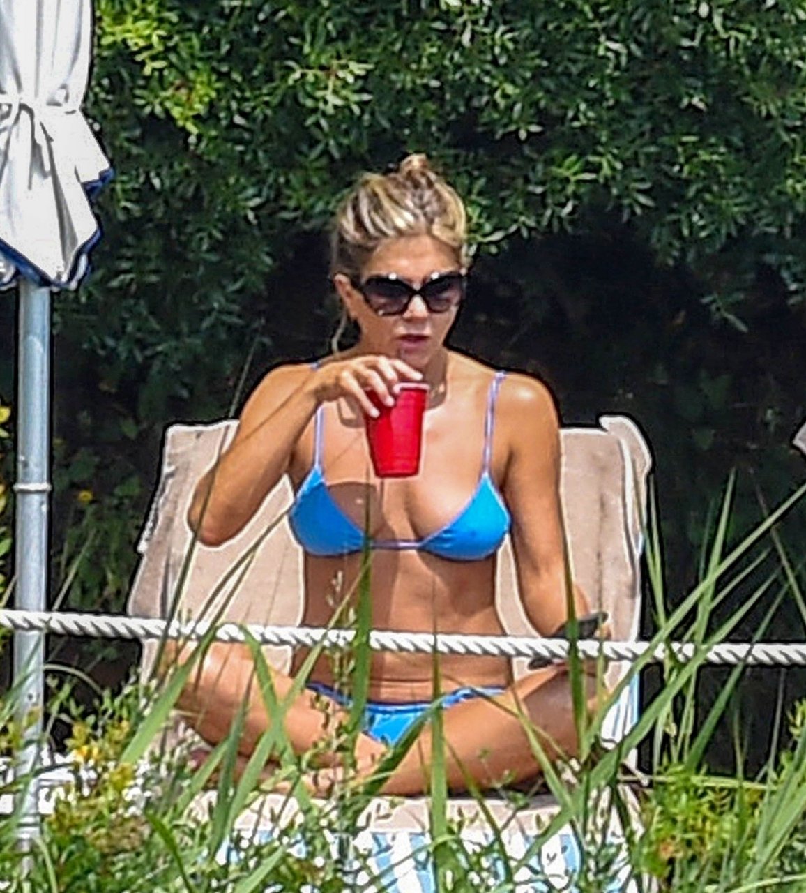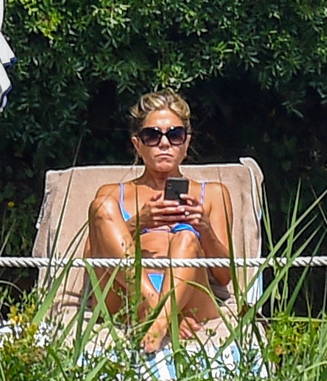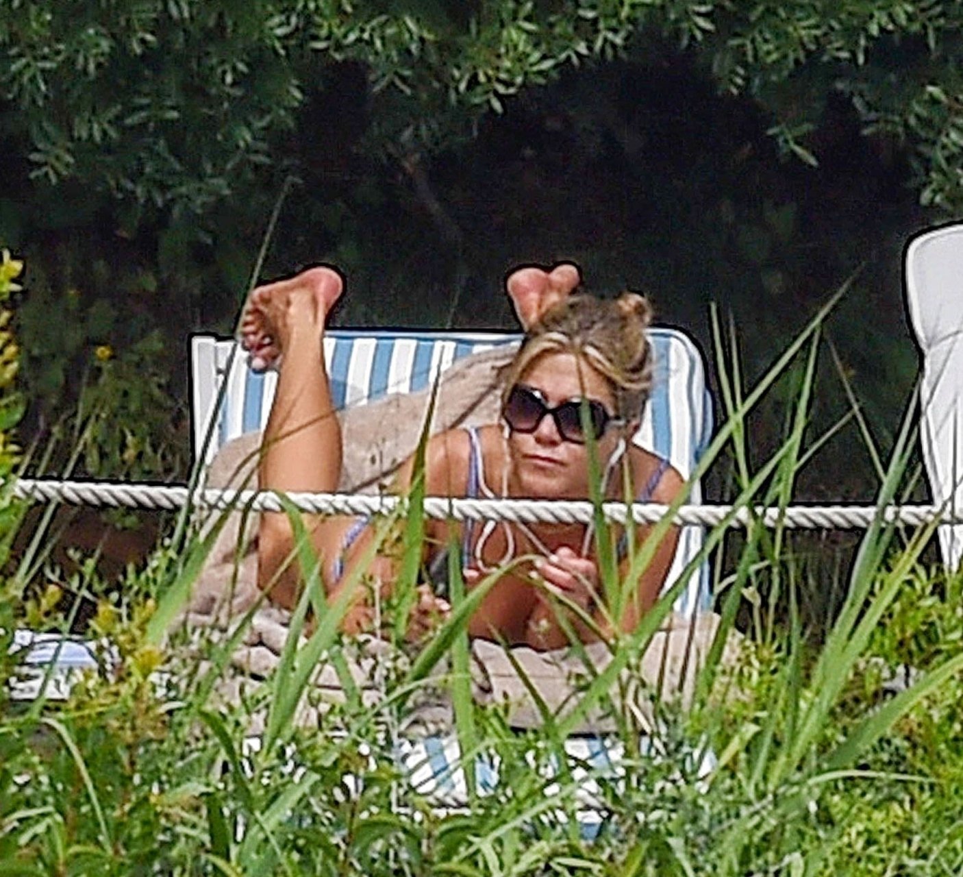 L’attrice americana Jennifer Aniston (49) mostra il suo corpo tonico in bikini mentre viene fotografata mentre si rilassa a bordo piscina a Portofino prima dell’inizio delle riprese del suo nuovo film “Murder Mystery,” 22/07/2018.