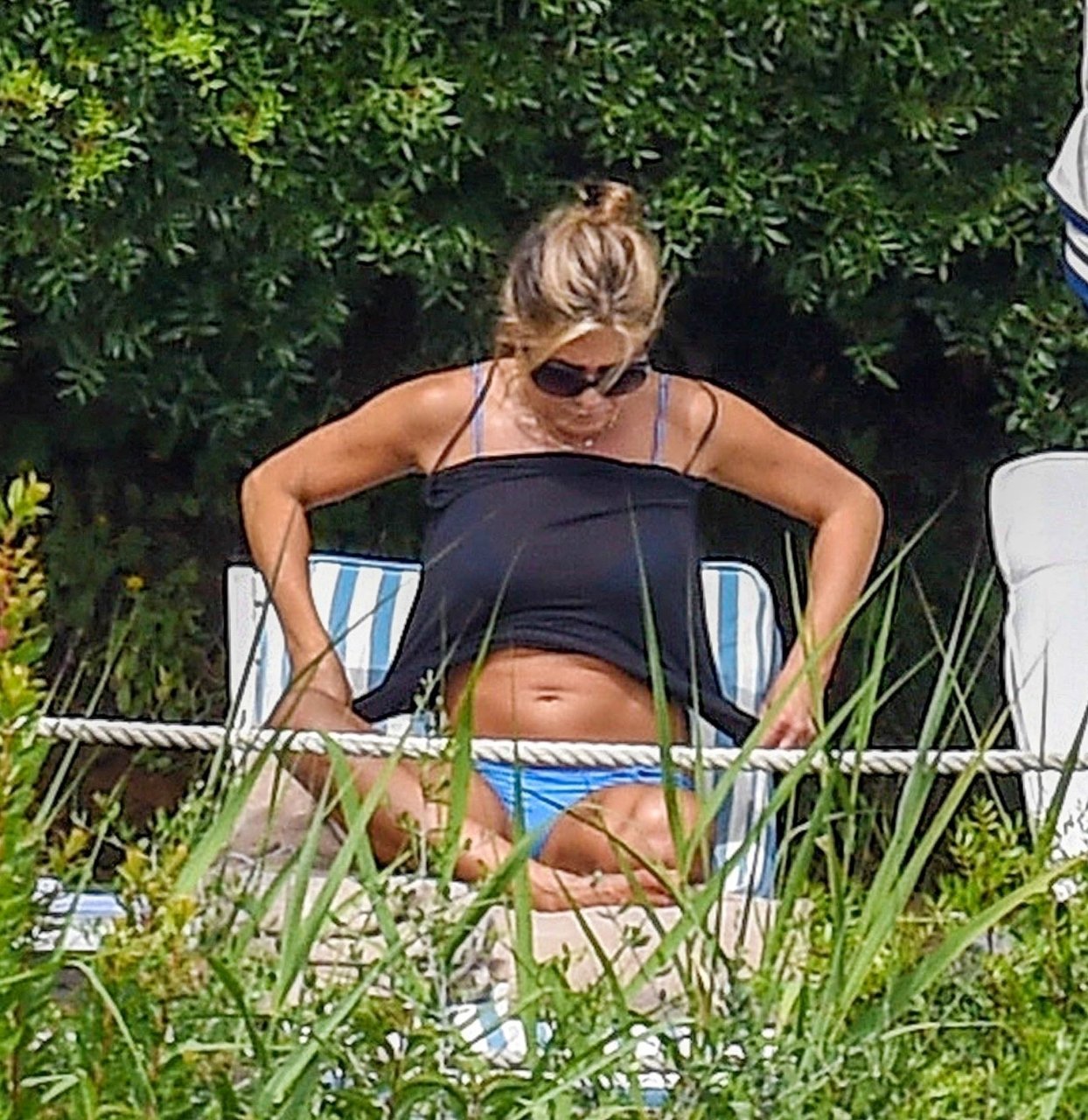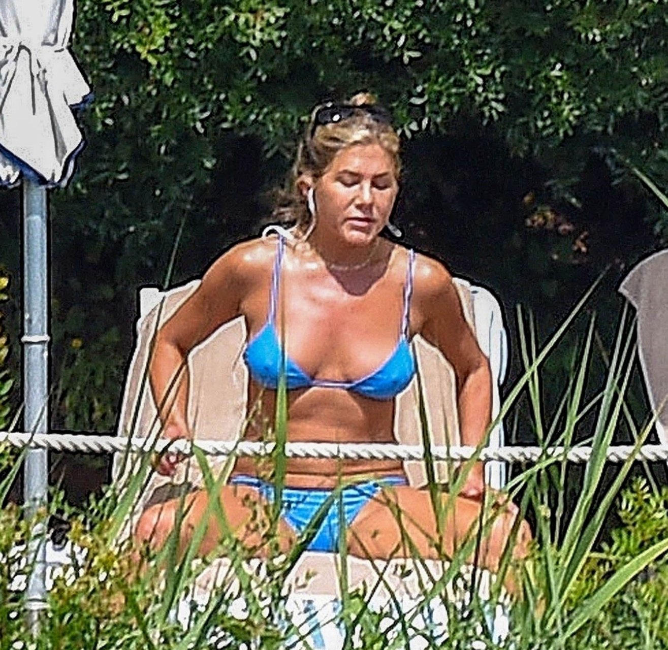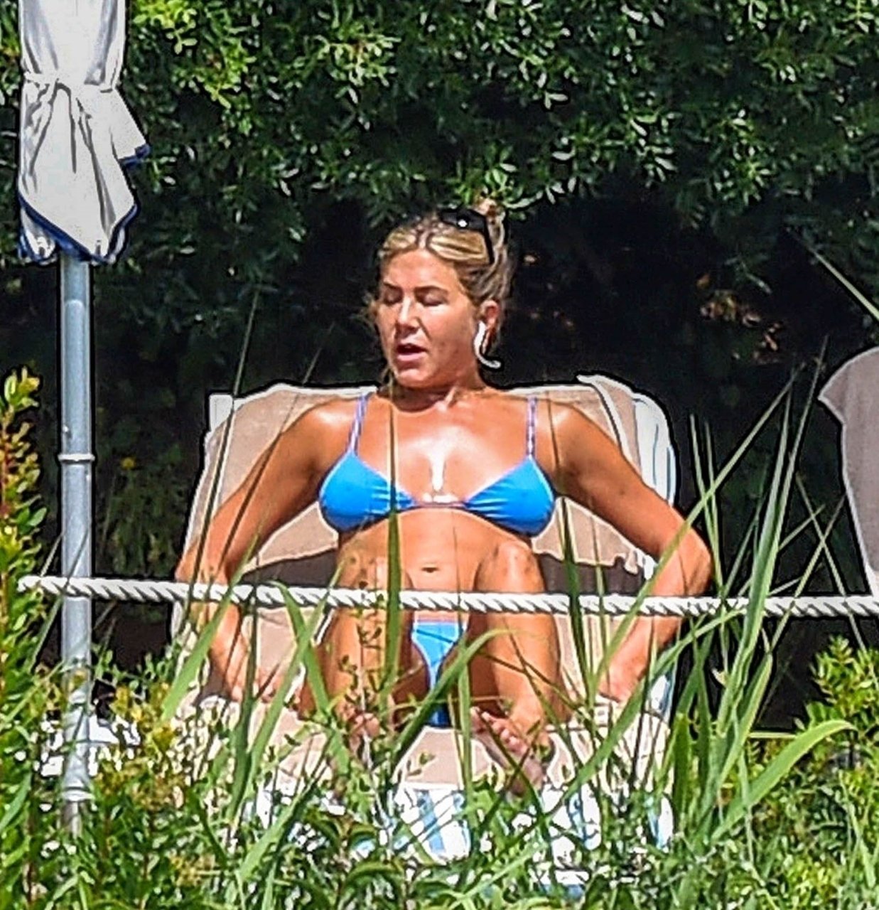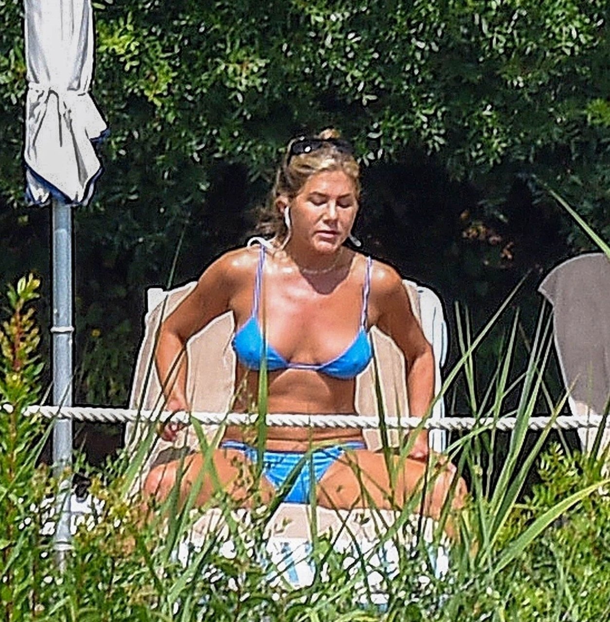 L’attrice americana Jennifer Aniston (49) mostra il suo corpo tonico in bikini mentre viene fotografata mentre si rilassa a bordo piscina a Portofino prima dell’inizio delle riprese del suo nuovo film “Murder Mystery,” 22/07/2018.