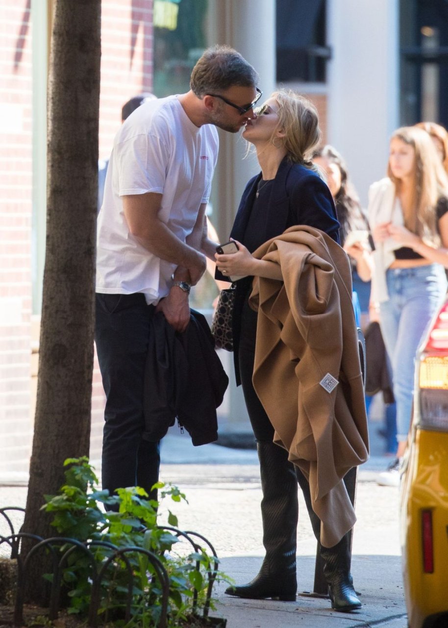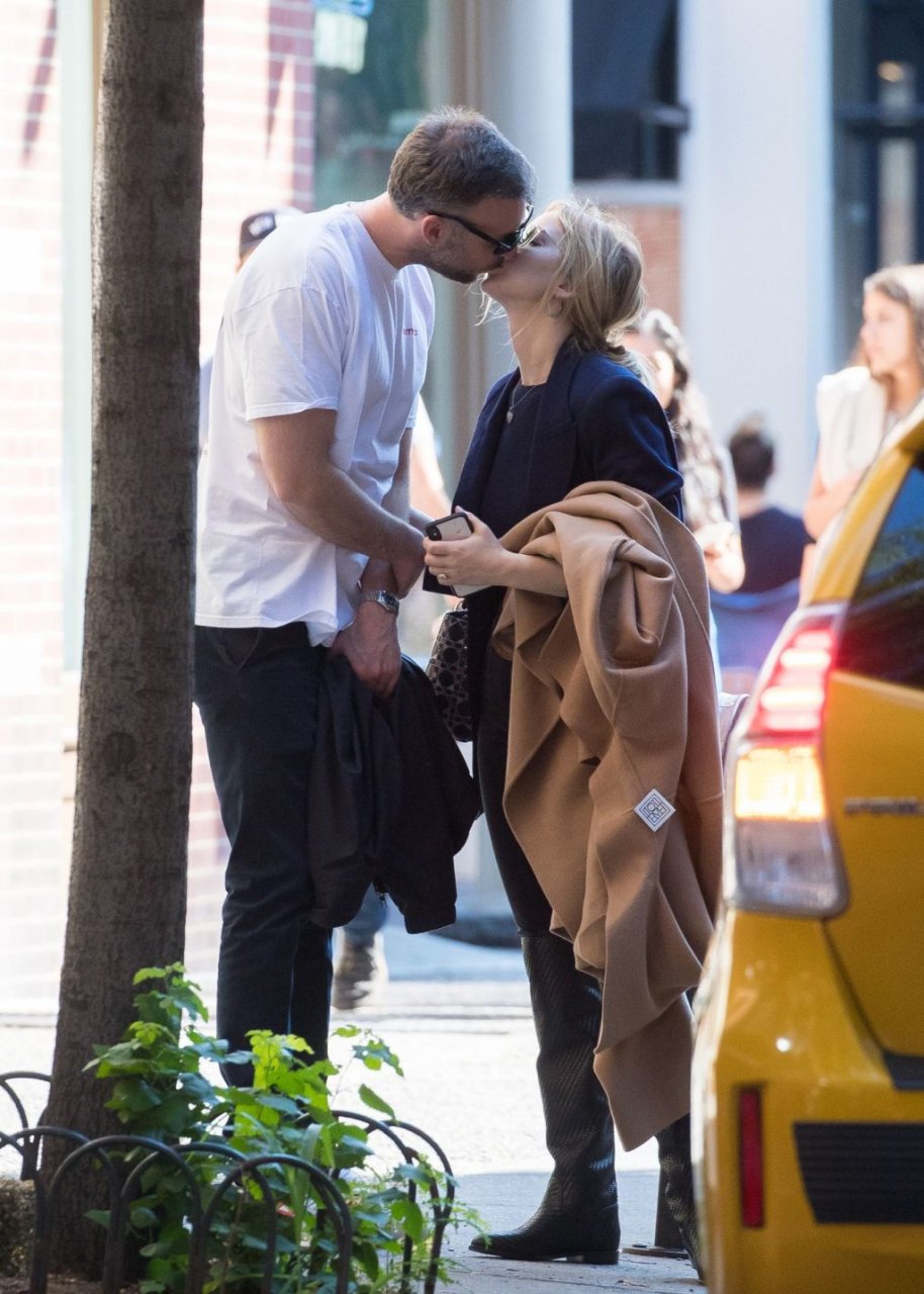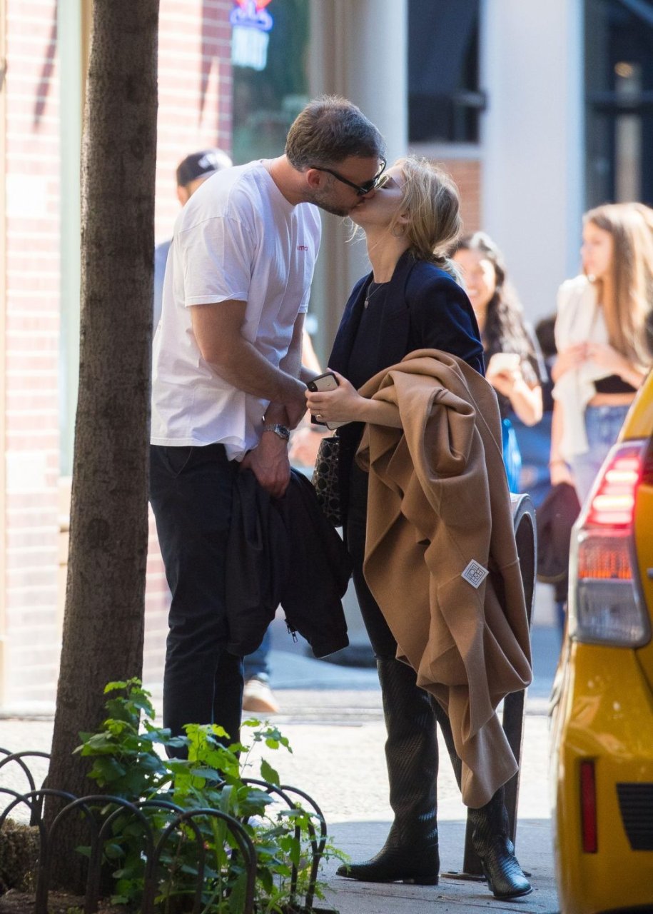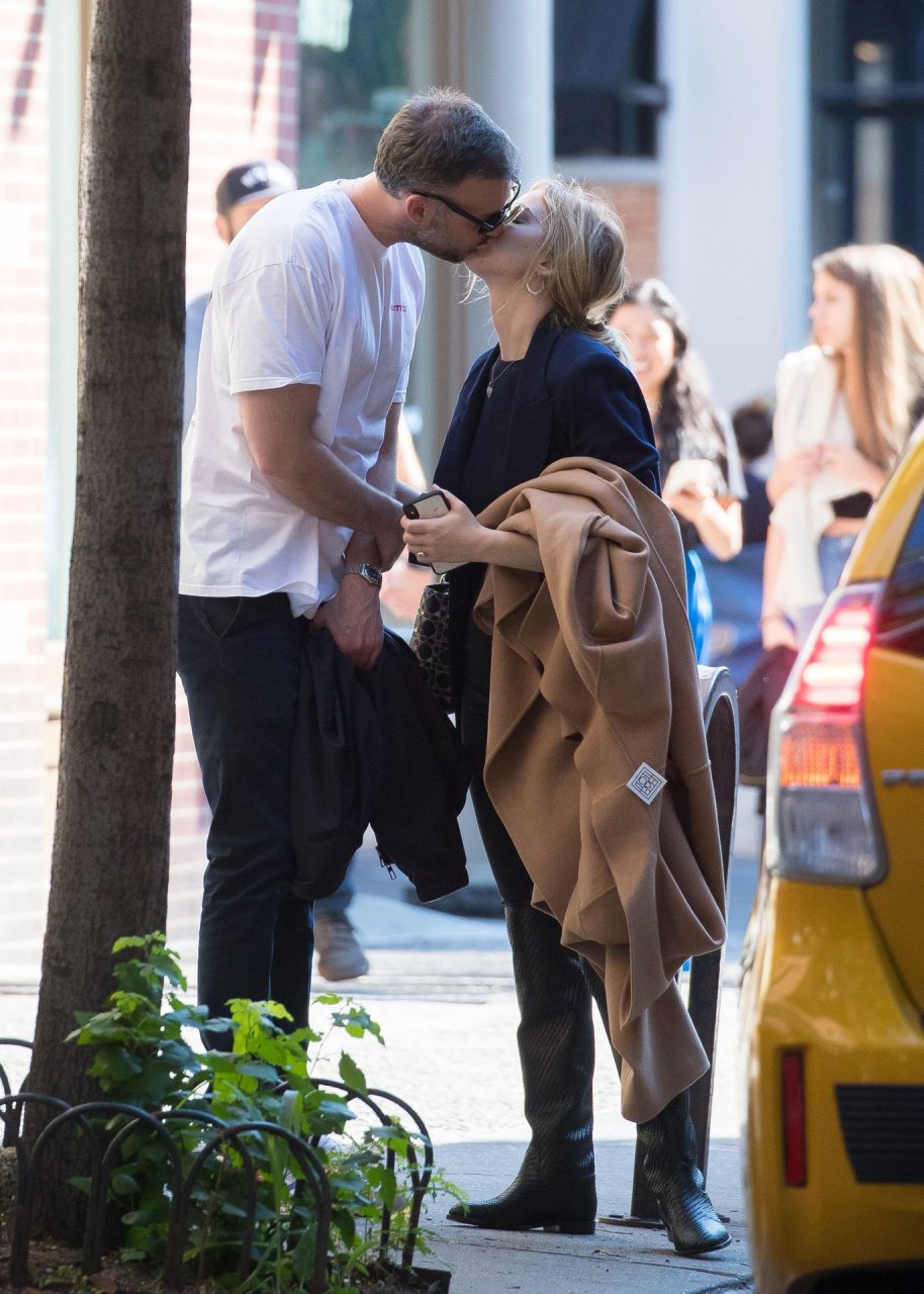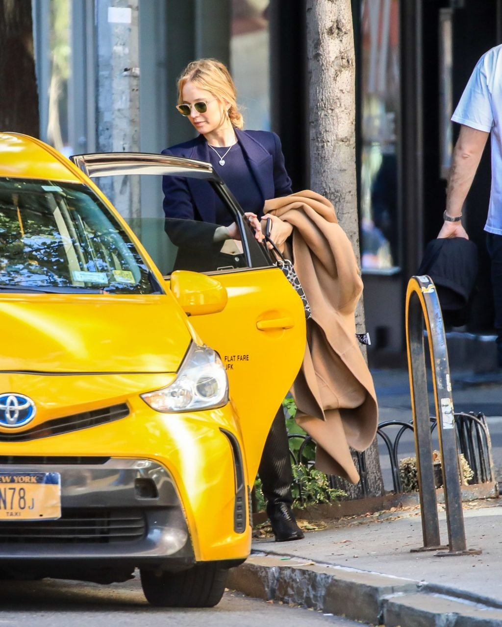 Jennifer Lawrence e Cooke Maroney si scambiano un lungo bacio prima di separarsi a New York City, 14/10/2019. L’attrice di 29 anni portava una borsa Dior e indossava un blazer nero, un crop top, pantaloni con bottoni e stivali al ginocchio.