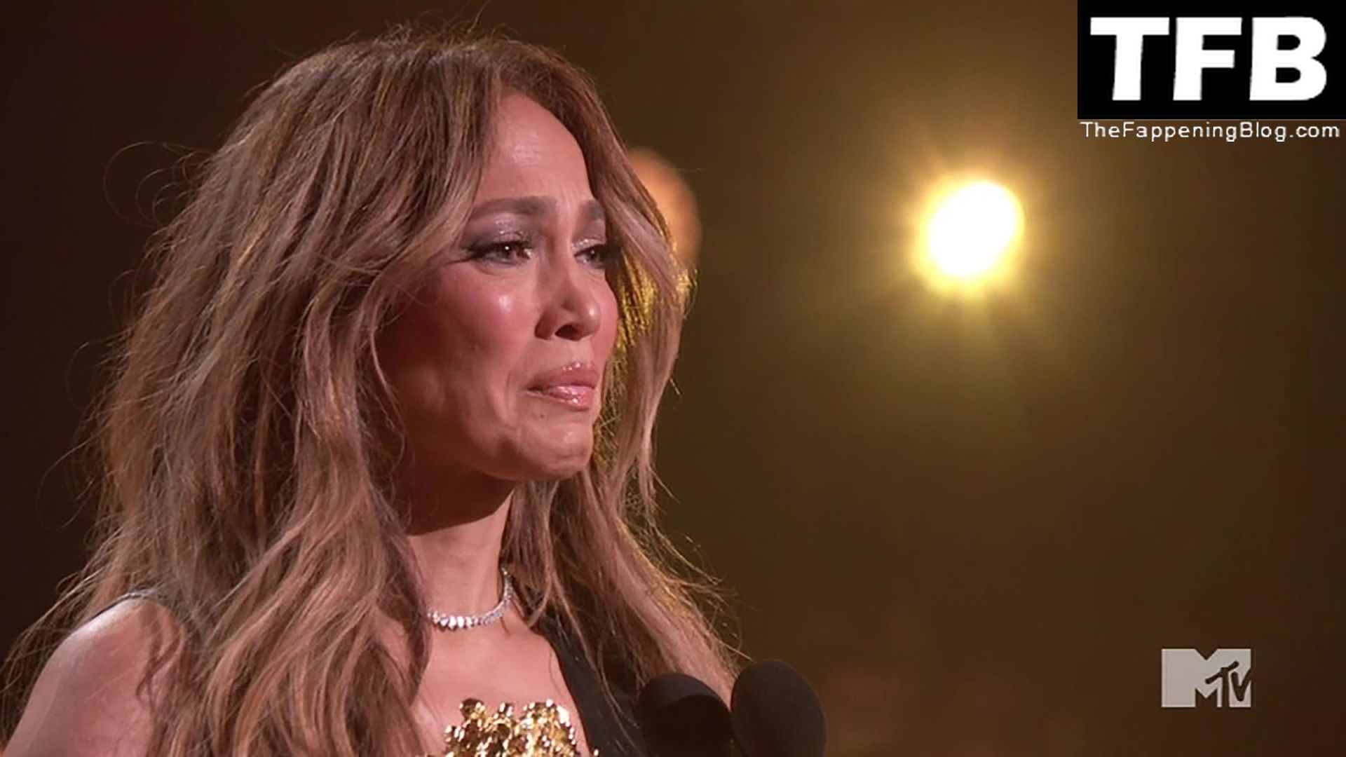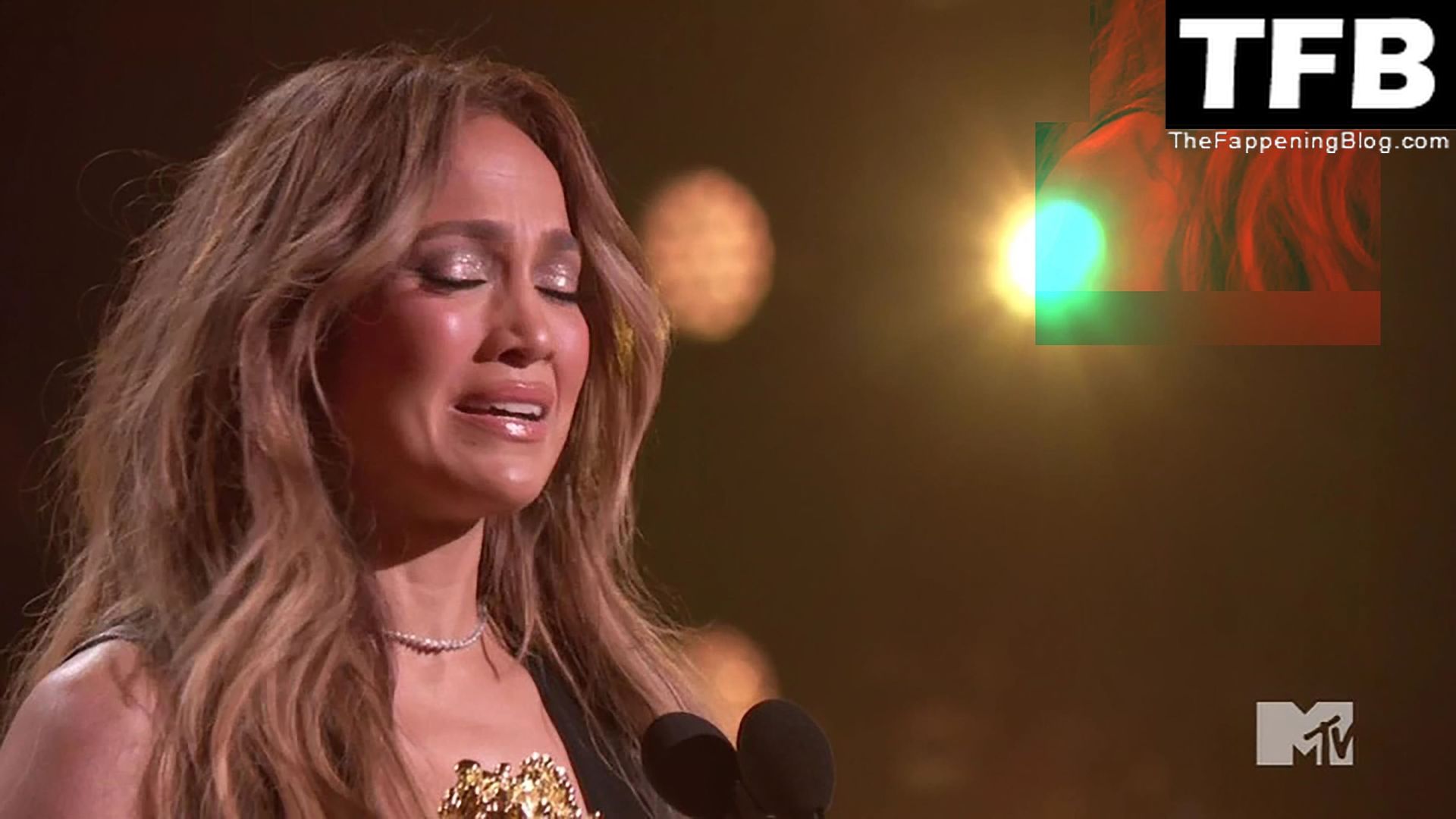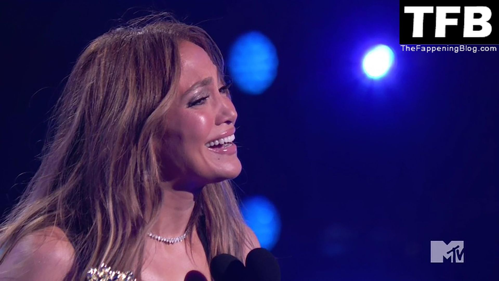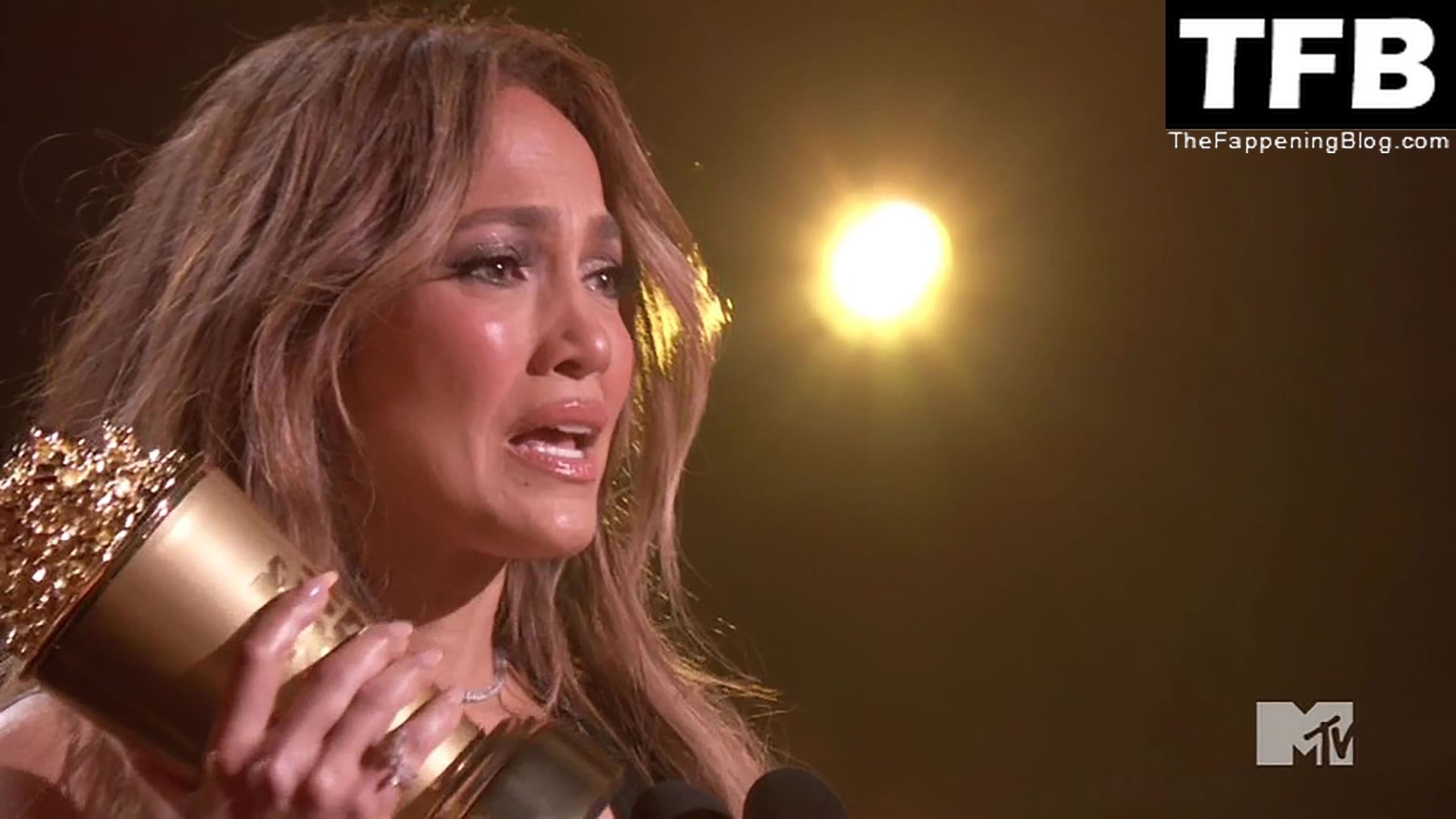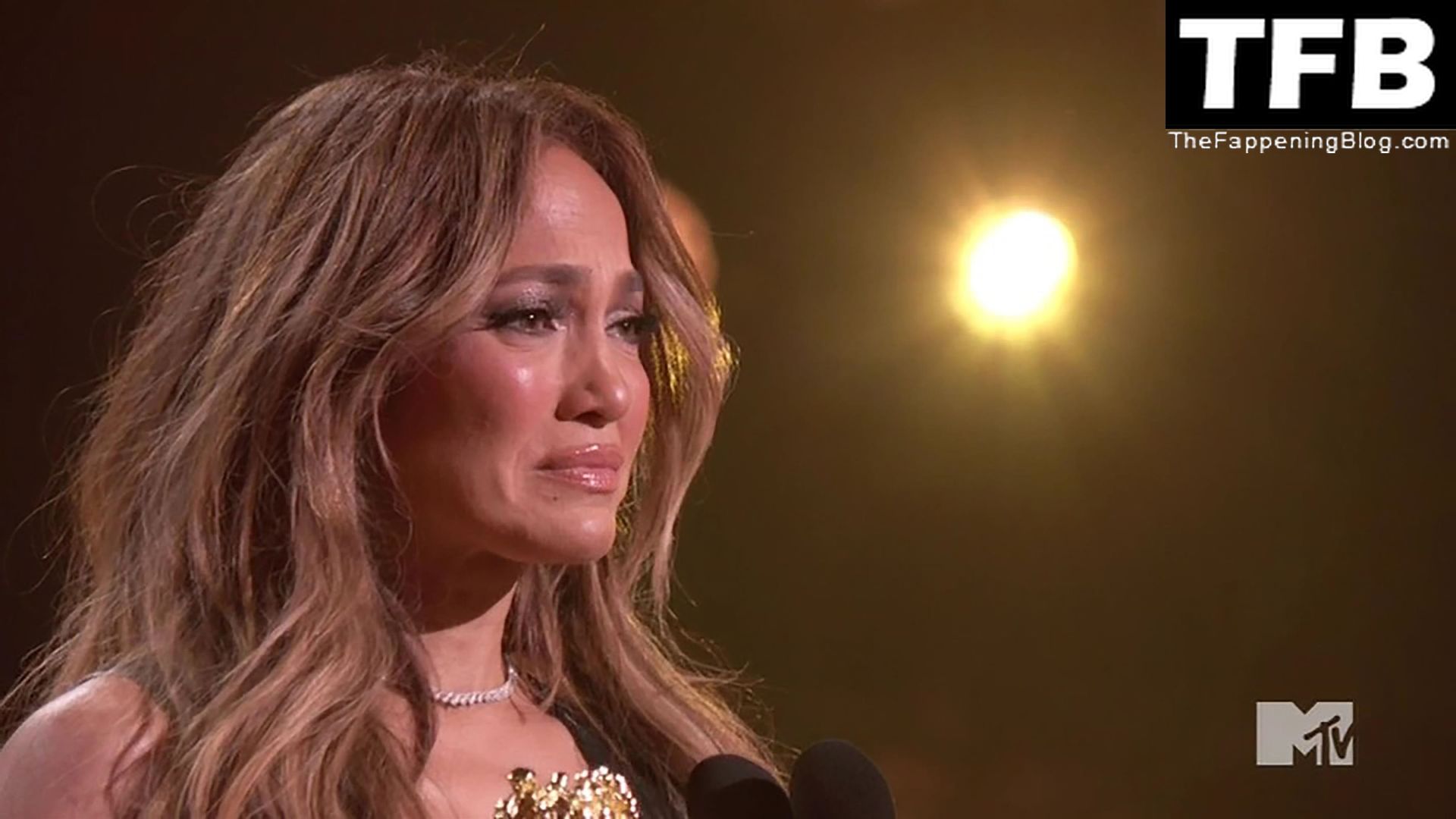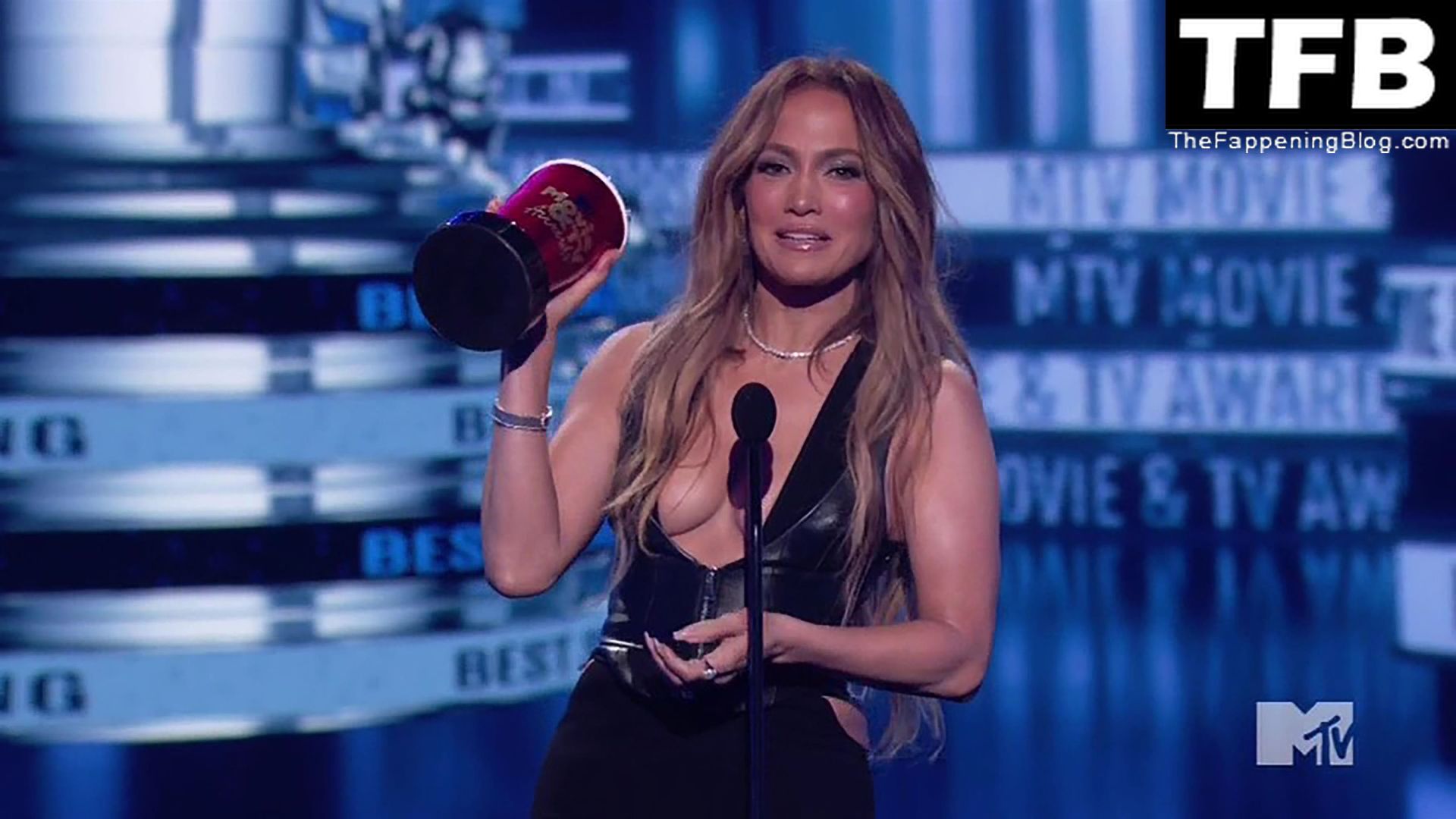 Jennifer Lopez è ritratta sul red carpet degli MTV Movie & TV Awards al Barker Hangar di Santa Monica, 06/05/2022. La cantante si emoziona mentre riceve il Generational Award.