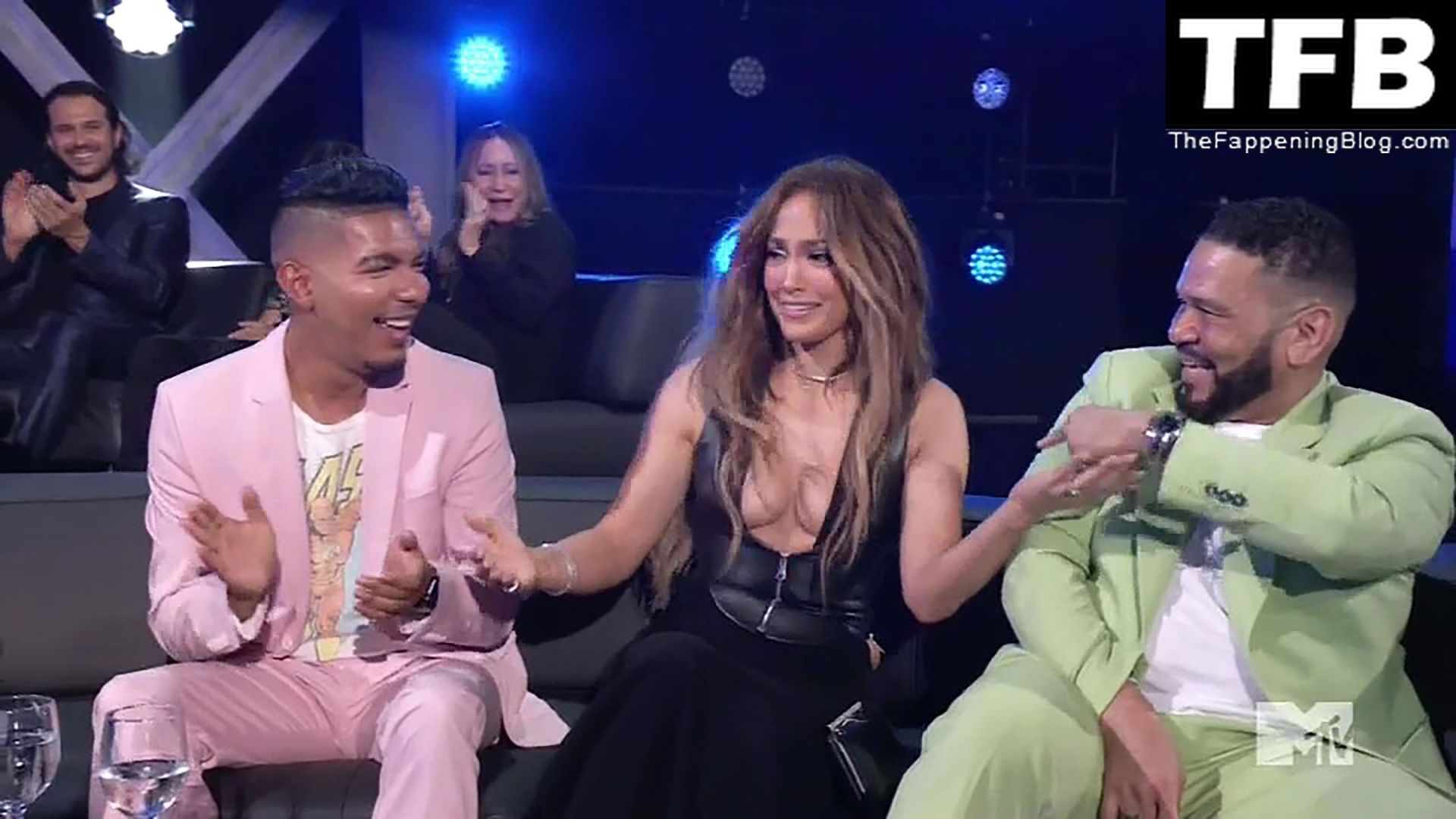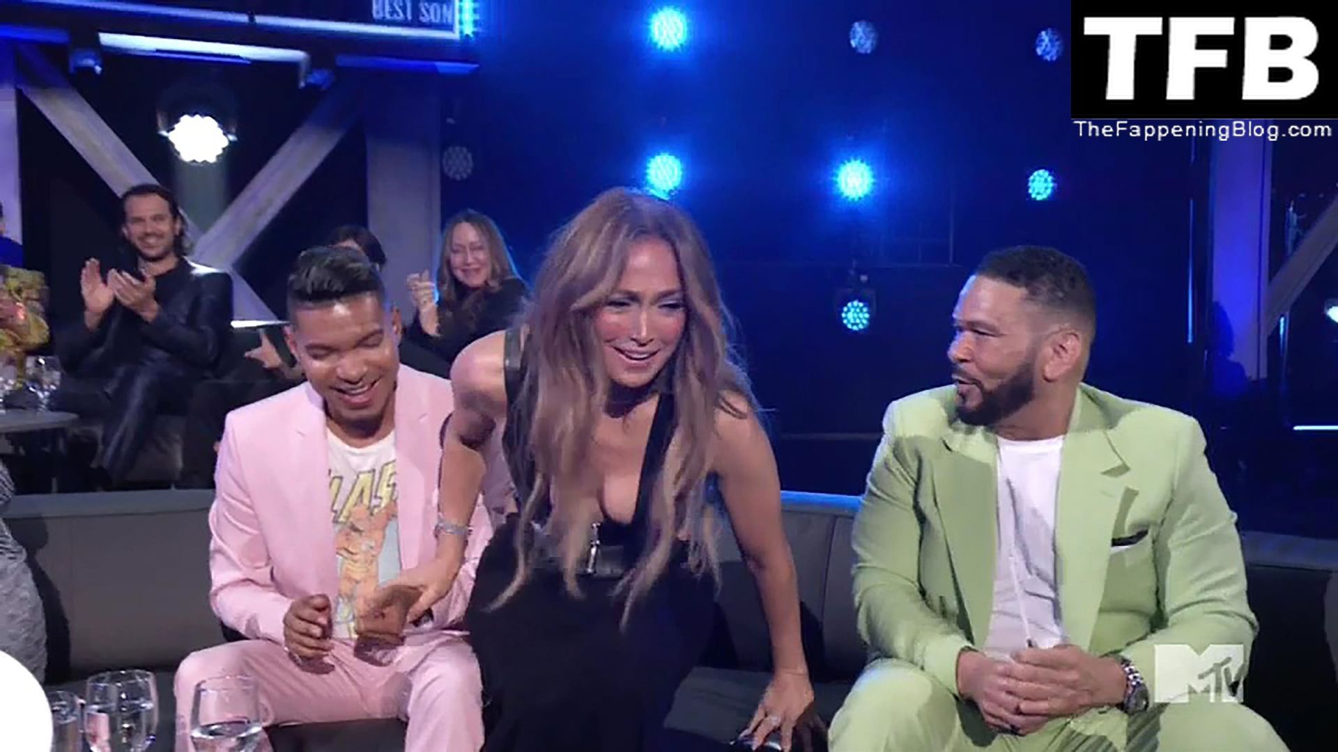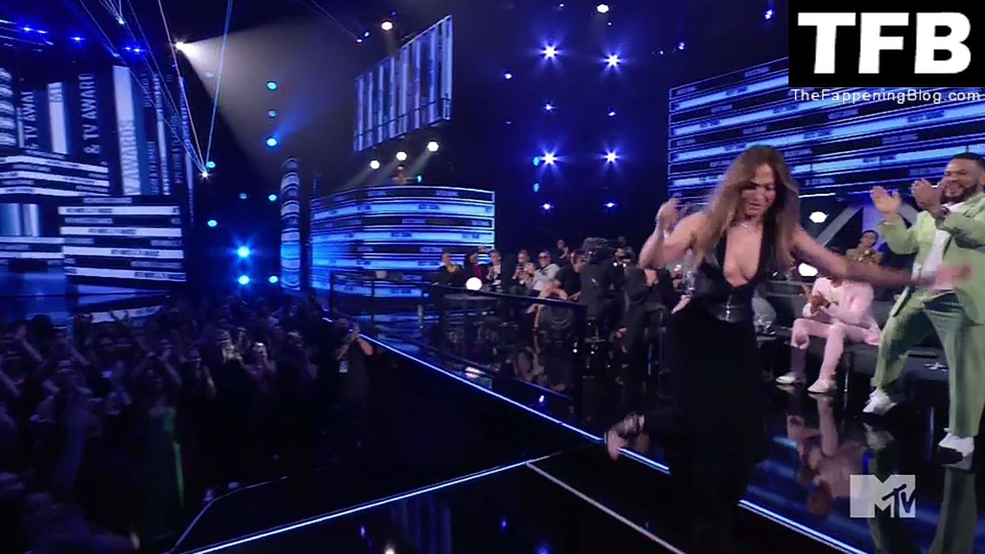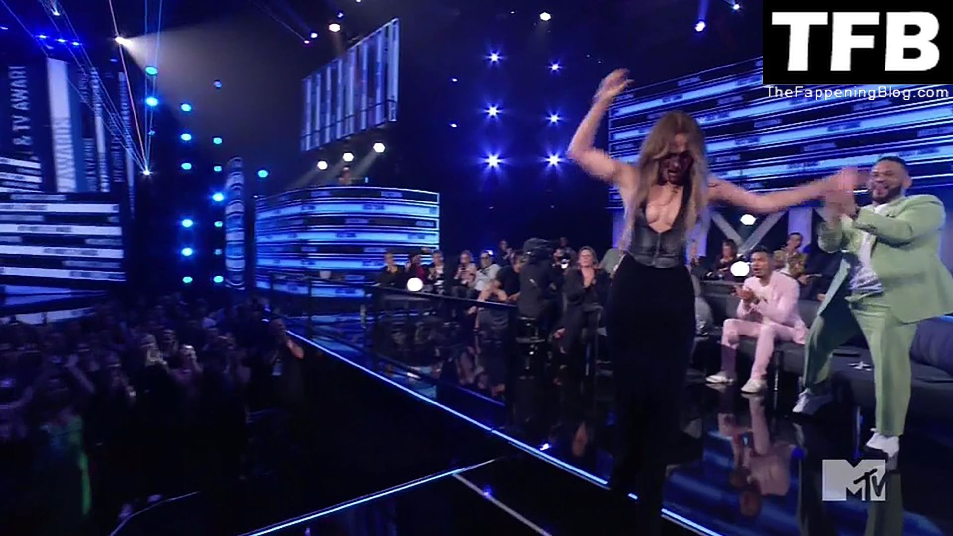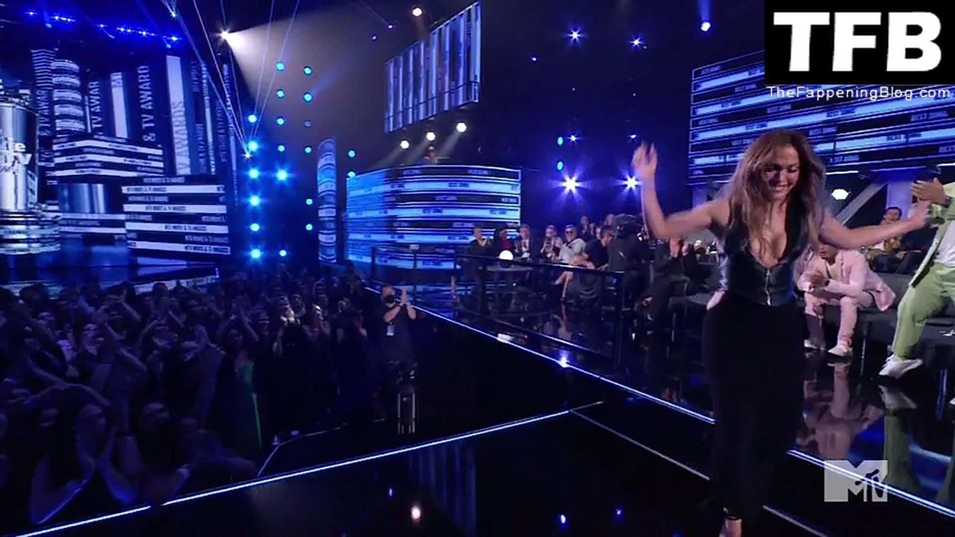 Jennifer Lopez è ritratta sul red carpet degli MTV Movie & TV Awards al Barker Hangar di Santa Monica, 06/05/2022. La cantante si emoziona mentre riceve il Generational Award.