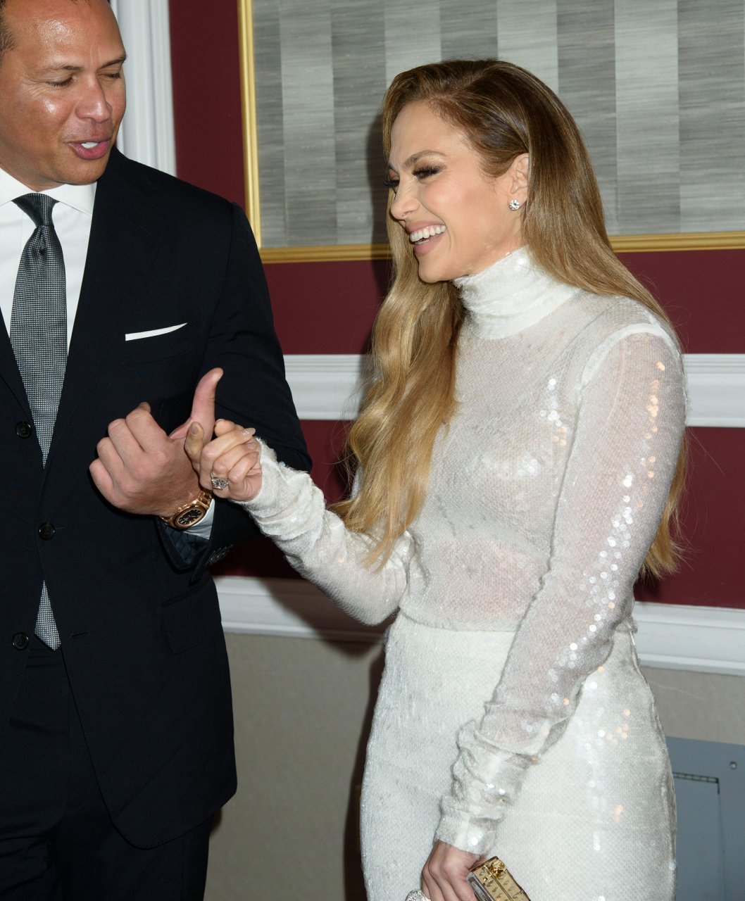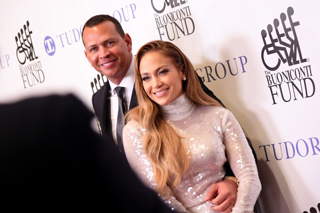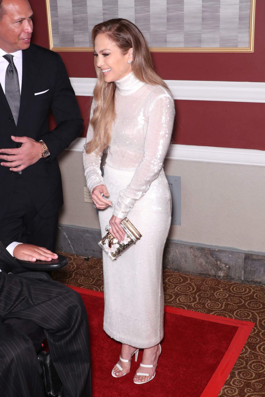 Superstar Jennifer Lopez (49) posa sul tappeto rosso con il fidanzato Alex Rodriguez alla 33ª Cena Annuale delle Grandi Leggende dello Sport a New York City, 24/09/2018.