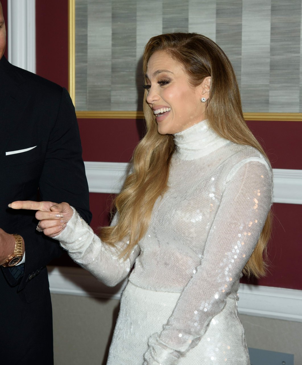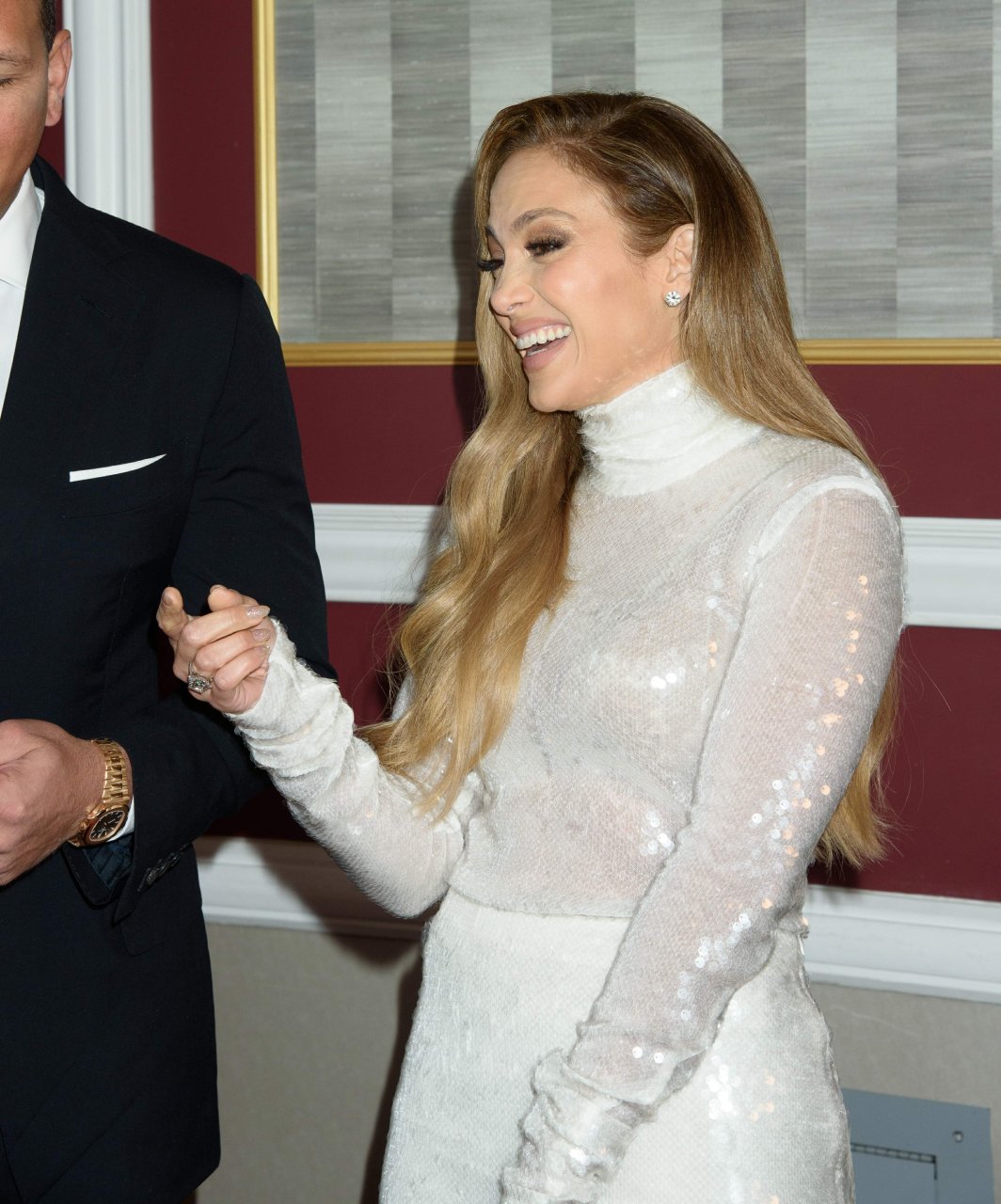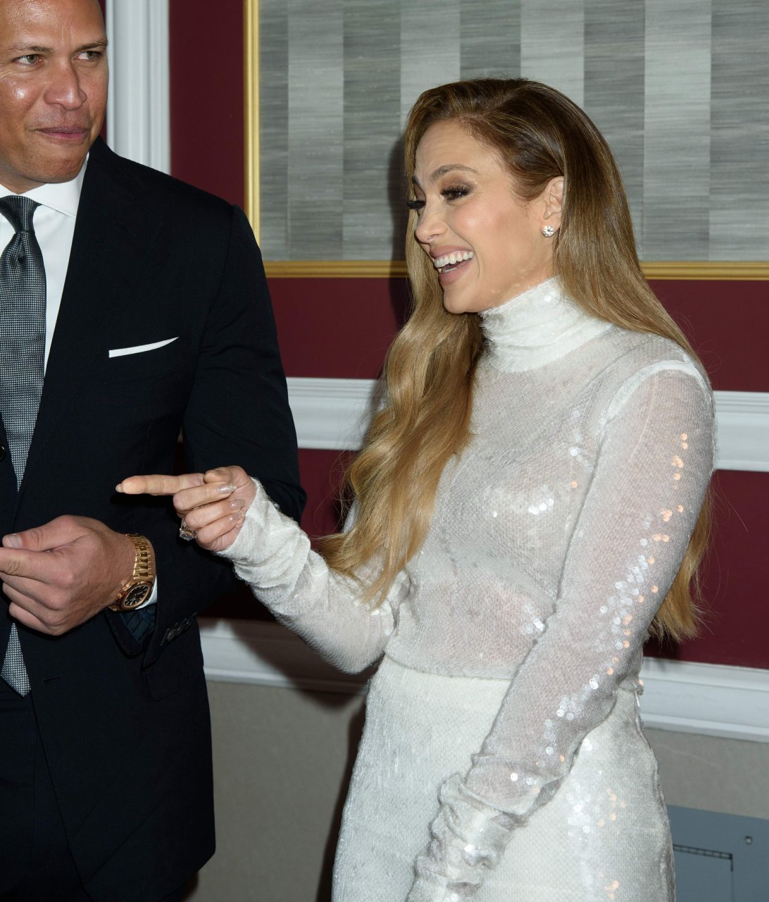 Superstar Jennifer Lopez (49) posa sul tappeto rosso con il fidanzato Alex Rodriguez alla 33ª Cena Annuale delle Grandi Leggende dello Sport a New York City, 24/09/2018.