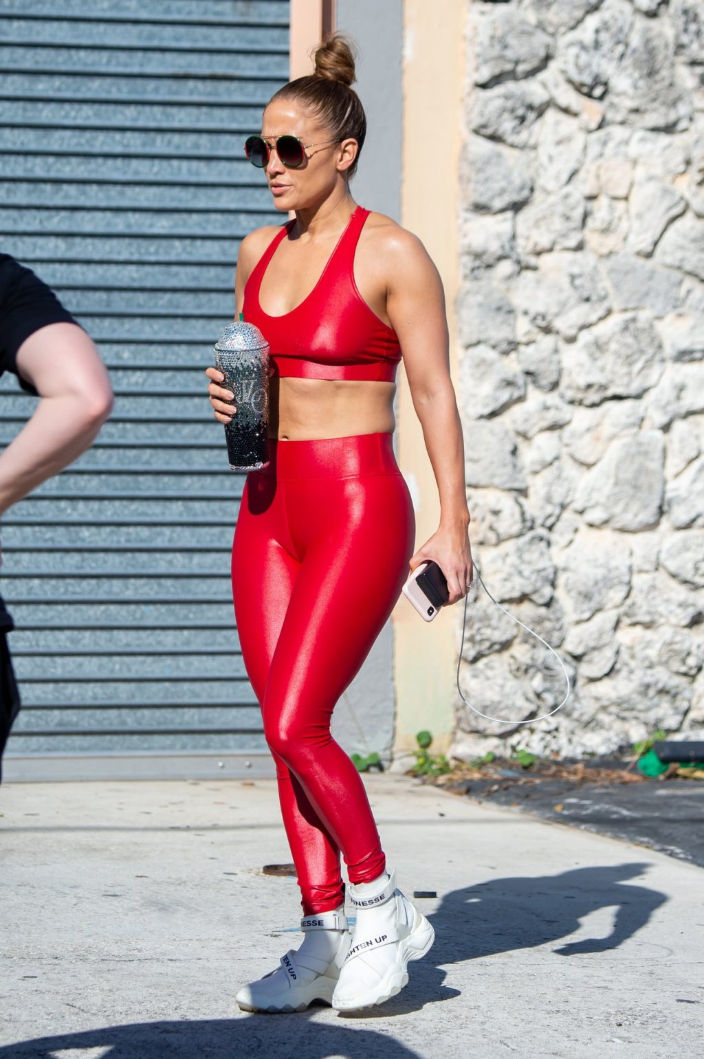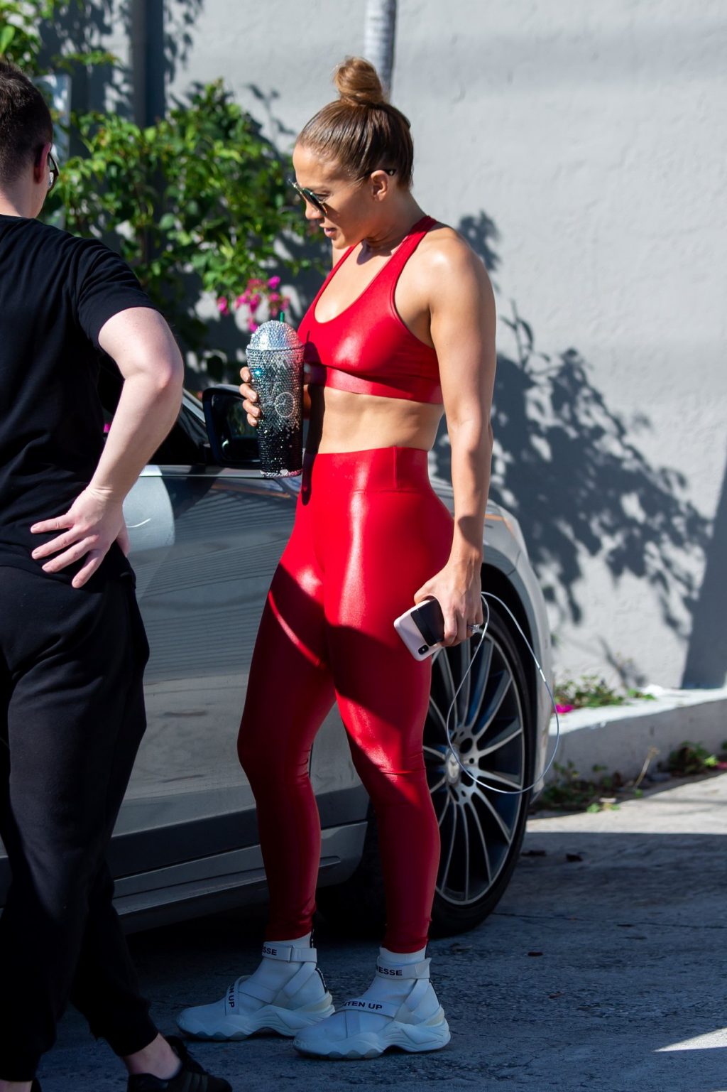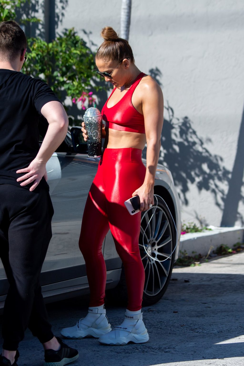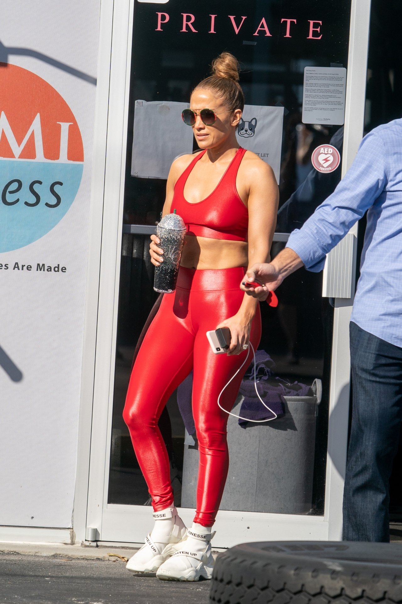 Jennifer Lopez è stata vista uscire dalla palestra con A-Rod la vigilia di Natale a Miami, 24/12/2019. Jlo appare splendida in un speciale completo natalizio rosso coordinato mentre esce dalla palestra e si dirige verso l’auto.