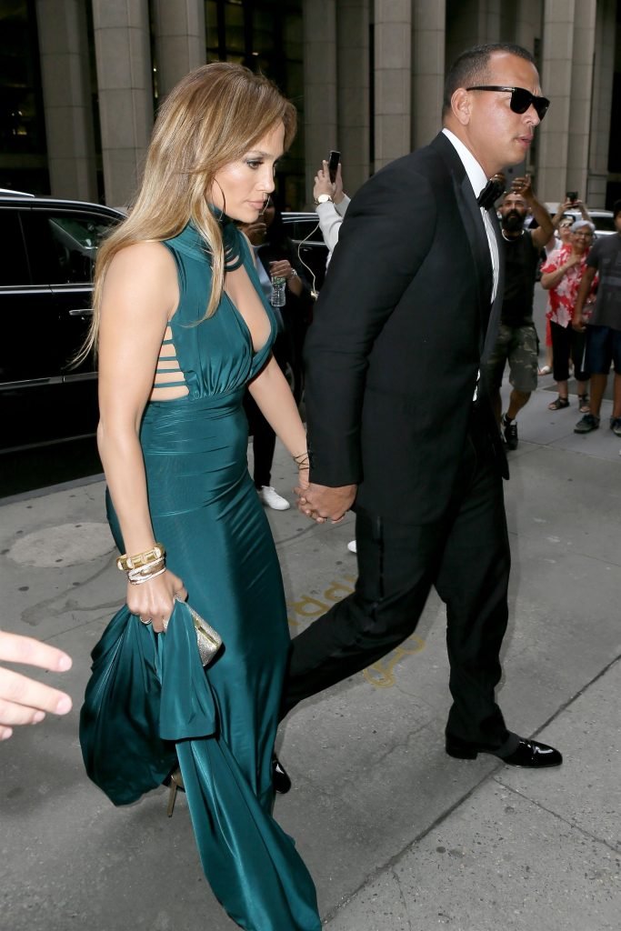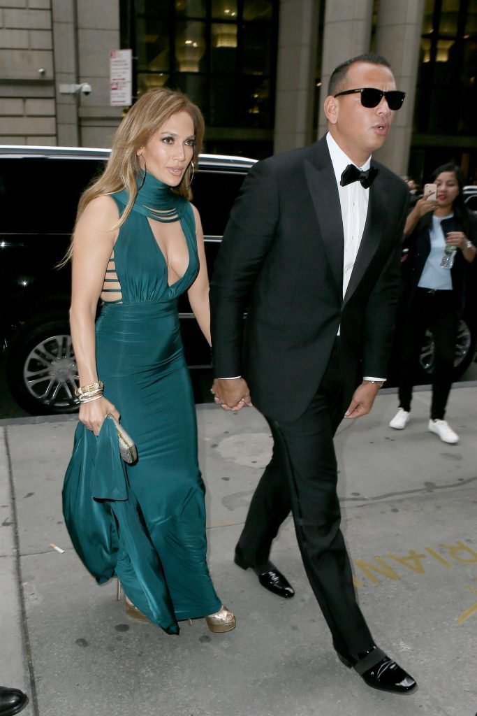 La coppia Jennifer Lopez e Alex Rodriguez sfoggiano il loro stile mentre vengono avvistati mentre si dirigono al matrimonio di amici al Cipriani’s Wall Street a New York, 08/06/2017. Jennifer Lopez è una cantante americana, ballerina e attrice (Bye Bye Birdie Live!, 2018). Età: 48.