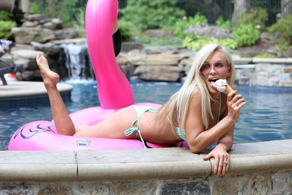 Jenny McCarthy è stata vista mentre si godeva un po’ di gelato a bordo piscina, prima di dirigersi verso una registrazione di The Masked Singer, 14/08/2019.