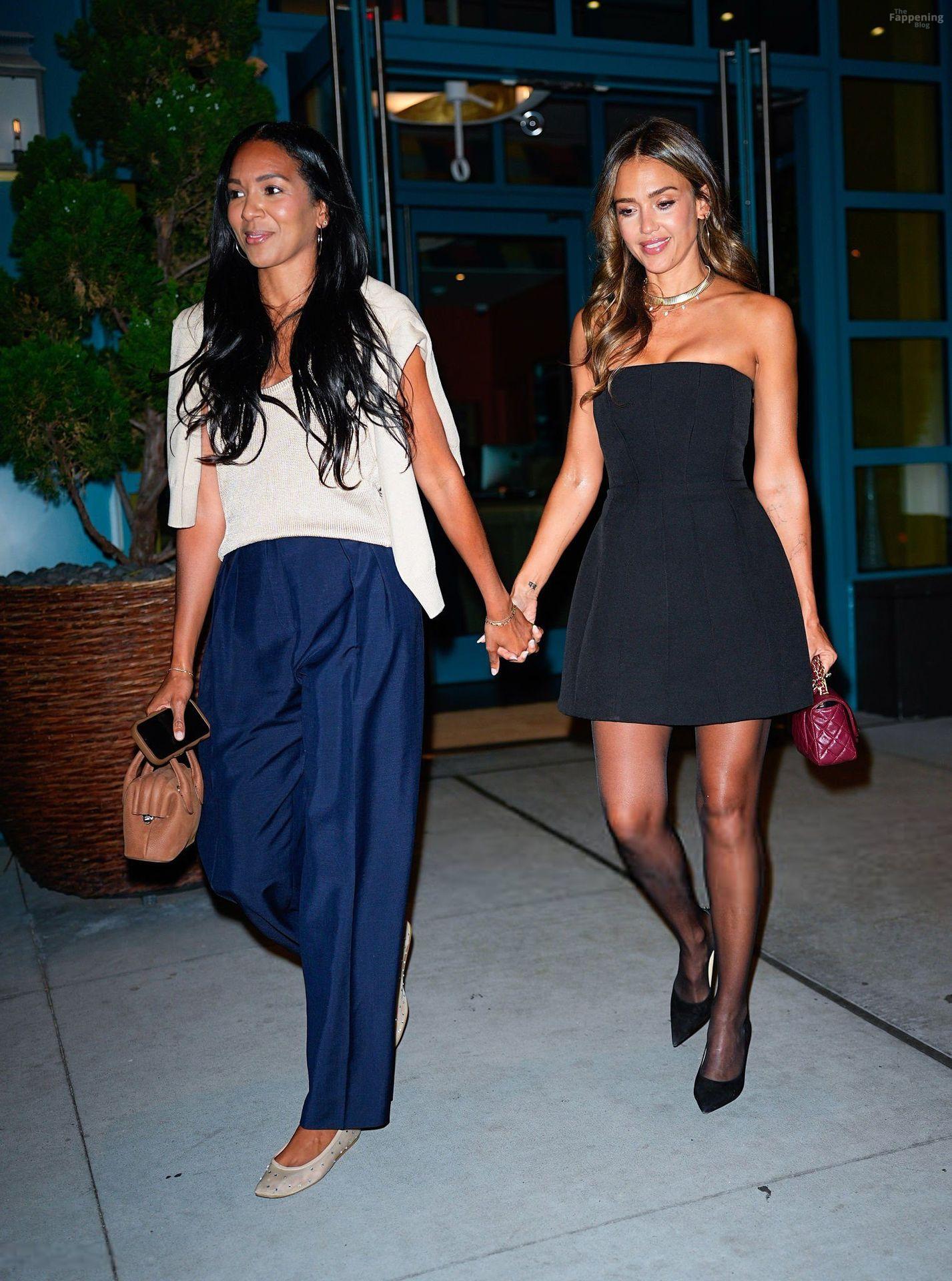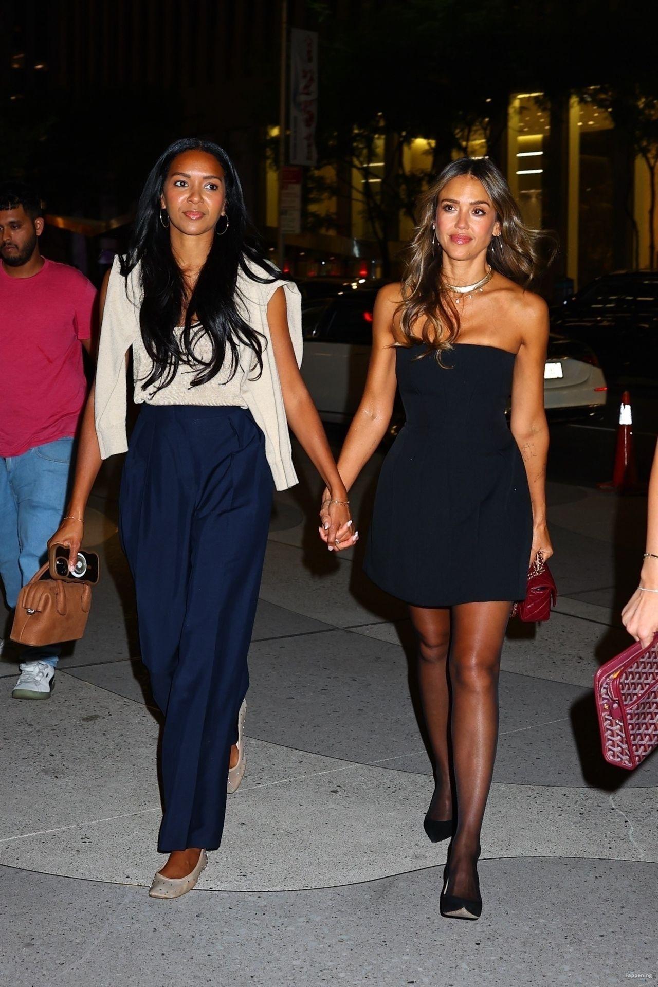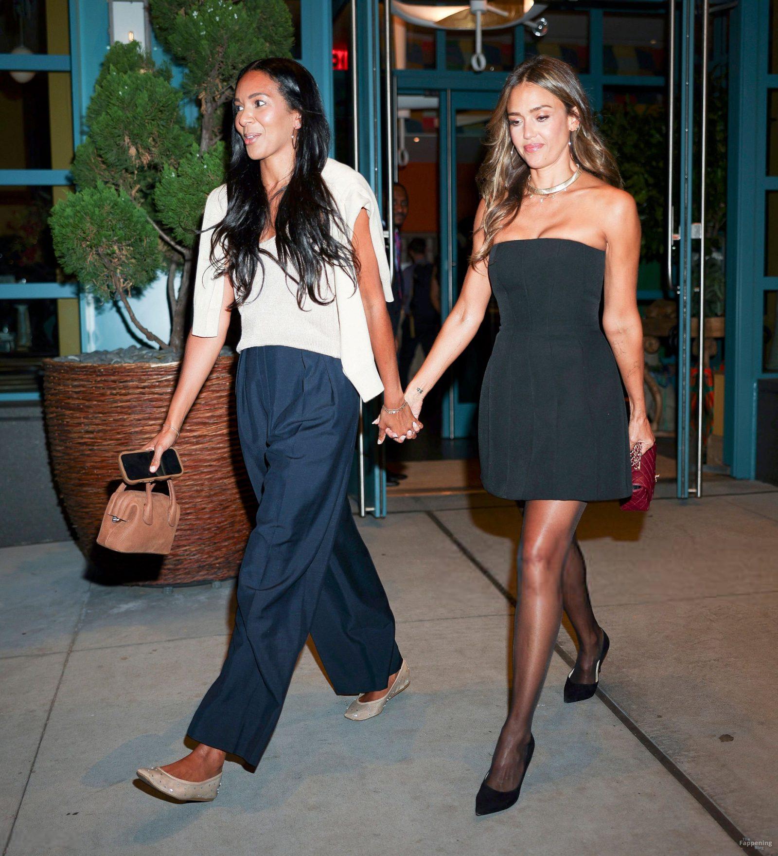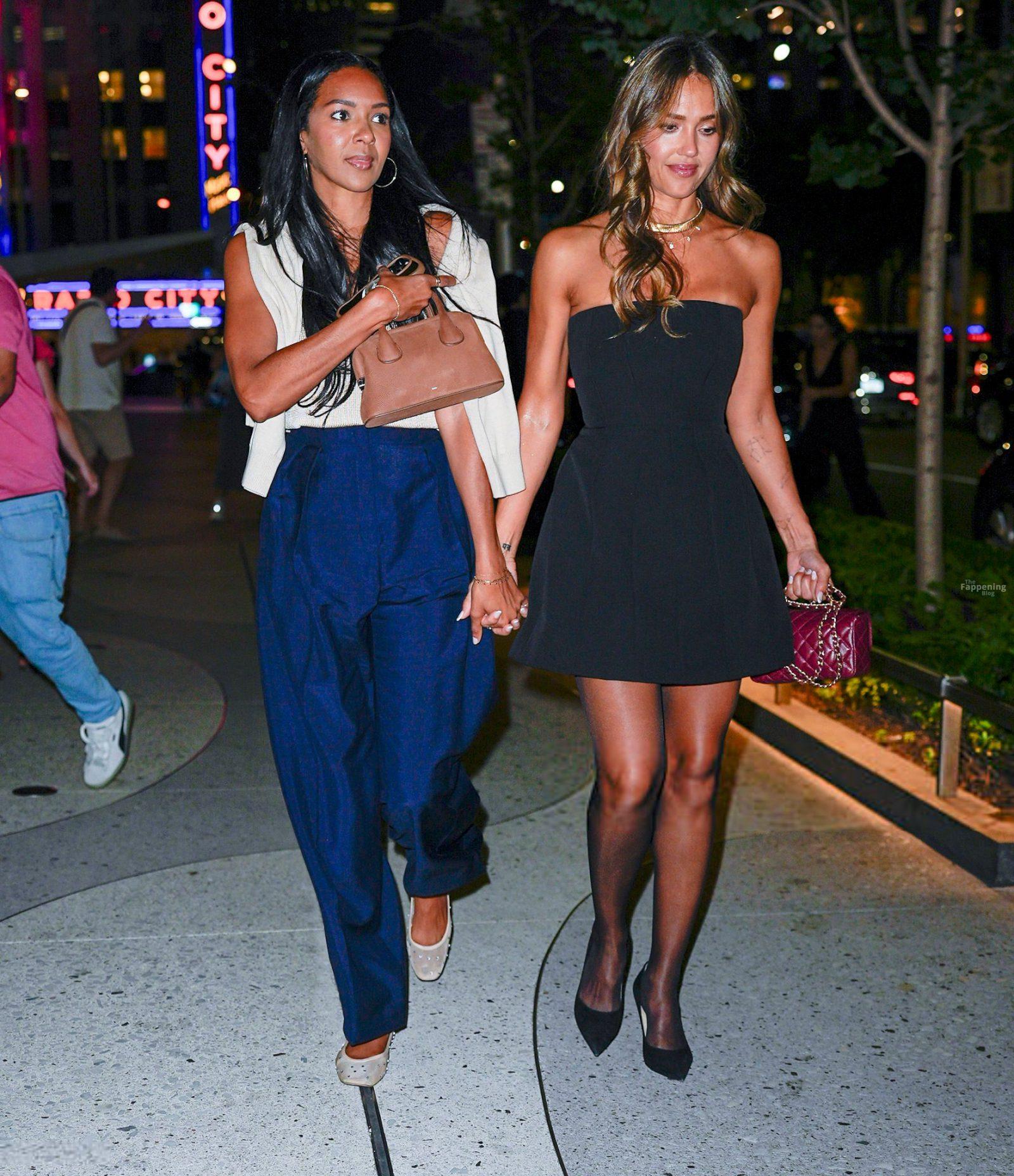 Jessica Alba e Lizzy Mathis escono per cena a NYC, prendendosi una pausa dalla loro campagna stampa per il nuovo show “Ristrutturazioni Oneste.” Jessica Alba sfoggia un piccolo vestito nero senza spalline, collant trasparenti e tacchi a spillo, mettendo in mostra gambe impeccabili.
