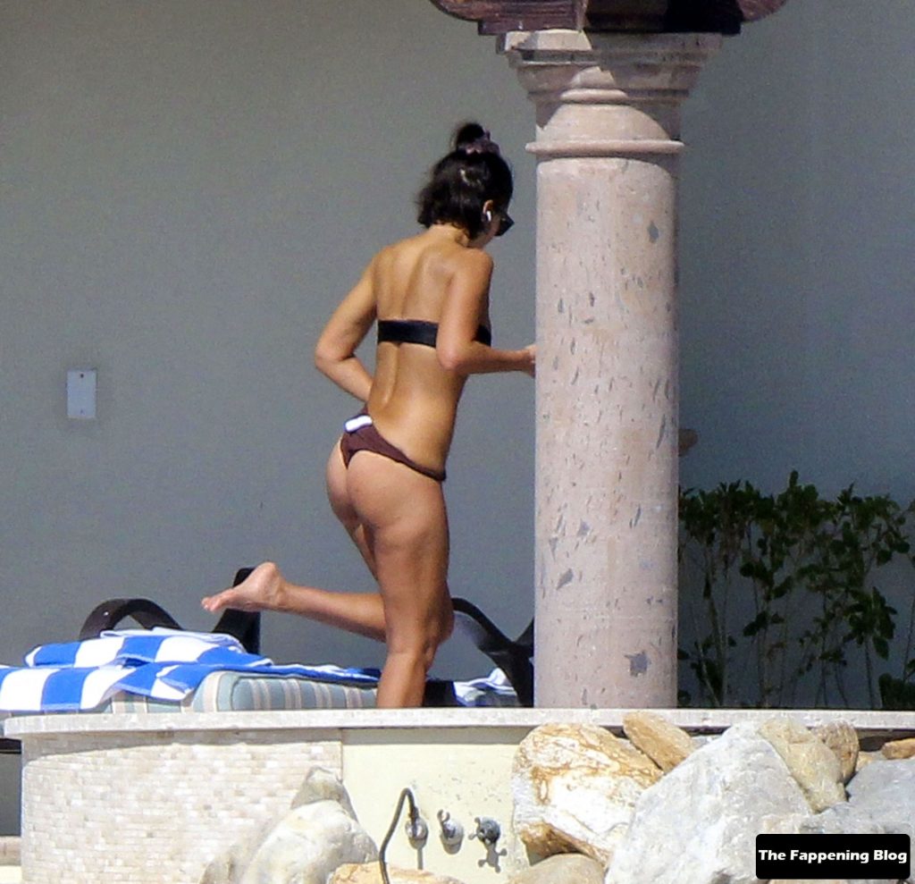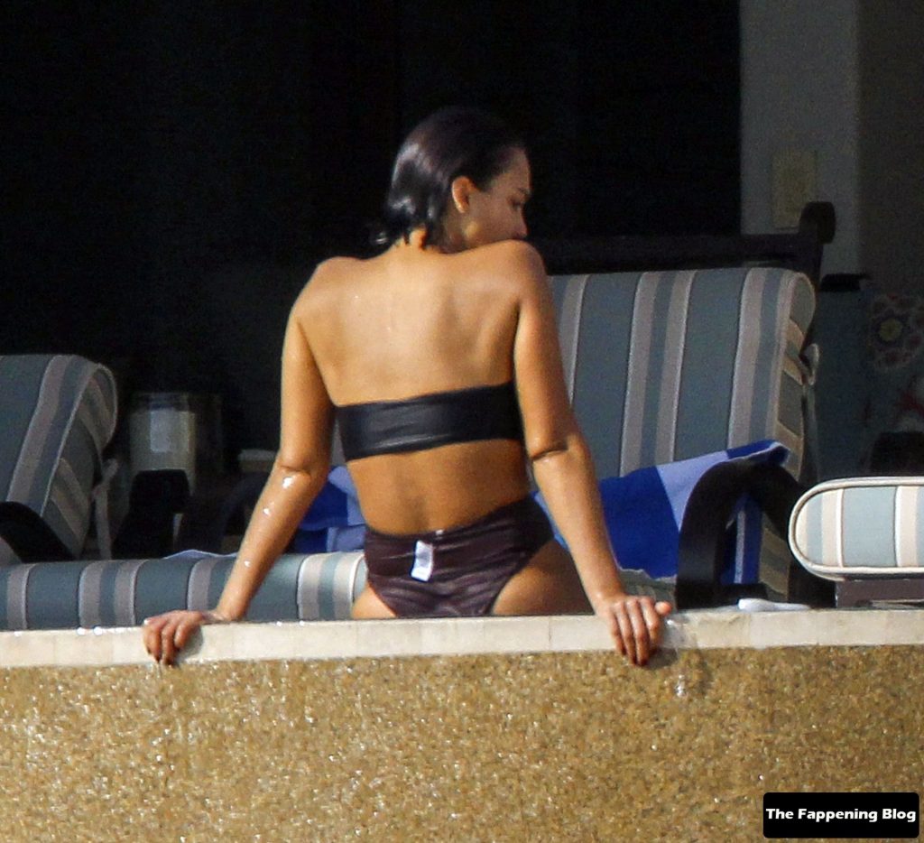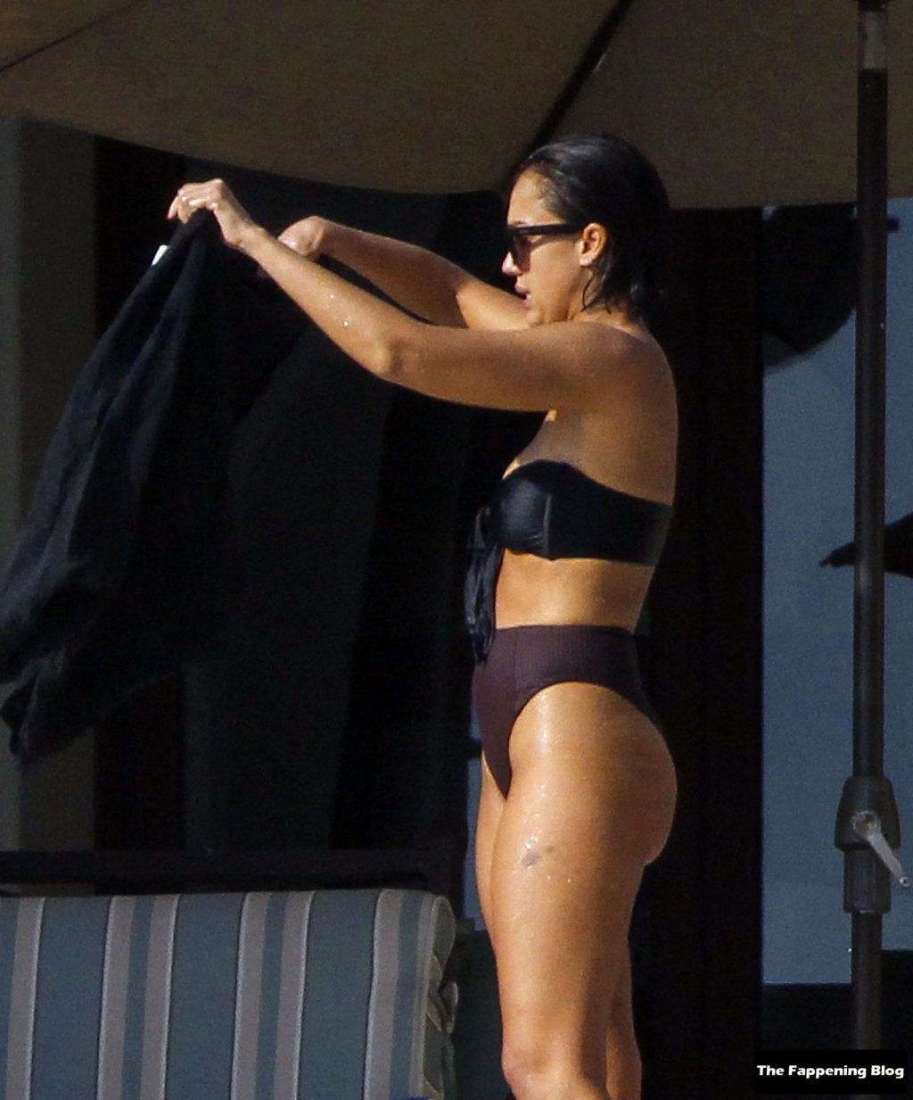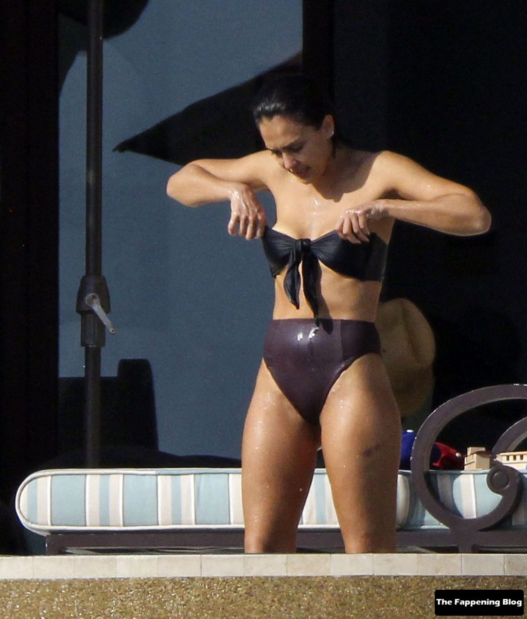 La splendida attrice ha trascorso una pausa baciata dal sole in Messico durante la settimana del Ringraziamento. Ha preso un po’ di sole in una villa di lusso indossando un costume da bagno nero a fascia con perizoma, facendo un tuffo in piscina prima di asciugarsi.