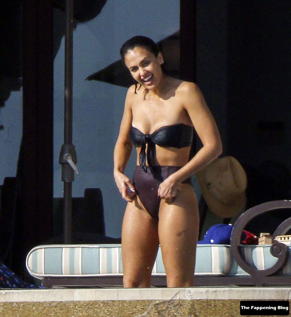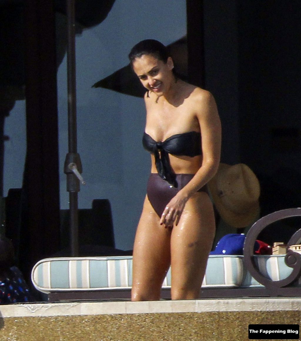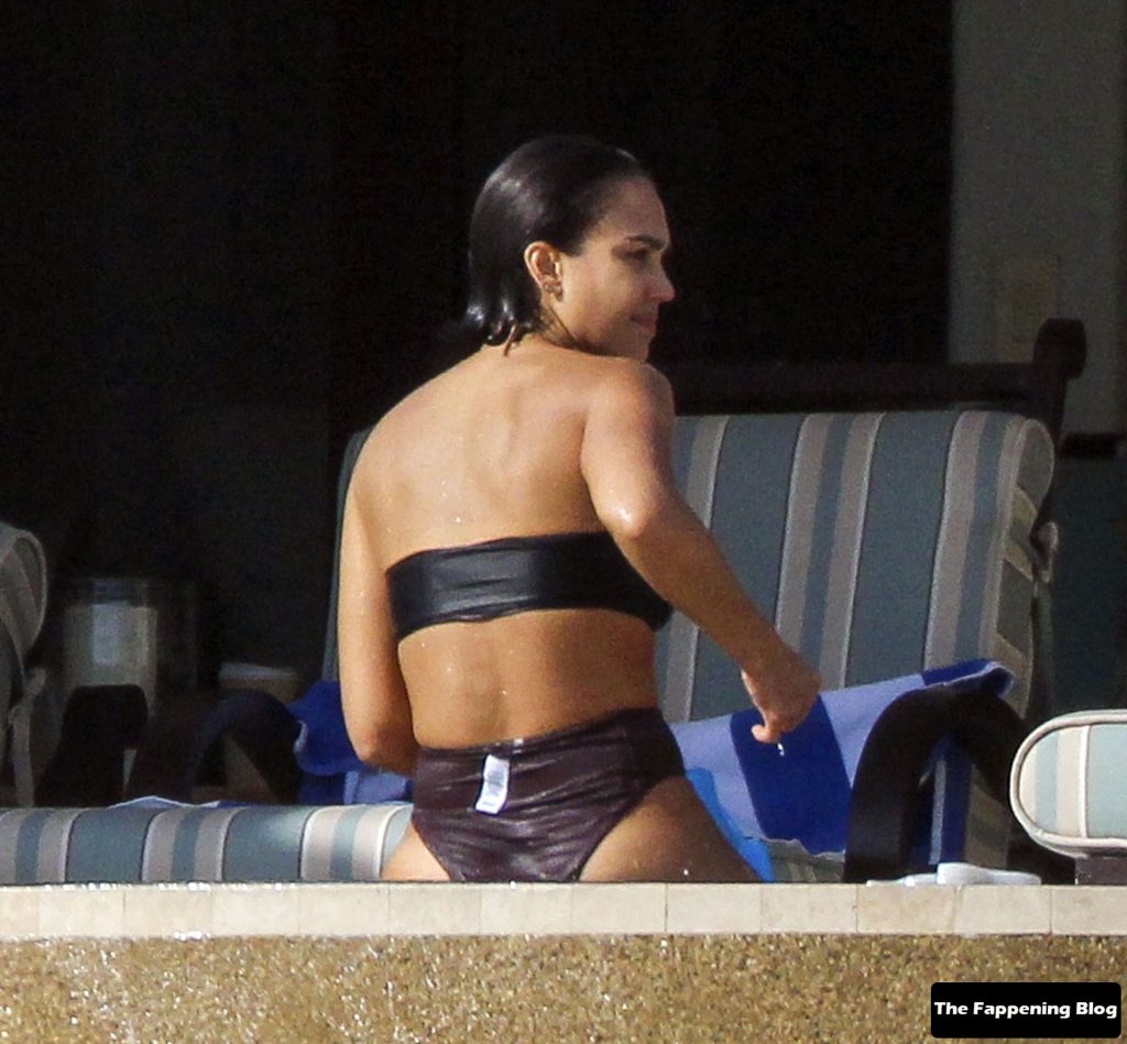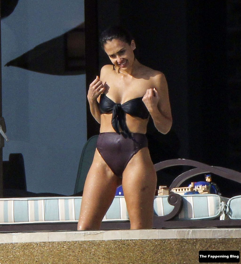 La splendida attrice ha trascorso una pausa baciata dal sole in Messico durante la settimana del Ringraziamento. Ha preso un po’ di sole in una villa di lusso indossando un costume da bagno nero a fascia con perizoma, facendo un tuffo in piscina prima di asciugarsi.