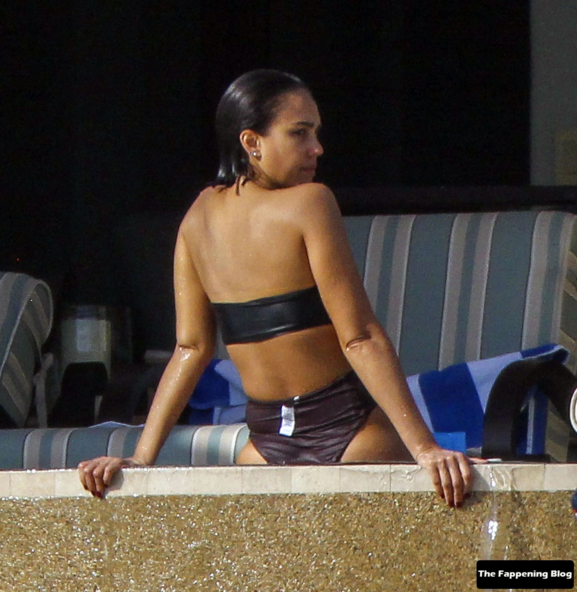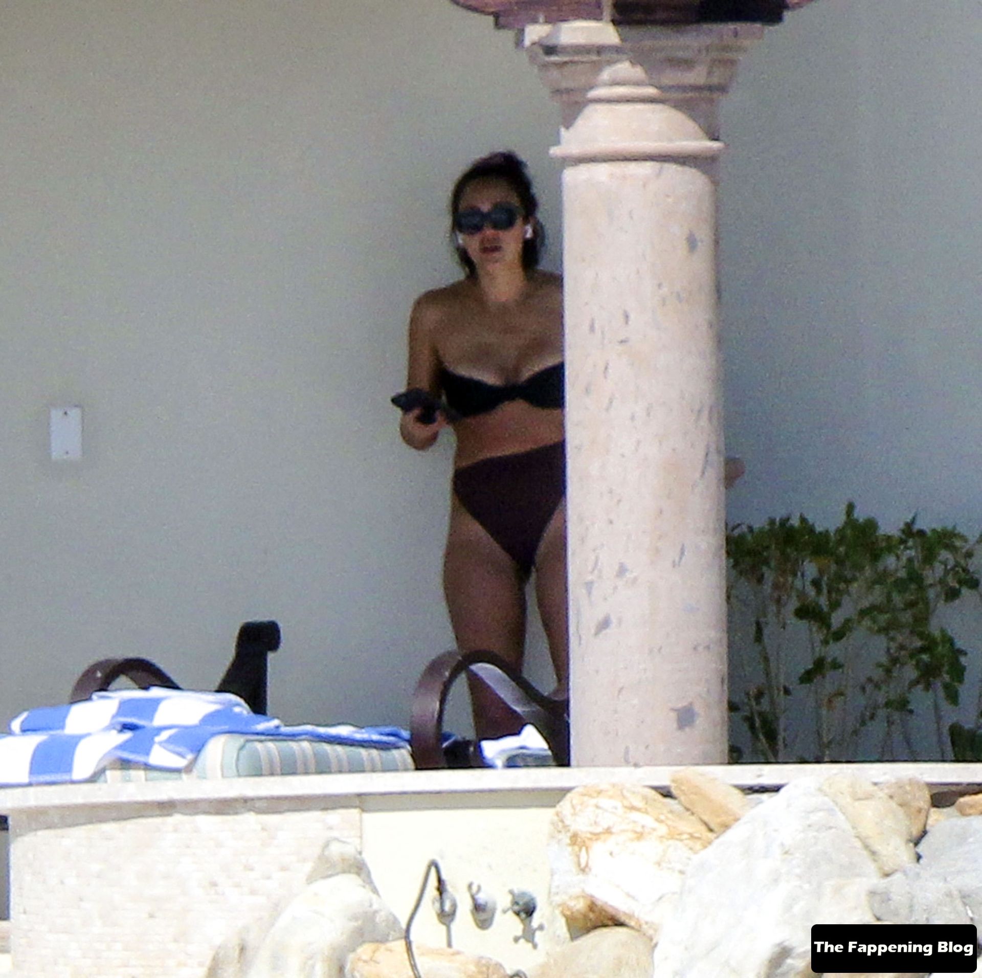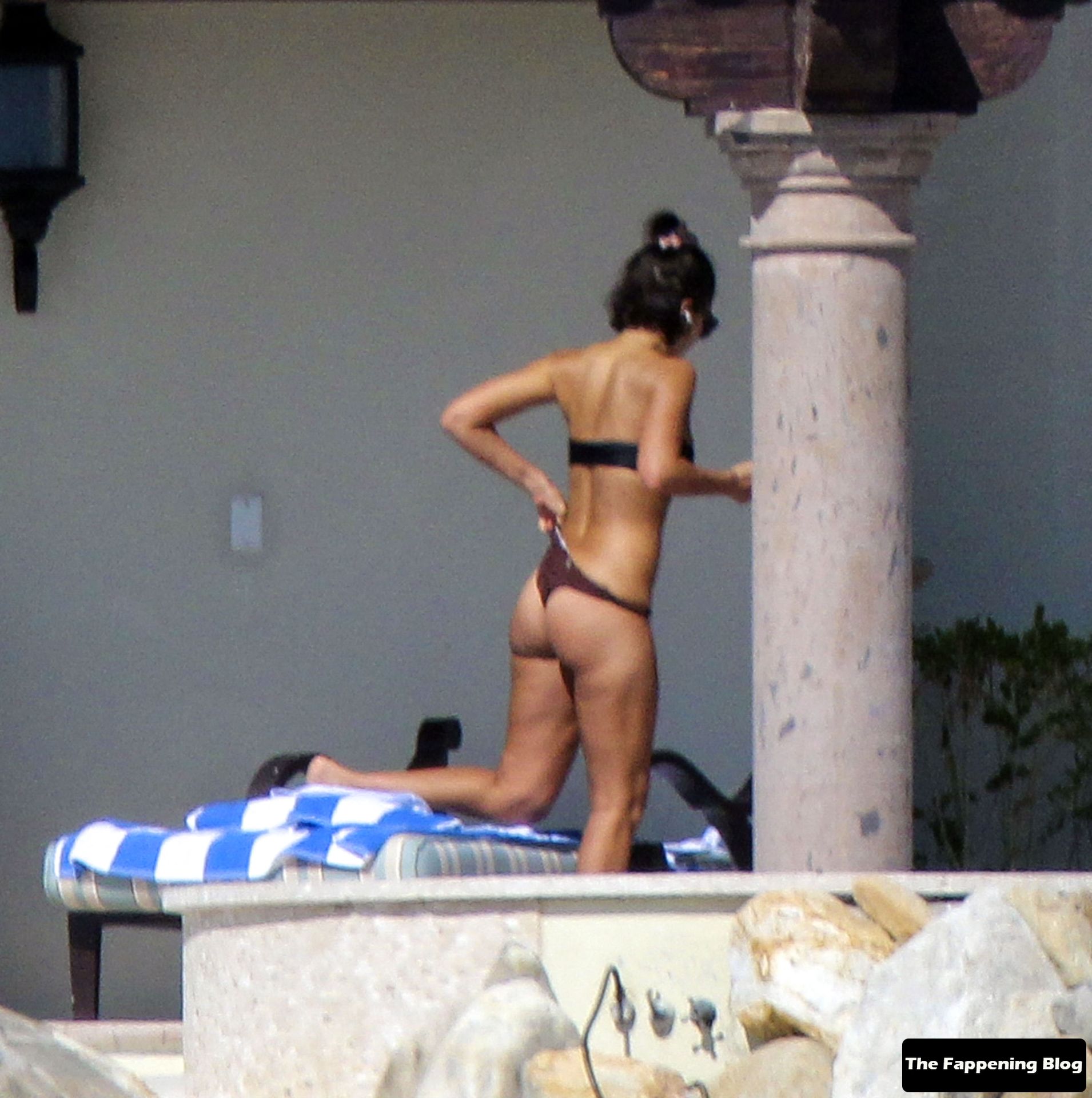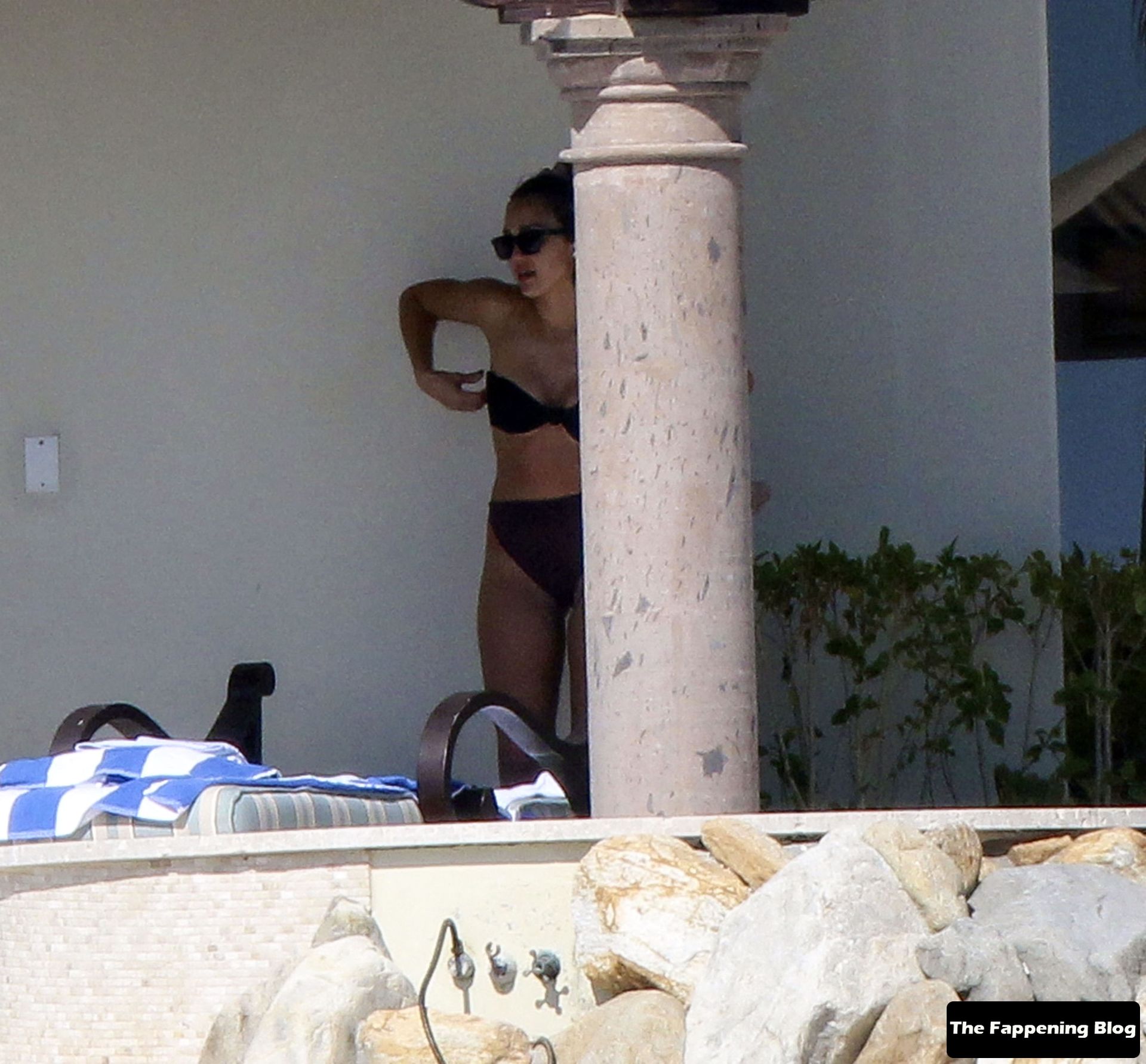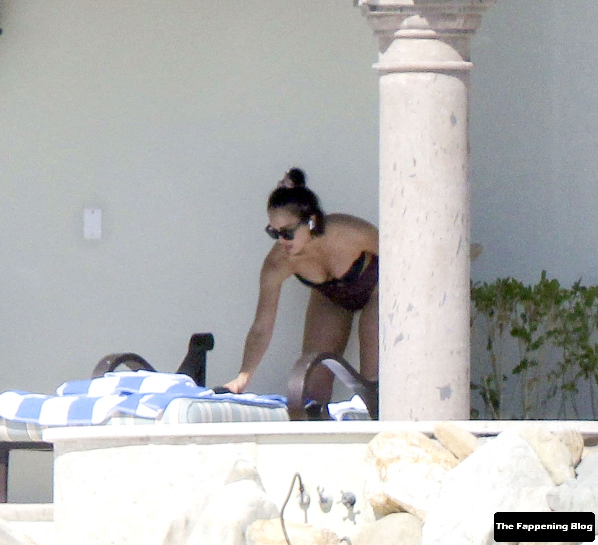 La splendida attrice ha trascorso una pausa baciata dal sole in Messico durante la settimana del Ringraziamento. Ha preso un po’ di sole in una villa di lusso indossando un costume da bagno nero a fascia con perizoma, facendo un tuffo in piscina prima di asciugarsi.