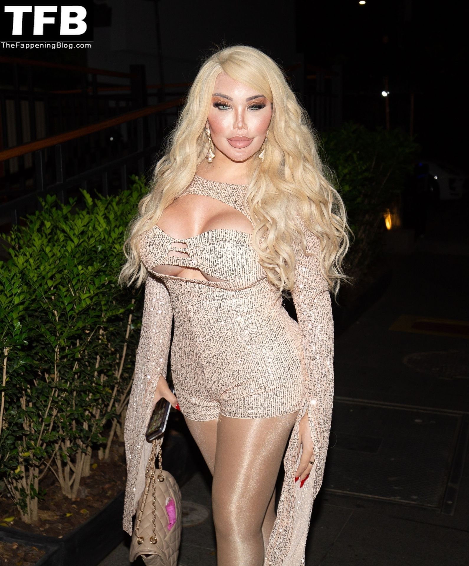 La personalità televisiva transgender brasiliano-britannica Jessica Alves mostra il suo corpo migliorato chirurgicamente dopo aver recentemente perso 35 kg a seguito di un intervento di gastrectomia a manica, mentre si gode una serata con amici in un ristorante in un quartiere elegante di San Paolo, Brasile, 12/03/2021.