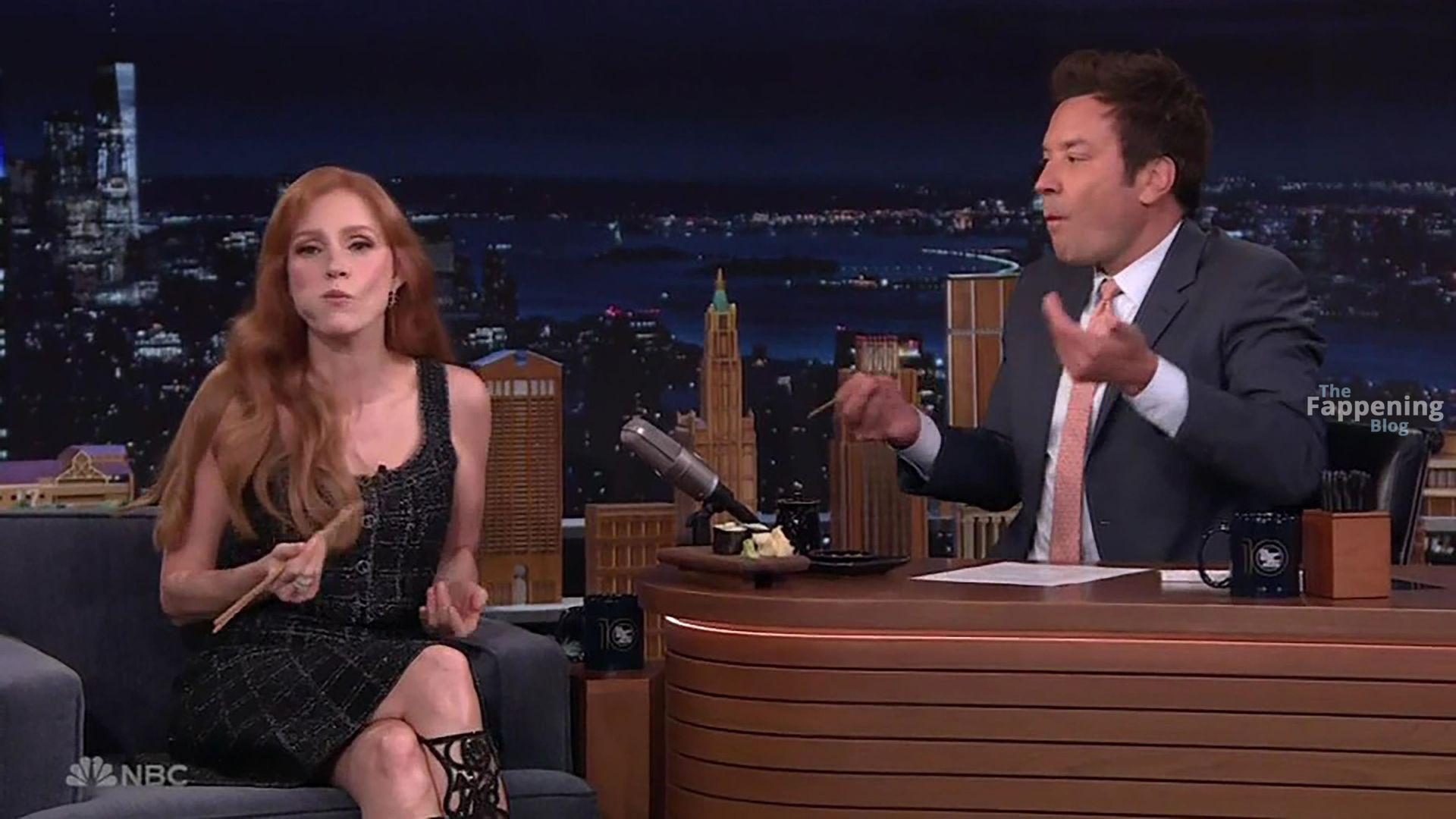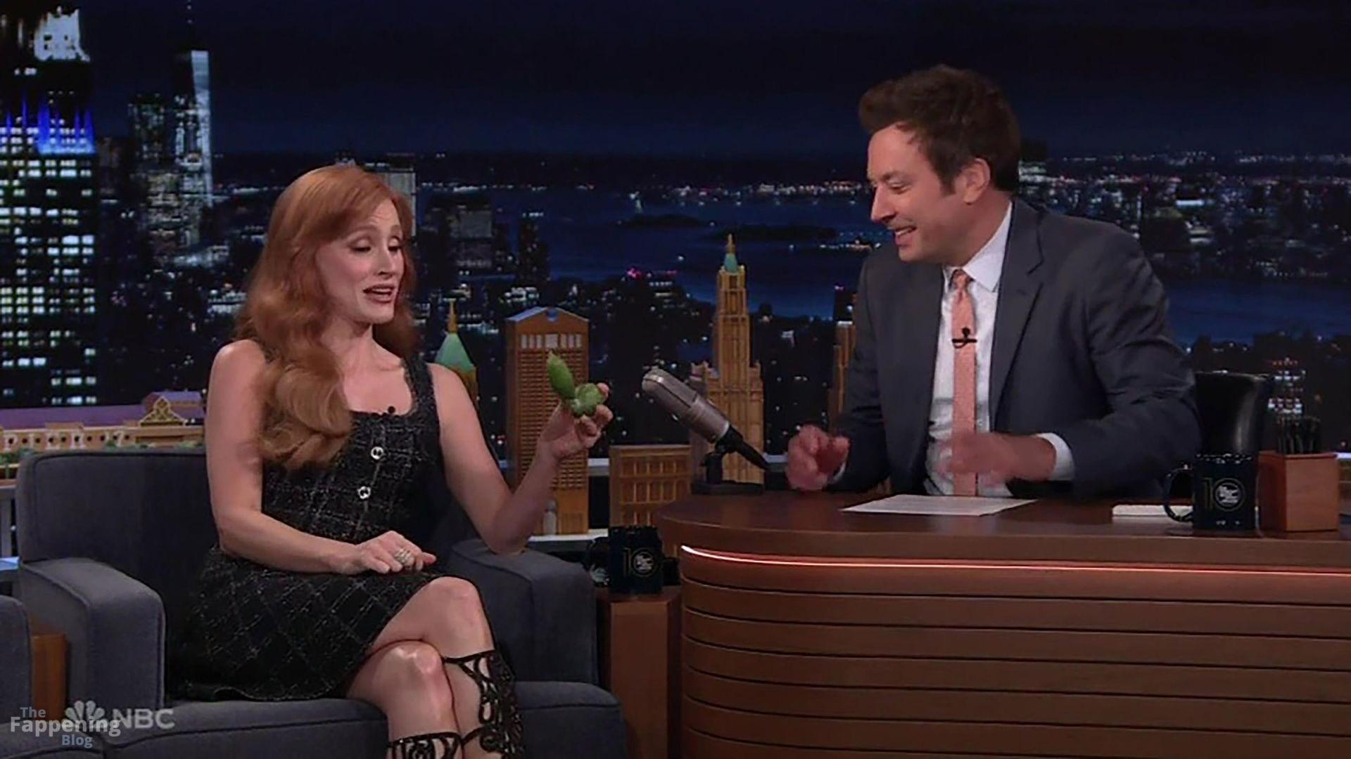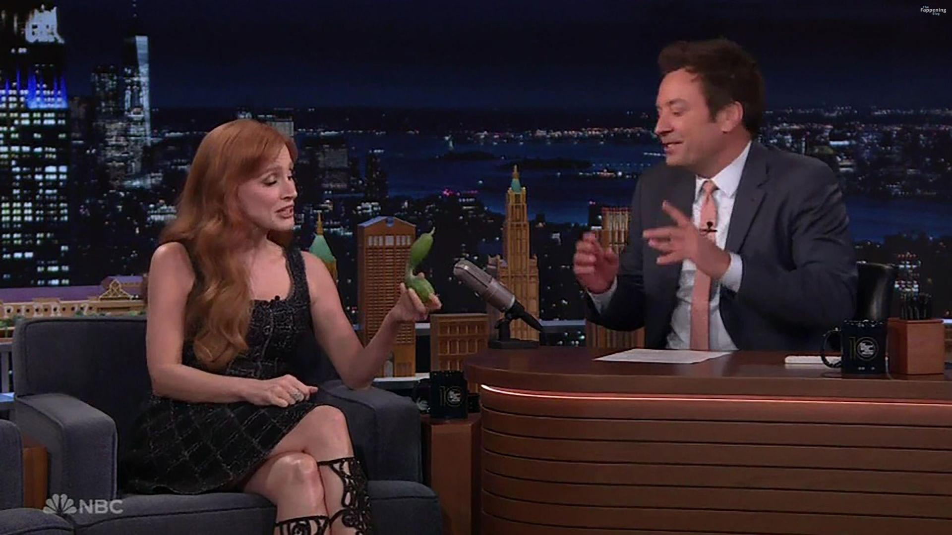 Jessica Chastain prende in giro il cetriolo dell’orto di Jimmy Fallon a The Tonight Show. L’attrice è stata ospite del late-night show americano per promuovere la sua nuova serie The Savant, quando il conduttore Fallon ha tirato fuori la sua verdura dalla forma strana per mostrarla – prima di farla tagliare da uno chef stellato in un rotolo di sushi.