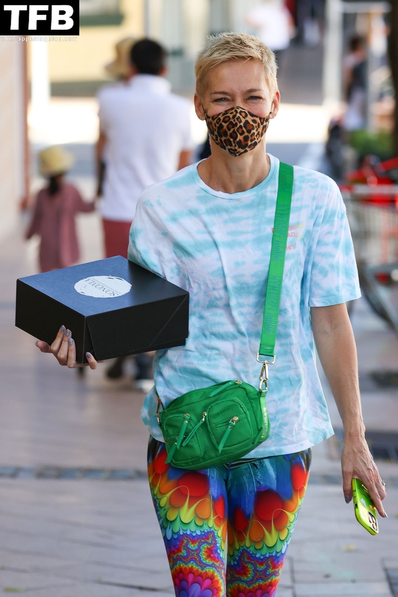 La presentatrice televisiva australiana Jessica Rowe viene fotografata mentre lascia la Sonoma Bakery Rose Bay con una torta per la celebrazione di Capodanno, 30/12/2021.