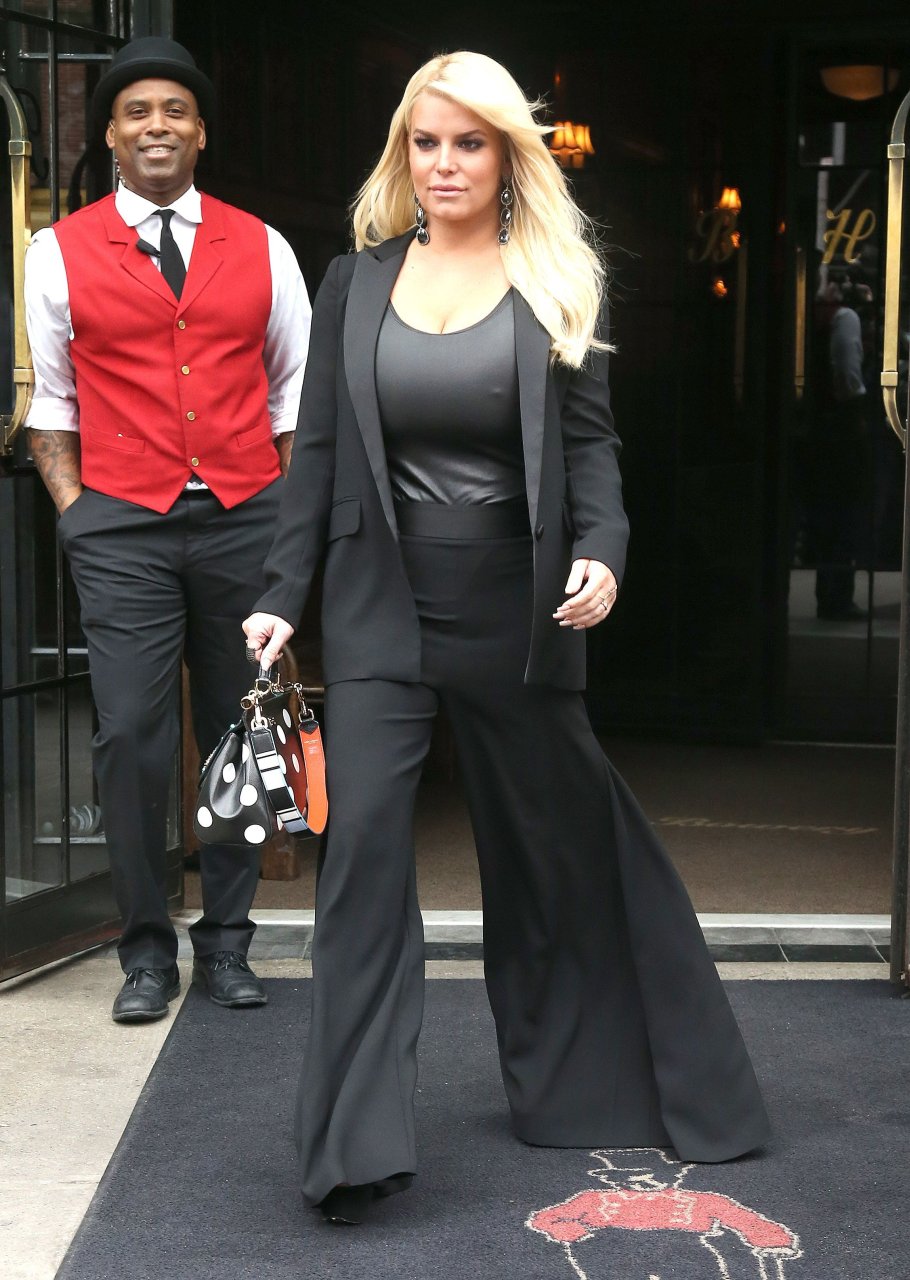 Jessica Simpson senza reggiseno indossa un top nero a New York, 20/04/17. Jessica Simpson è una cantante e cantautrice americana, attrice, personaggio televisivo di reality e stilista. Età – 36 (10 luglio 1980).