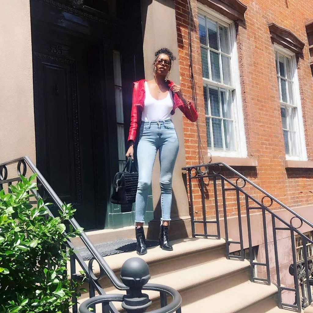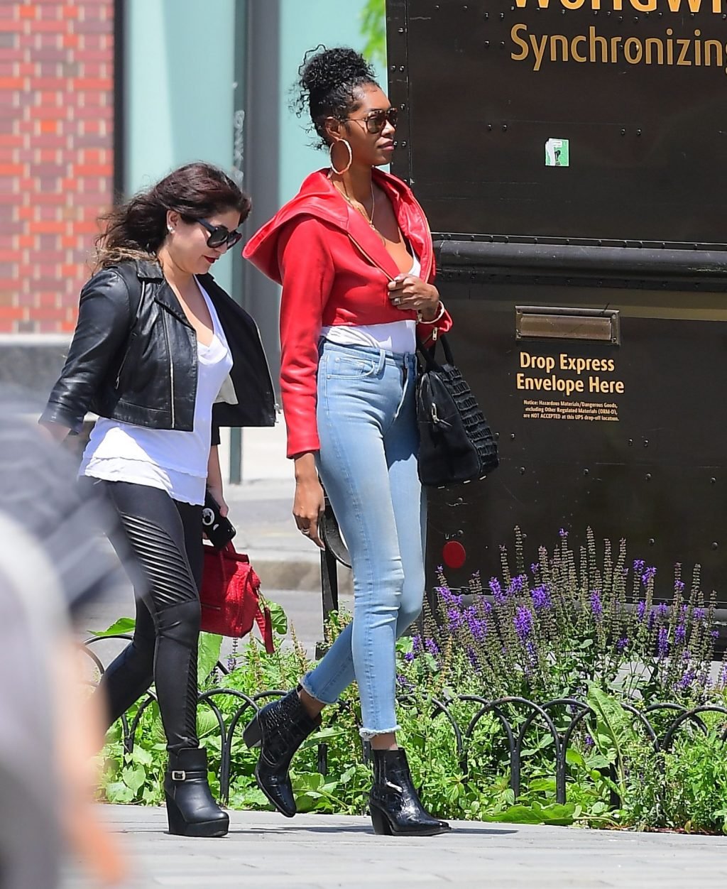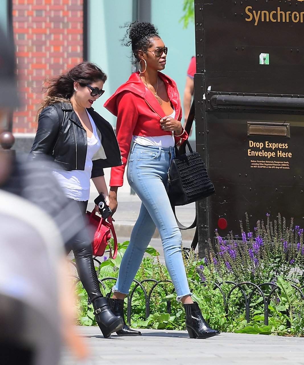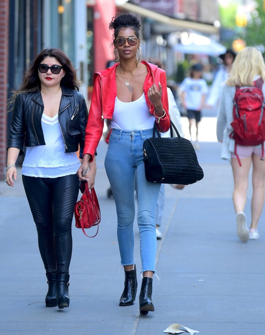 Model Jessica White mostra i suoi piercing ai capezzoli con una canottiera bianca mentre esce a NYC, 06/04/2019.