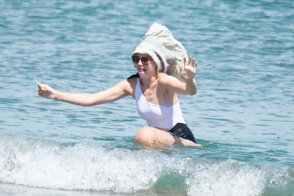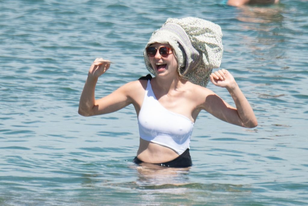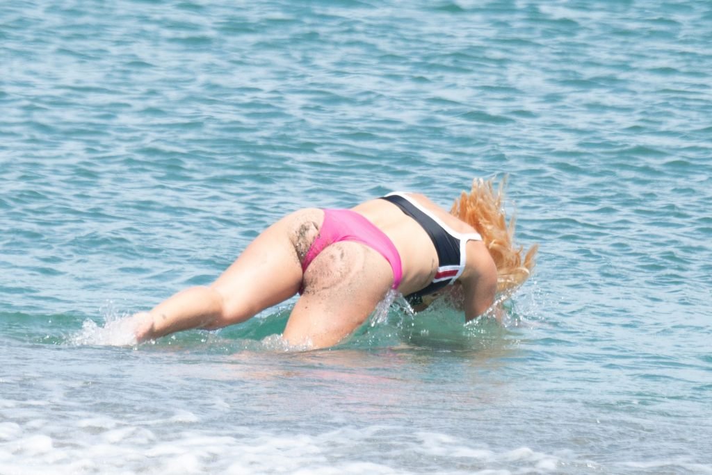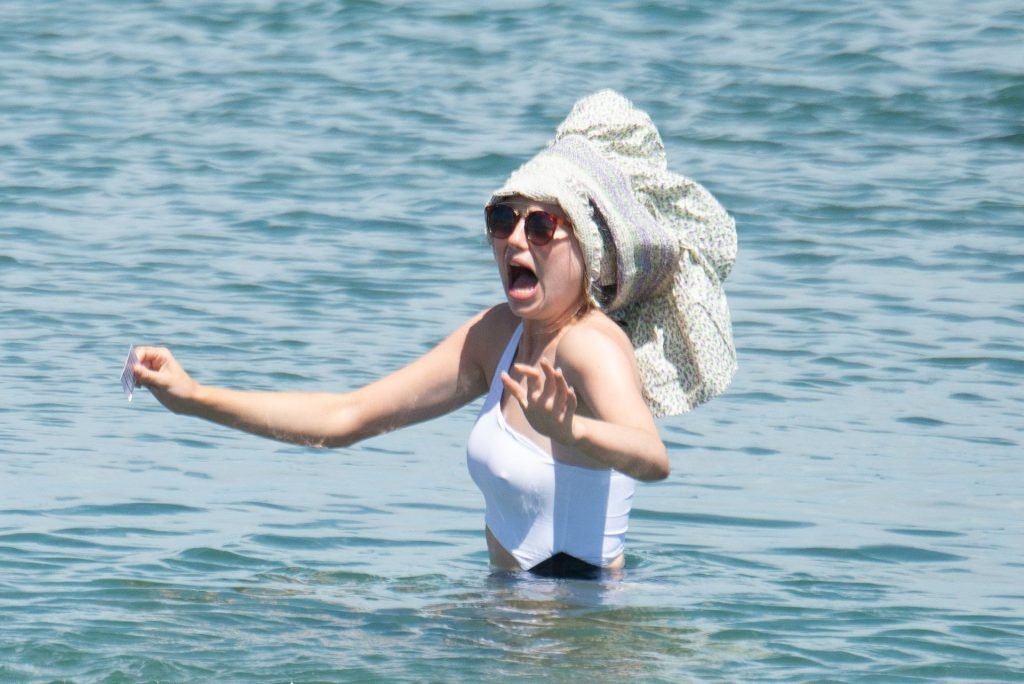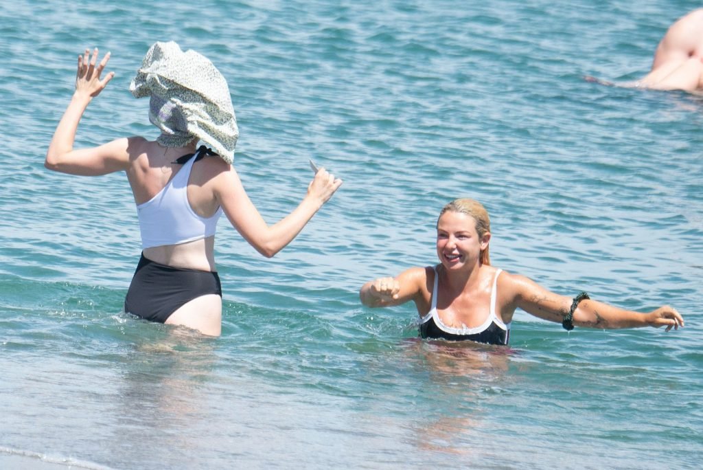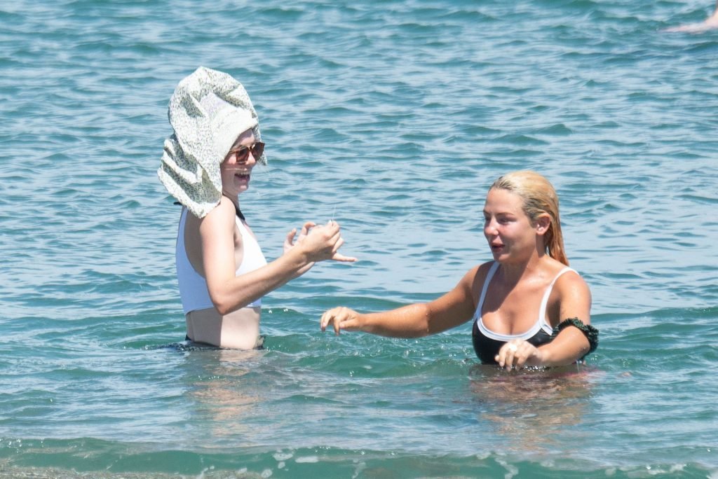 Jessica Anne Woodley e Georgia Toffolo trascorrono una giornata divertente sulla spiaggia a Sotogrande, Cadice, 26/07/2019.