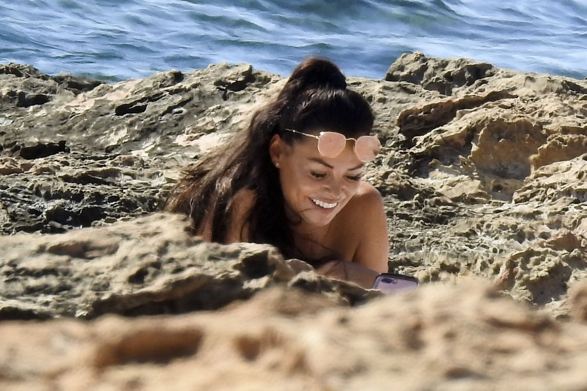 Jessica Wright mostra la sua figura abbronzata da spiaggia e sembrava sensazionale in un bikini floreale trascorrendo una giornata in spiaggia in vacanza a Ibiza, 07/02/2018. La sexy star di TOWIE, che recentemente si è lasciata con il fidanzato di Strictly Come Dancing Giovanni Pernice, era accompagnata da un’amica mentre le due si rilassavano sulle spiagge rocciose trovando qualcosa di un po’ divertente sui loro telefoni.