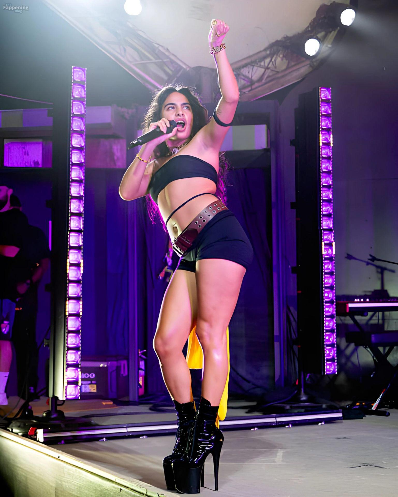 La cantante canadese Jessie Reyez è qui a mostrare il suo corpo sexy con shorts attillati e un top a fascia.