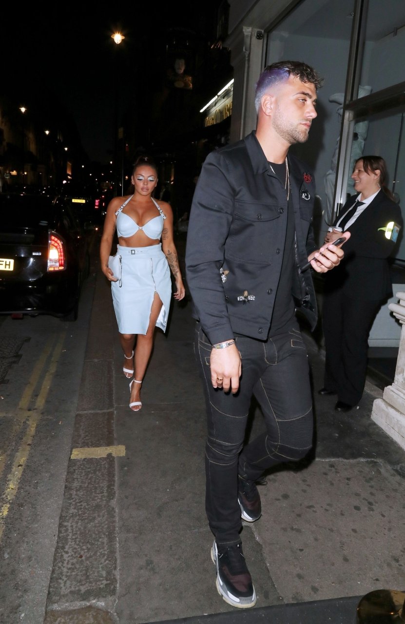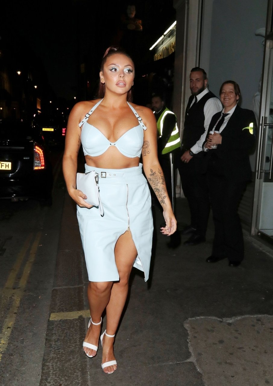 Cantante Jesy Nelson ritratta mentre mostra i suoi favolosi addominali in un outfit rivelatore per il compleanno mentre arriva con il suo fidanzato alla sua festa di compleanno a sorpresa tenutasi al nightclub Mahiki di Londra, 21/06/2018.