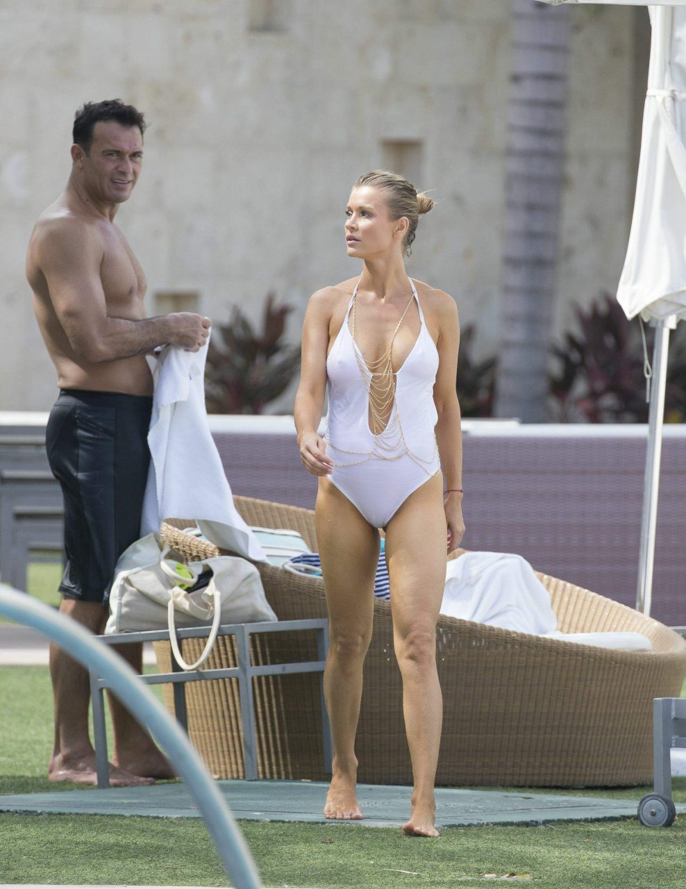 Joanna Krupa indossa un costume da bagno bianco mentre si rilassa alla piscina di Miami, 18/10/2016. Joanna Krupa è una modella e attrice polacco-americana. Età: 37 (23 aprile 1979). Altezza: 170 cm.