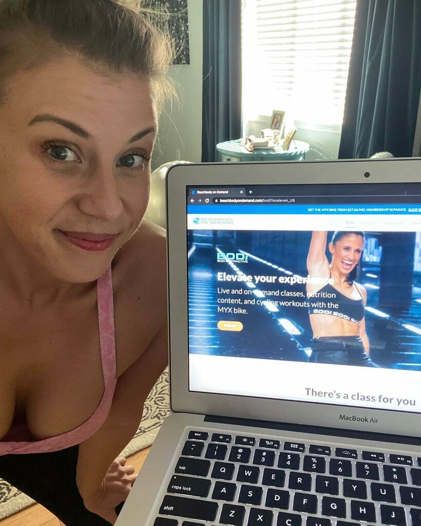 L’attrice Jodie Sweetin mostra il suo seno sexy, posando con un reggiseno sportivo prima di un allenamento per la prima volta in diretta su BODi – Twitter, 11/04/2021.