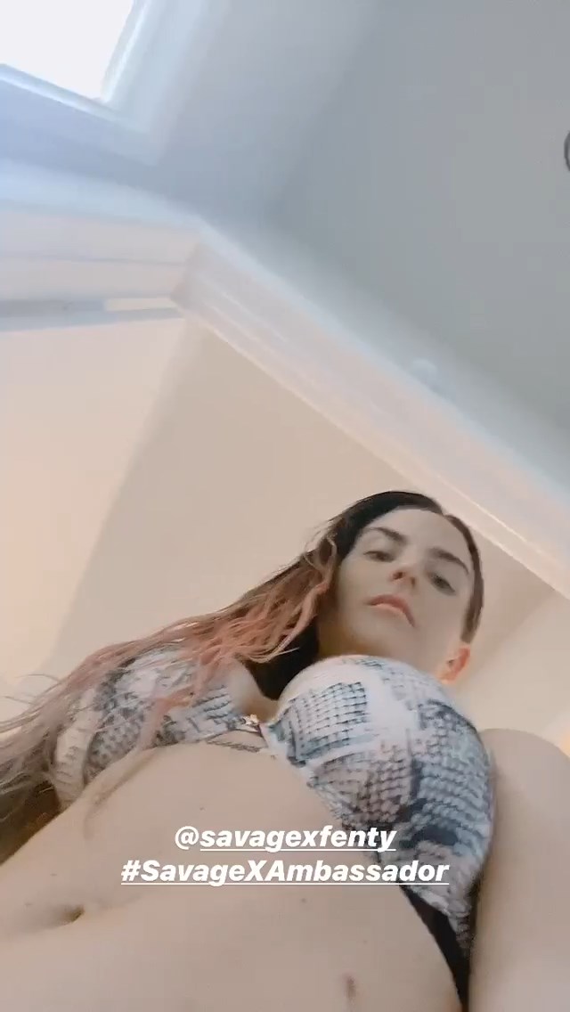 Singer JoJo mostra i suoi seni sexy e promuove la lingerie SavageXFenty di Rihanna su Instagram, 24/07/2020.
