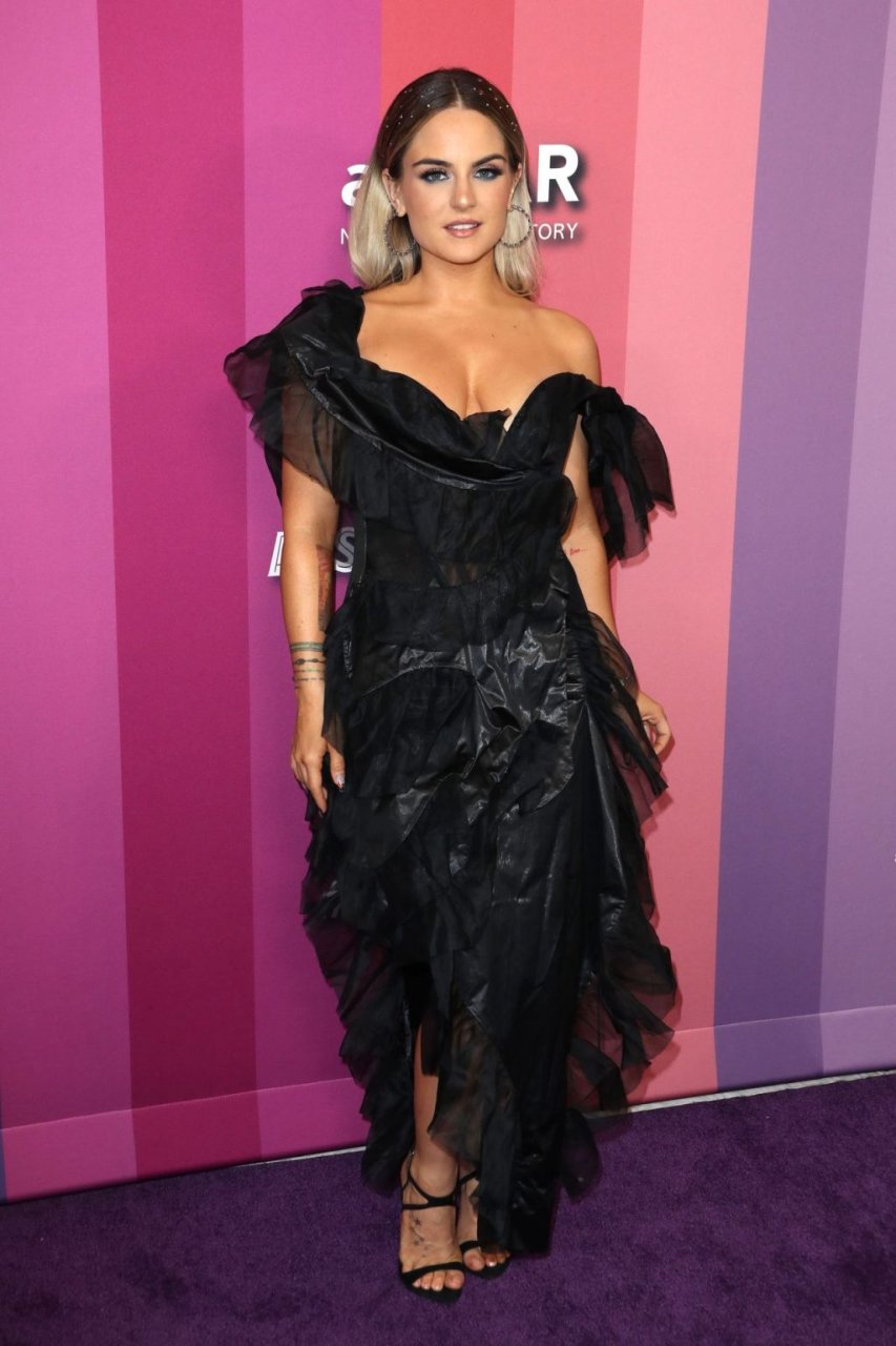 La cantante americana Joanna Noëlle Levesque (alias JoJo) è stata vista con un vestito nero, mettendo in mostra il suo décolleté al Gala amfAR 2019 di Los Angeles tenutosi presso i Milk Studios, 10/10/2019.