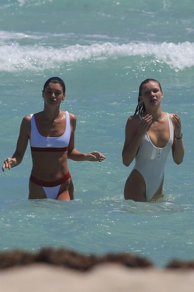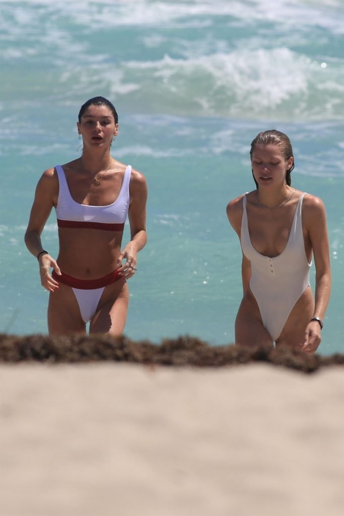 Giovani modelle Josie Canseco e Bella Banos (alias Baby Bells) si godono una giornata insieme sulla spiaggia a Miami, 28/03/2018. La coppia ha mostrato i loro corpi snelli e sexy in bikini mentre giocavano nell’oceano e scherzavano tra di loro.