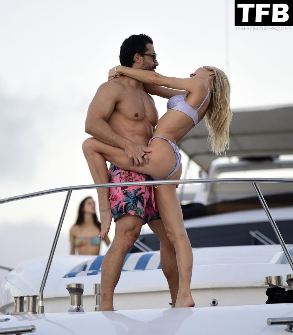 La modella di Victoria’s Secret Joy Corrigan indossa un costume da bagno succinto mentre viene fotografata mentre fa festa su uno yacht con il suo fidanzato Mehran e amici, 02/05/2022.