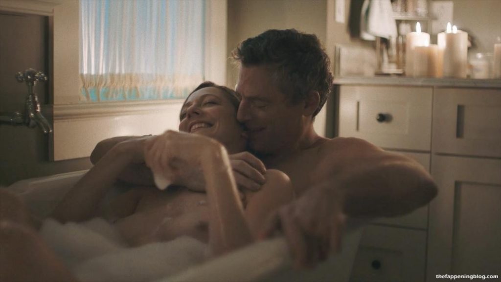 Nella scena successiva, Judy Greer è distesa nuda in una vasca da bagno, con i seni visibili sopra l’acqua.