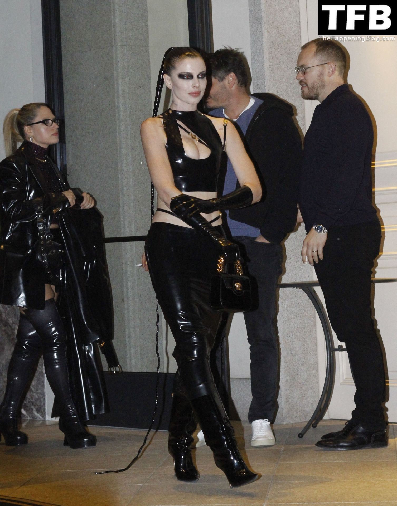 L’attrice/modella americana Julia Fox arriva alla cena post sfilata di Versace durante la Women Milan Fashion Week Autunno-Inverno 2022-23 a Milano, Italia, 25/02/2022.