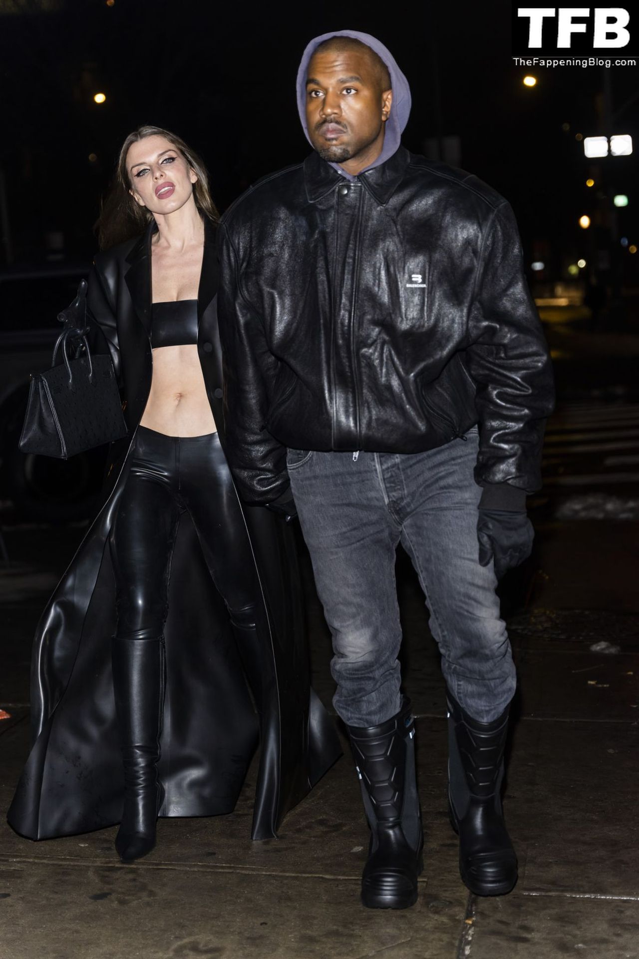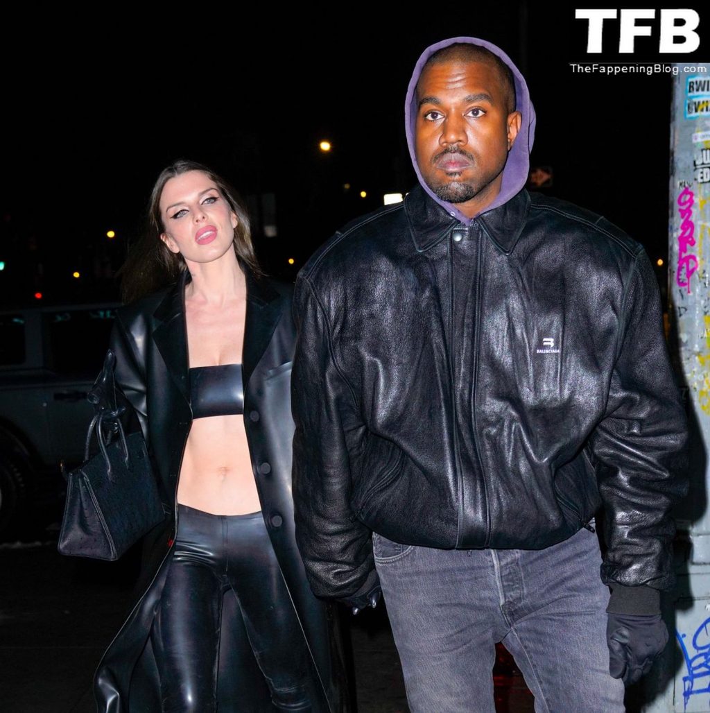 Model/attrice Julia Fox è stata vista indossare un top in PVC minuscolo e mostrare i capezzoli mentre arrivava con Ye al ristorante Lucien a New York, 02/08/2022.