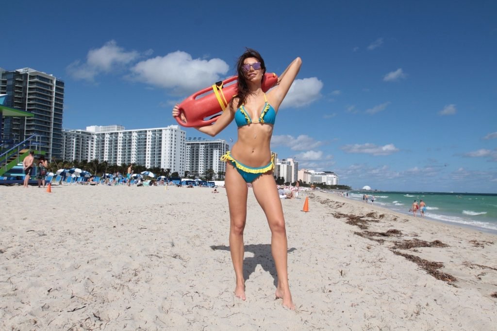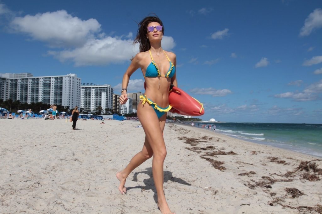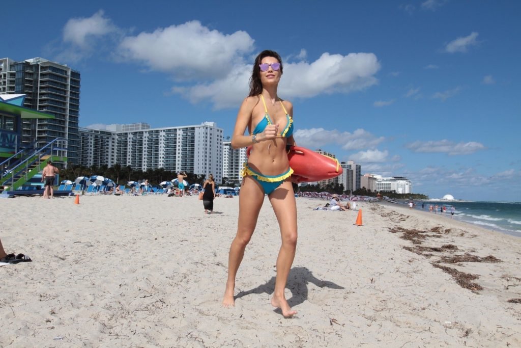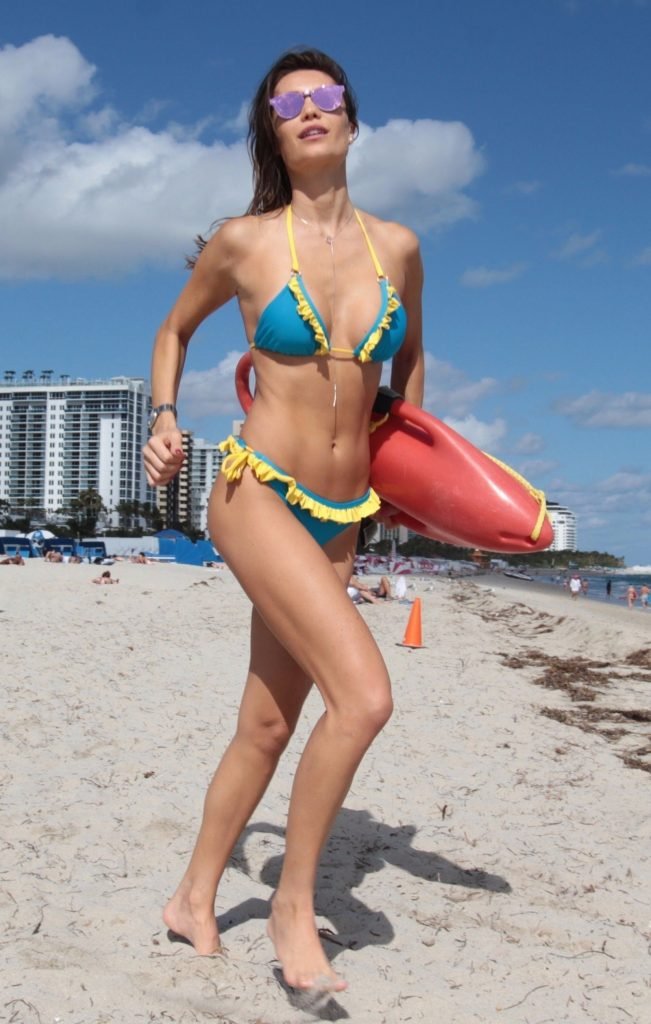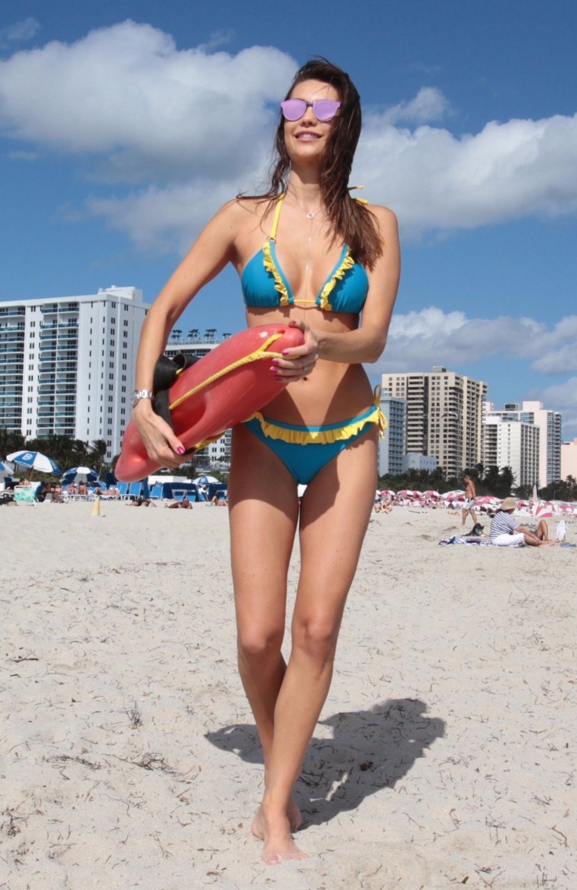 Modella e stilista di costumi da bagno Julia Pereira (30) mostra il suo corpo in bikini sulla spiaggia di Miami, 12/02/2017.