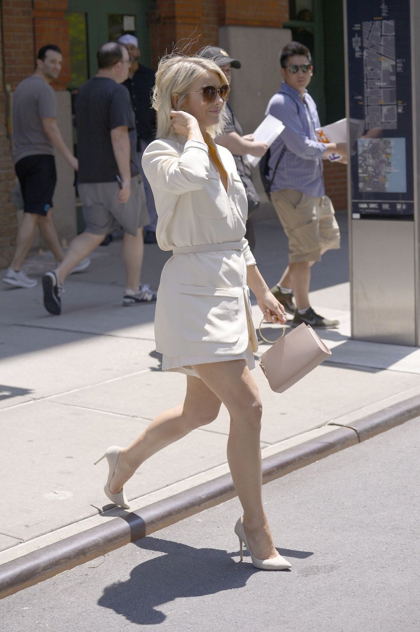 Fashionable Julianne Hough è stata vista uscire dal suo hotel a New York City, 23/06/2019. La ballerina e attrice americana di 30 anni indossava un gilet beige abbinato a pantaloncini beige e tacchi nudi.
