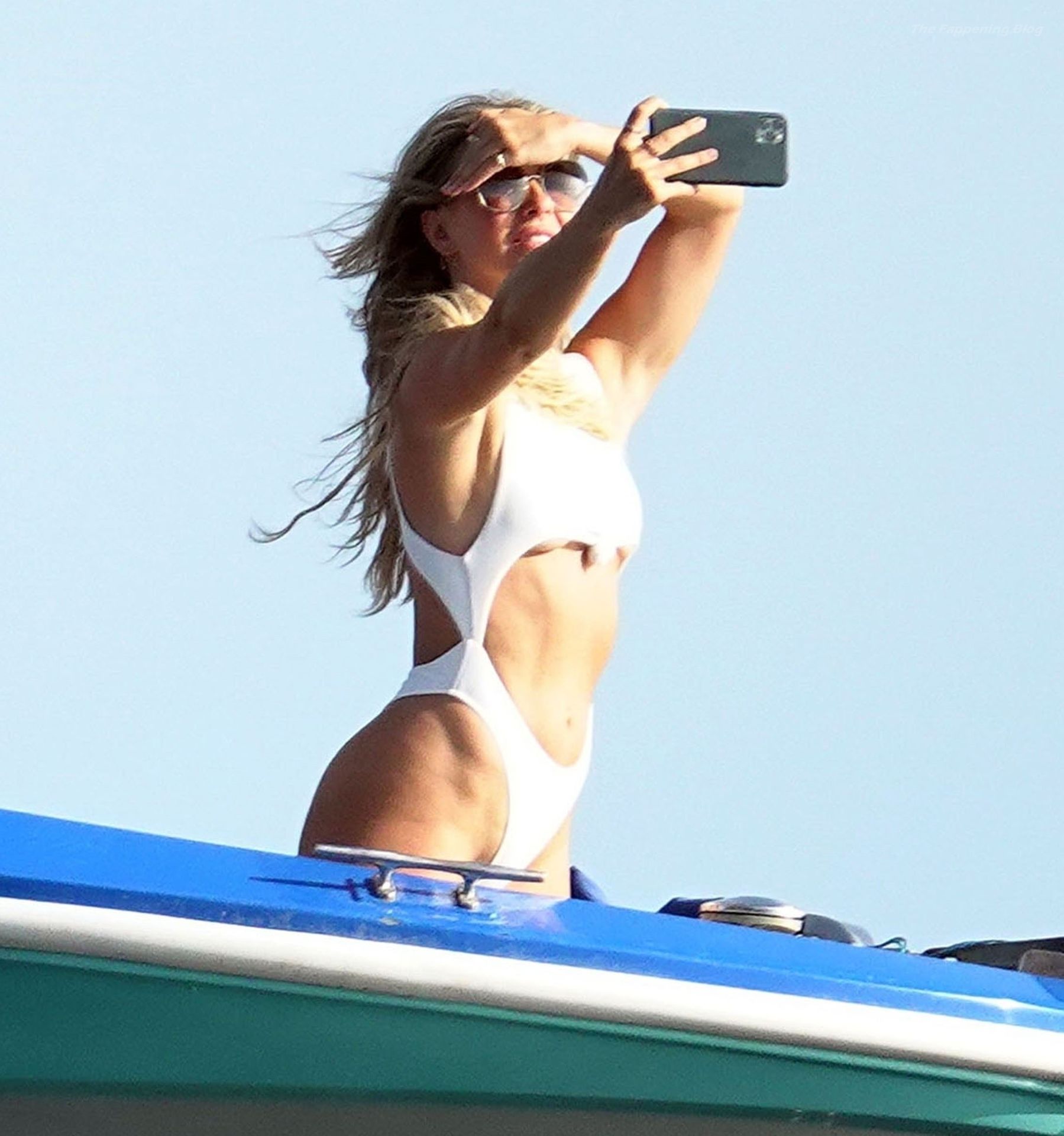 Julianne appariva sexy sulla sua barca in mare mentre scattava qualche selfie durante le sue calde vacanze estive.