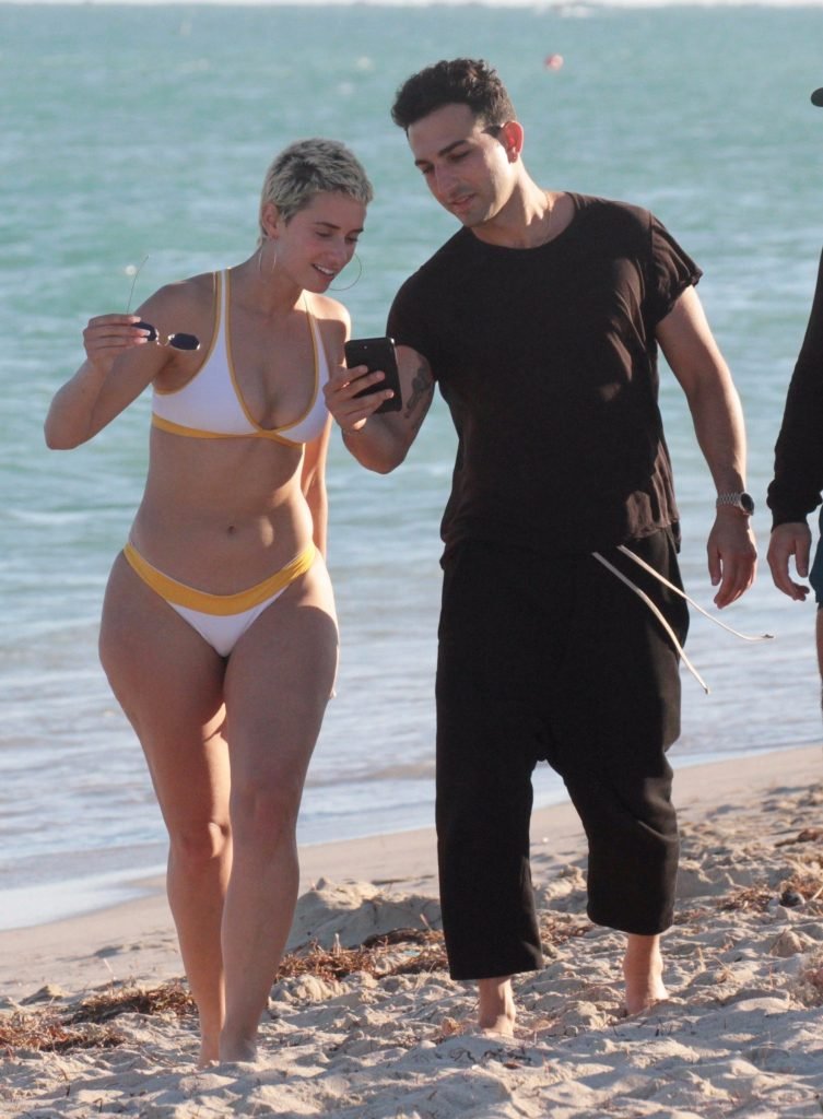 La star di Instagram YesJulz si gode la spiaggia con gli amici a Miami, 26/11/2017. La musicista di 27 anni mostra la sua figura in un bikini bianco&giallo.