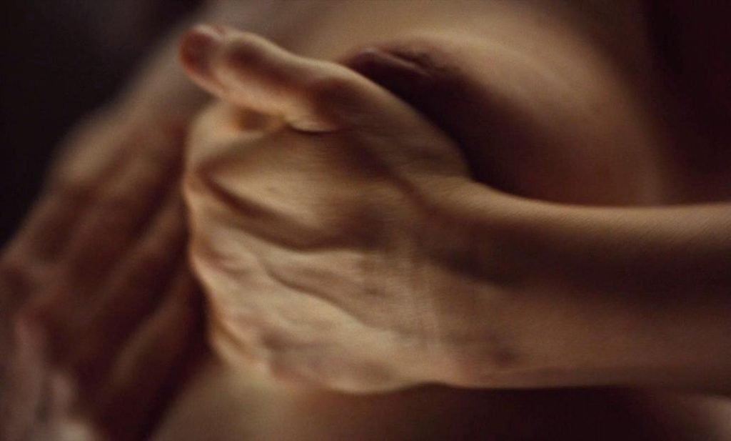 Ecco la scena di nudo di Juliette Binoche in “High Life” (2018). Juliette Binoche (Dr. Dibs) inizia a slacciare il suo completo da infermiera. Mette un preservativo su un dildo macchina sessuale e poi si scatena con esso. La vediamo contorcersi da dietro con le braccia appese sopra. Vediamo seni, sedere, un po’ di peluria, e poi un enorme merkin.