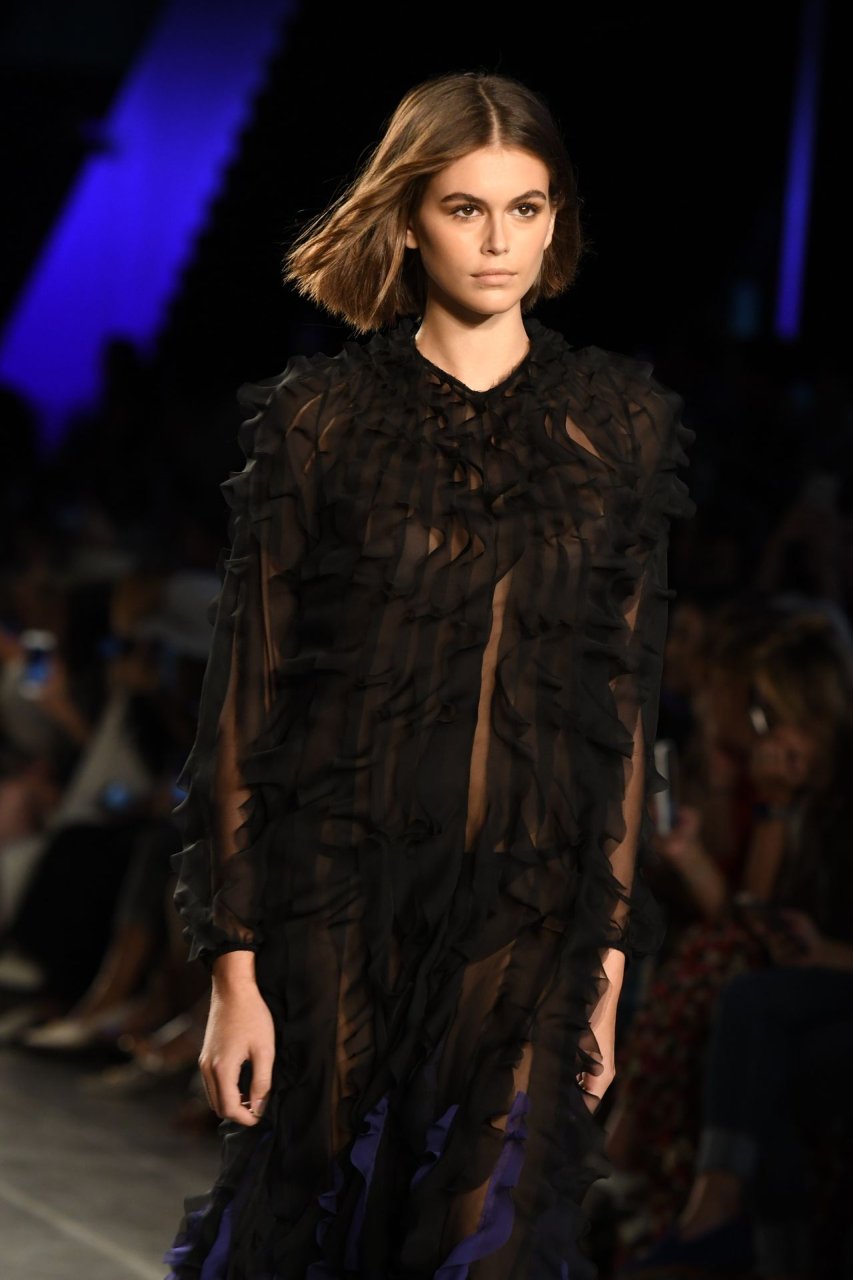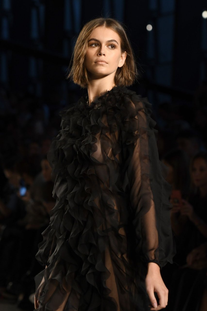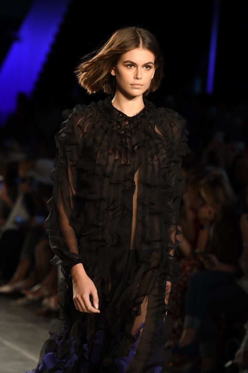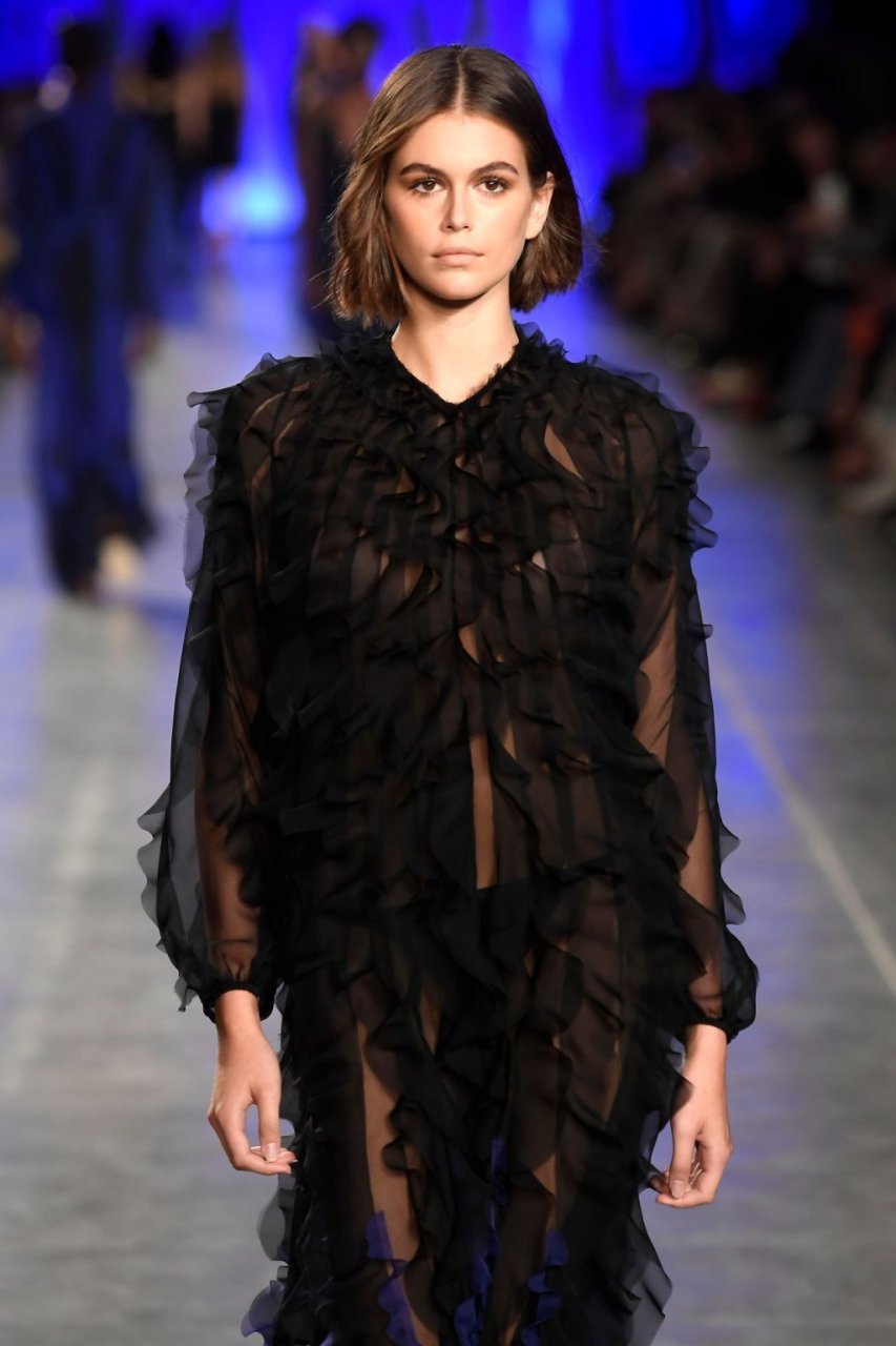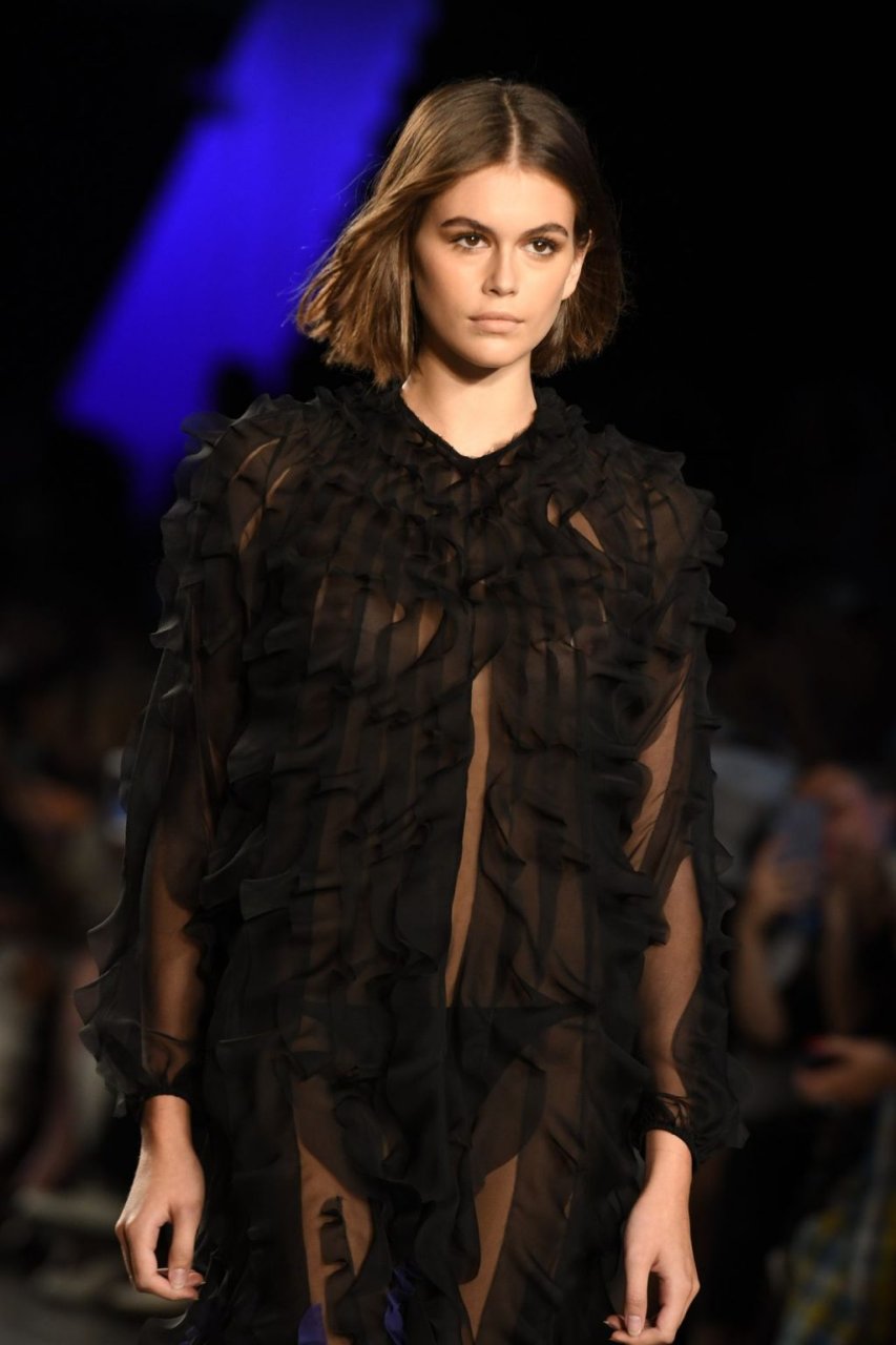 Modella Kaia Gerber (18) ha mostrato il suo seno alla sfilata Alberta Ferretti Primavera/Estate 2020 durante la Milano Fashion Week, 18/09/2019.