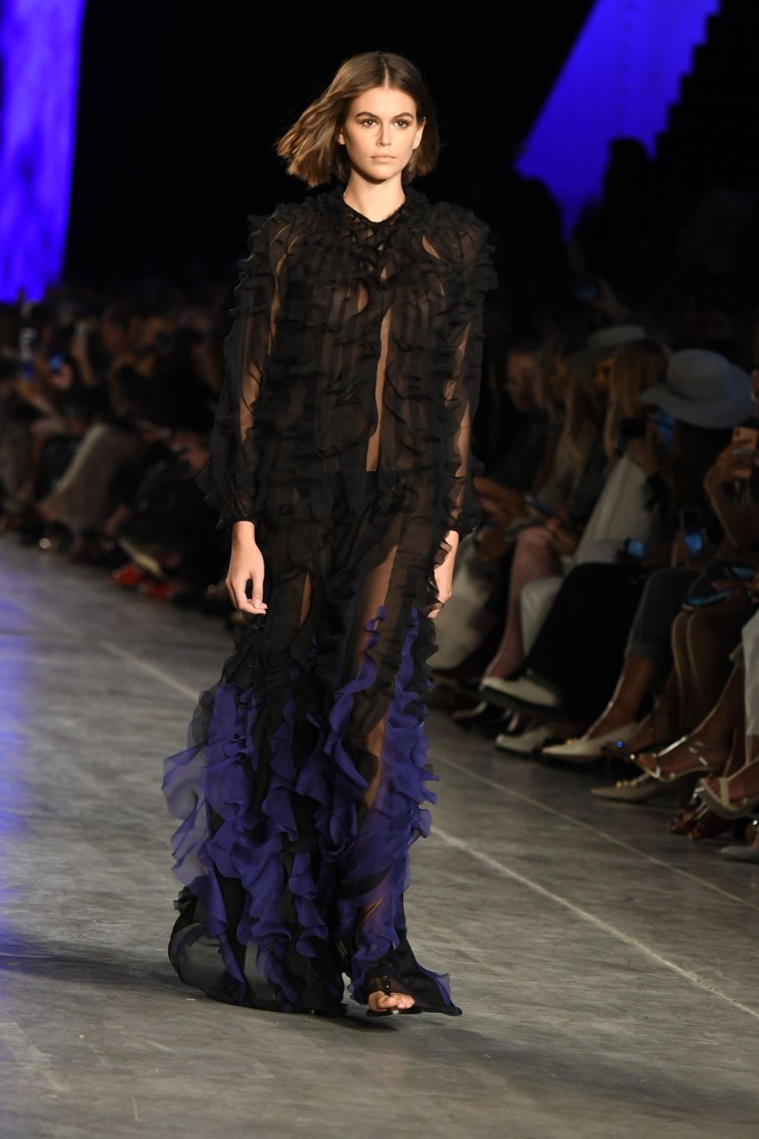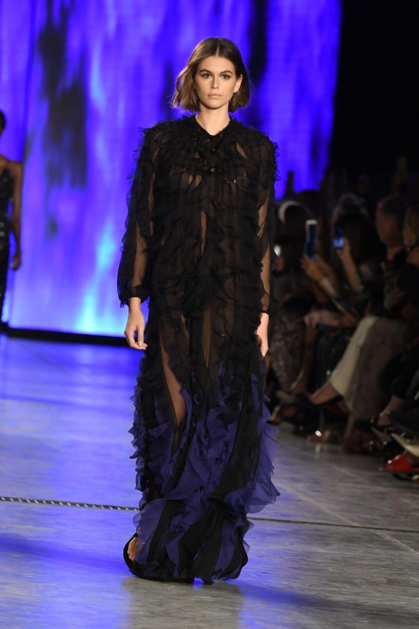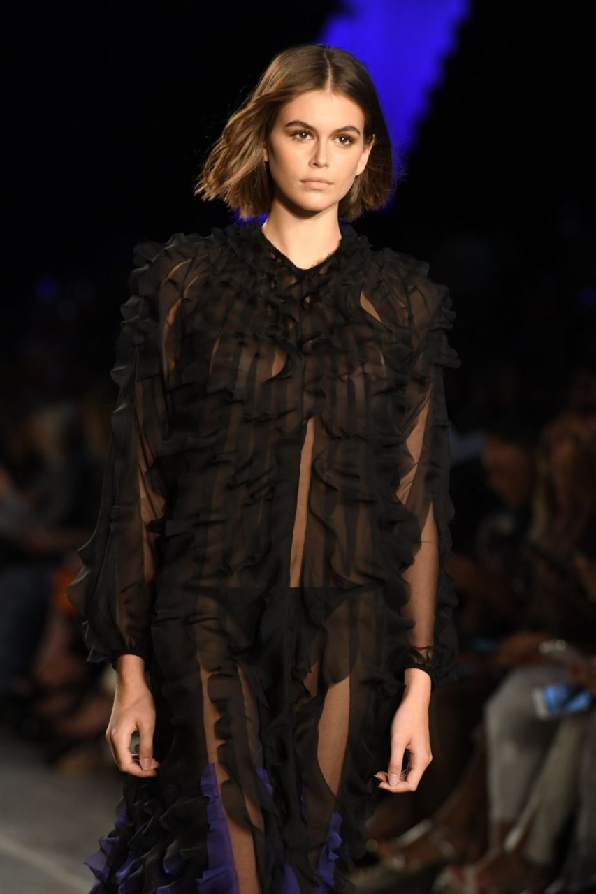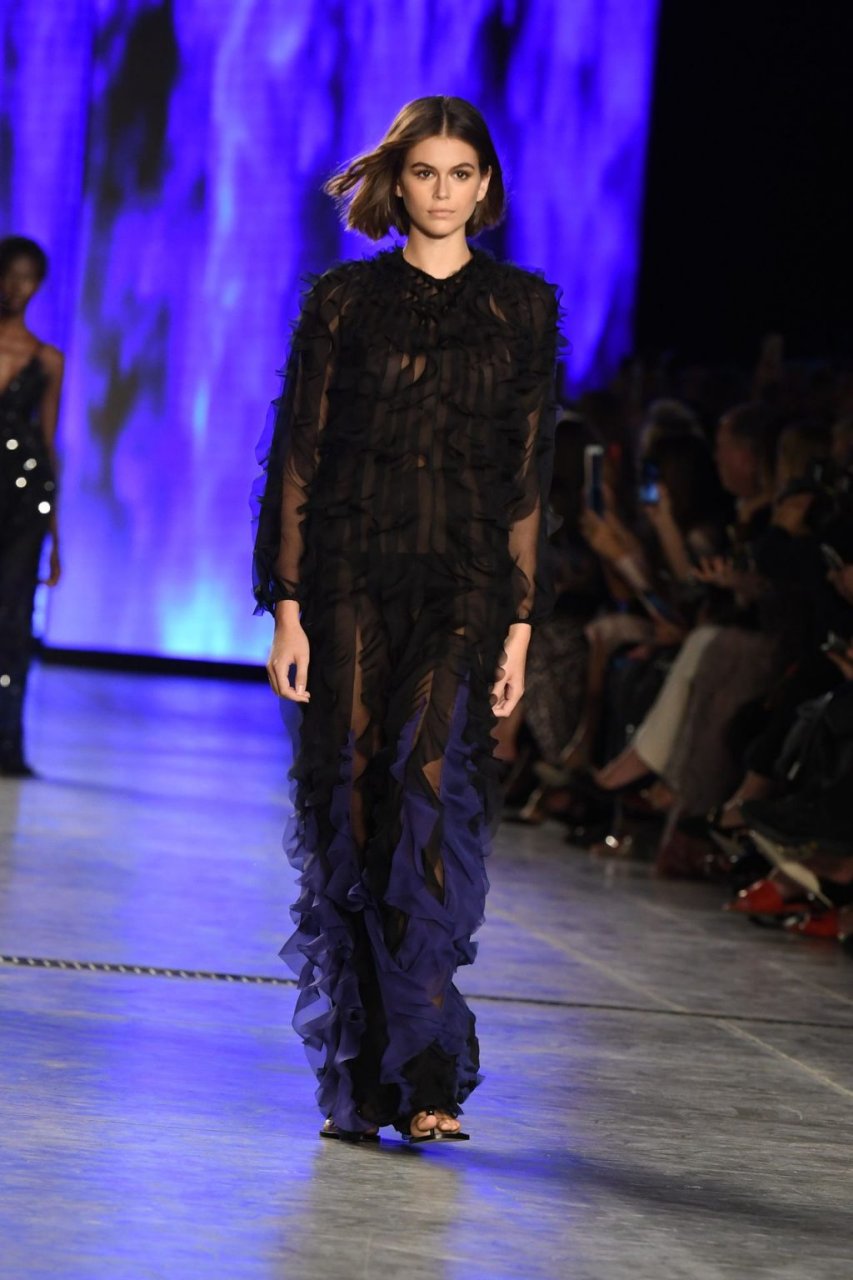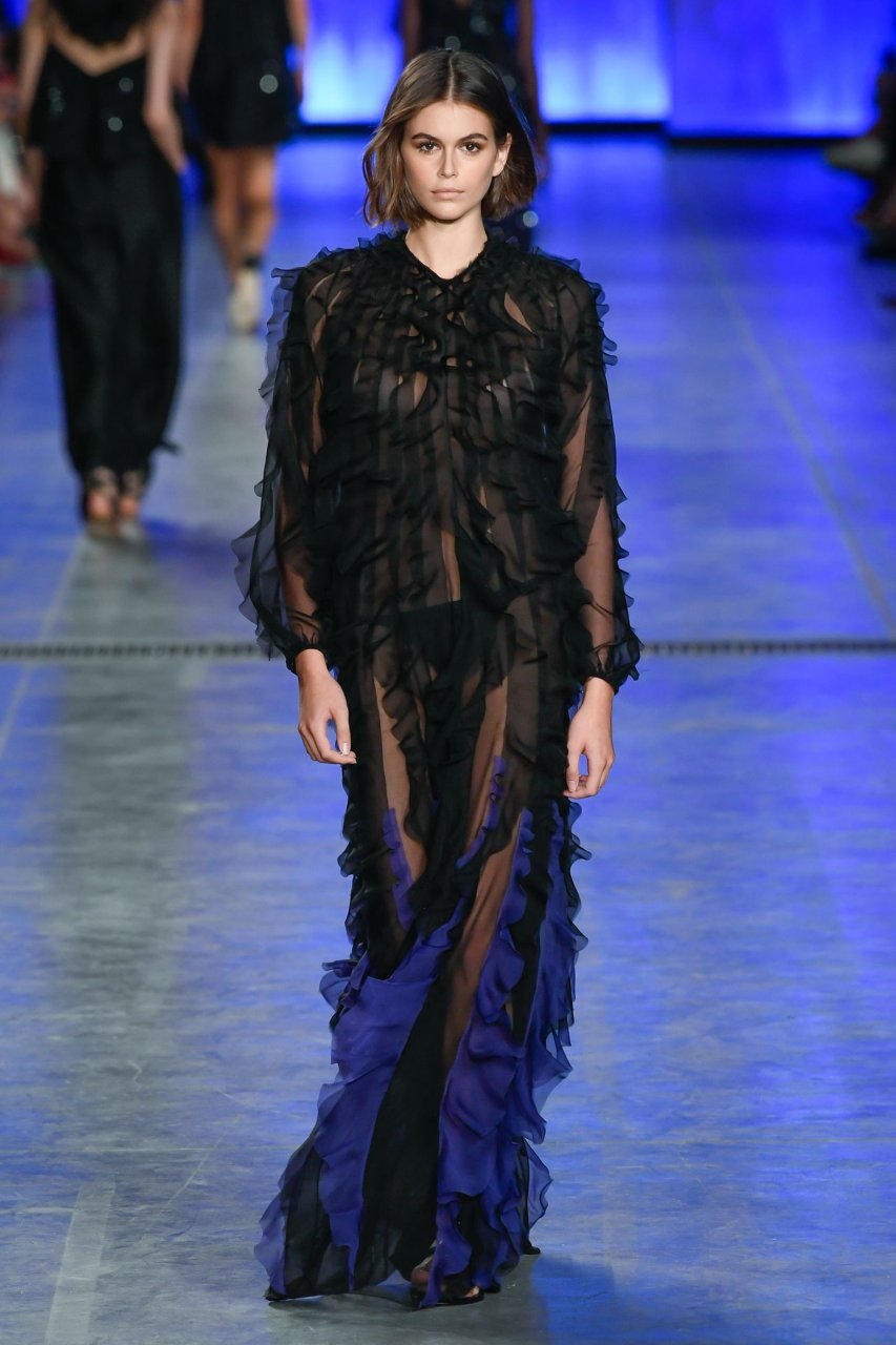 Modella Kaia Gerber (18) ha mostrato il suo seno alla sfilata Alberta Ferretti Primavera/Estate 2020 durante la Milano Fashion Week, 18/09/2019.