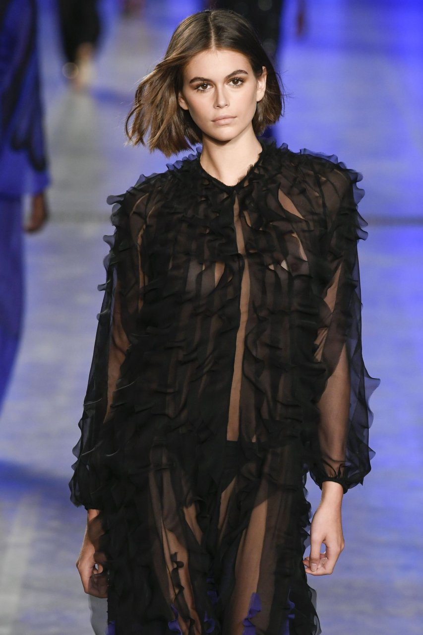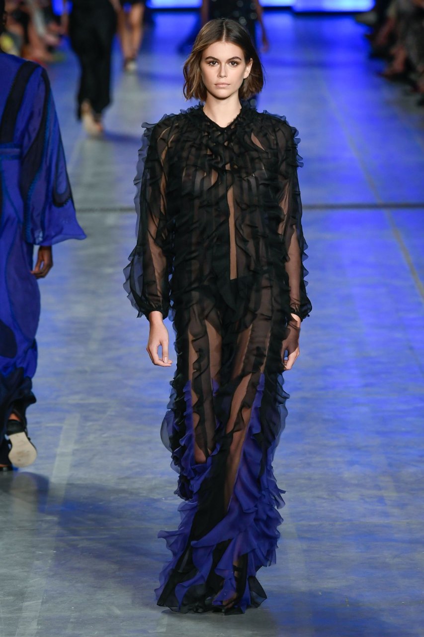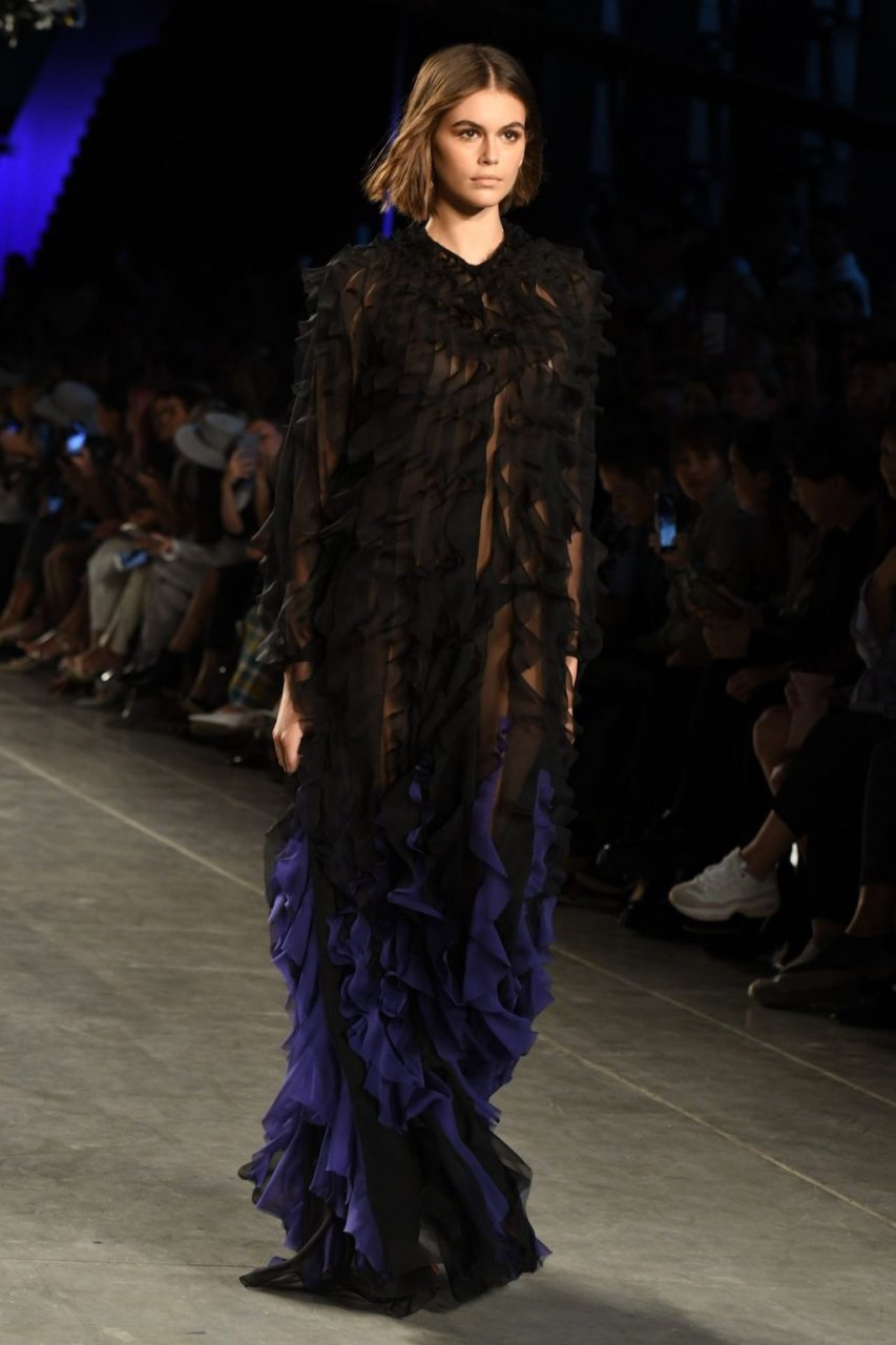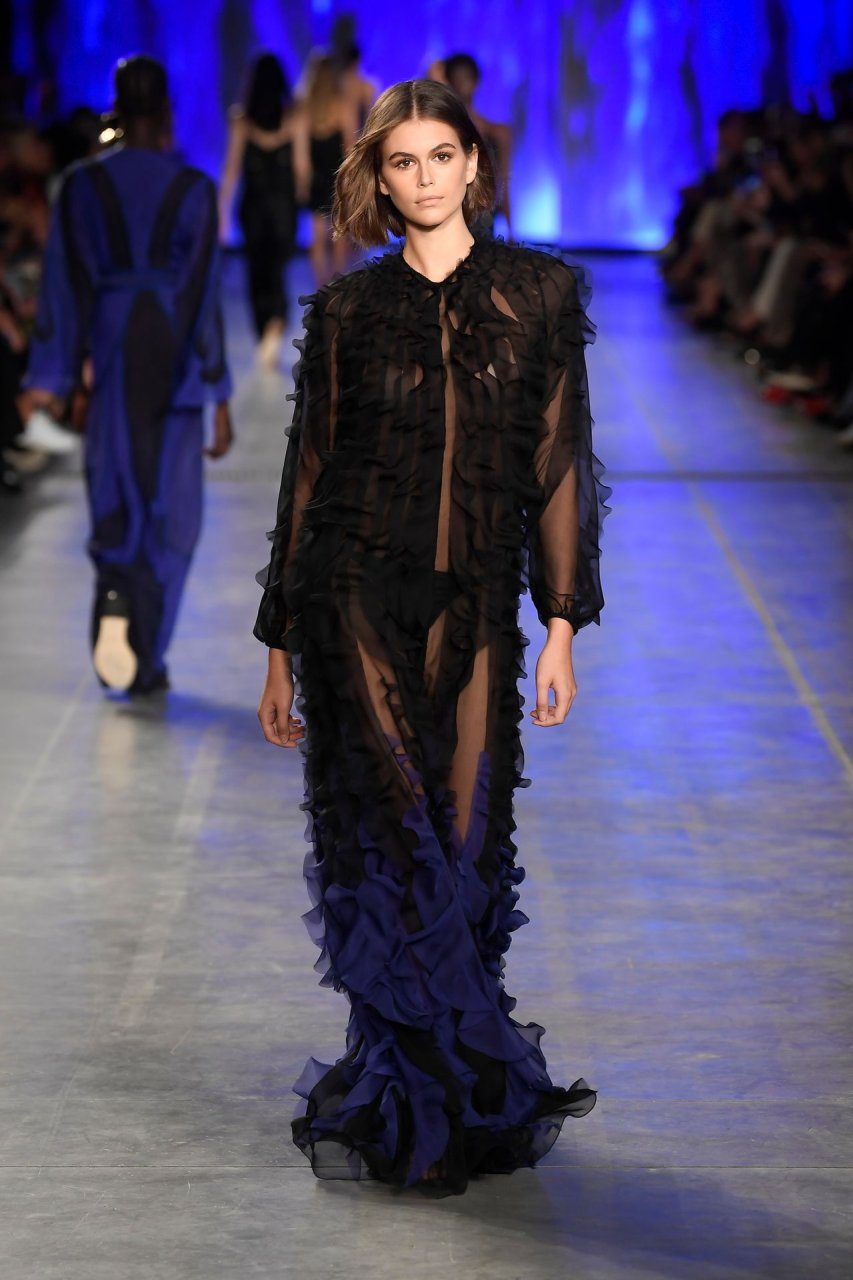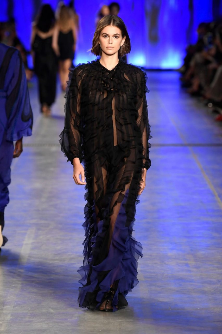 Modella Kaia Gerber (18) ha mostrato il suo seno alla sfilata Alberta Ferretti Primavera/Estate 2020 durante la Milano Fashion Week, 18/09/2019.