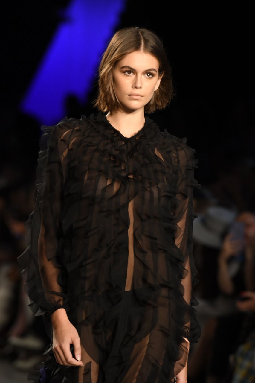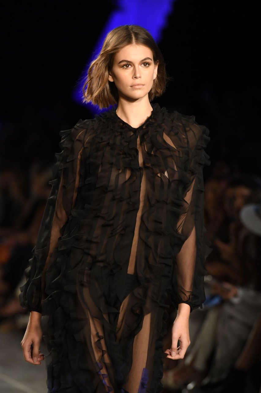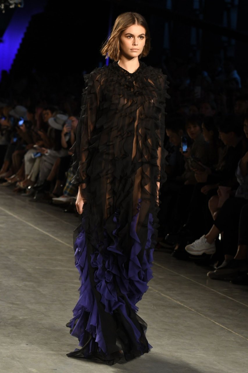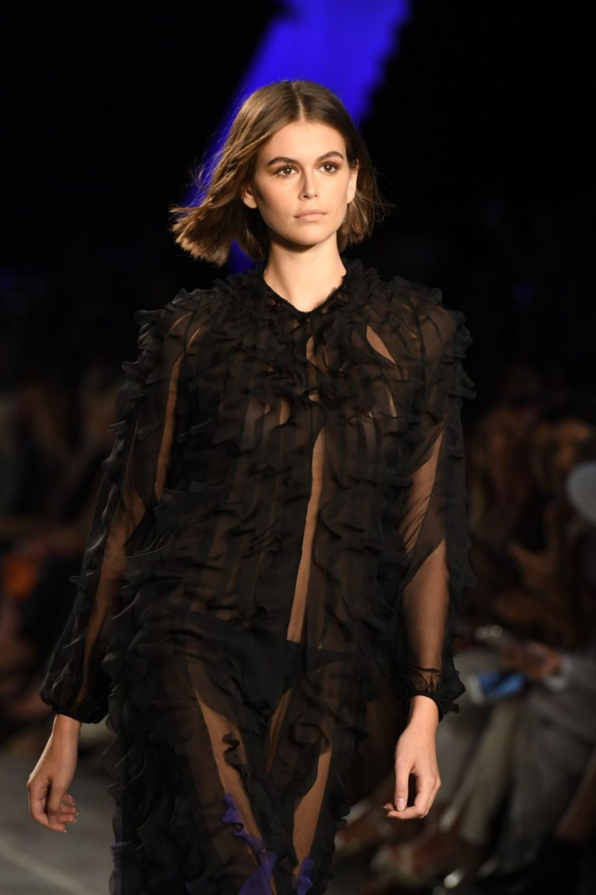 Modella Kaia Gerber (18) ha mostrato il suo seno alla sfilata Alberta Ferretti Primavera/Estate 2020 durante la Milano Fashion Week, 18/09/2019.