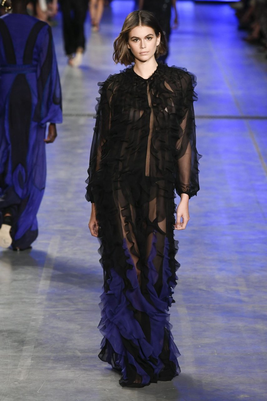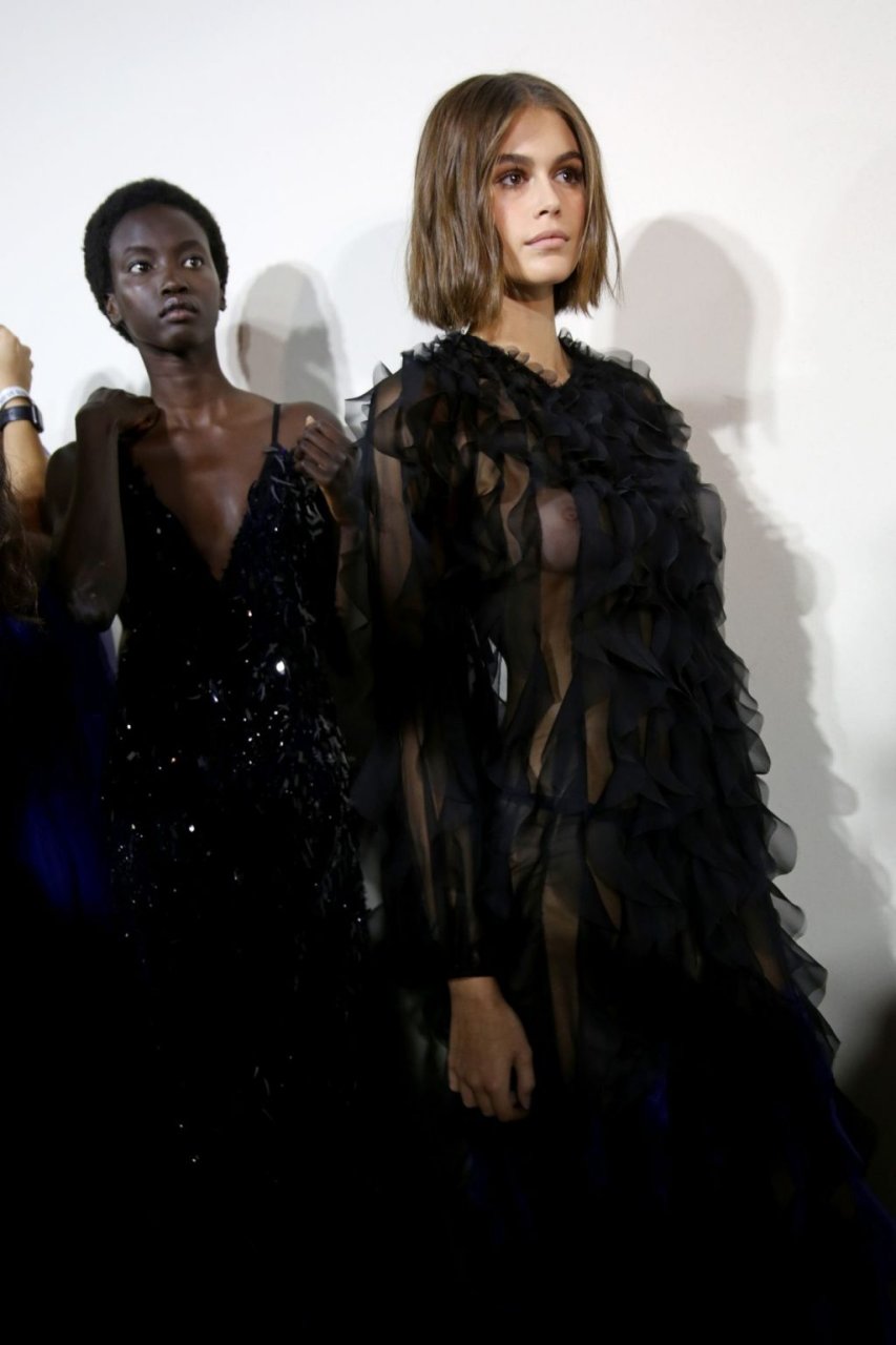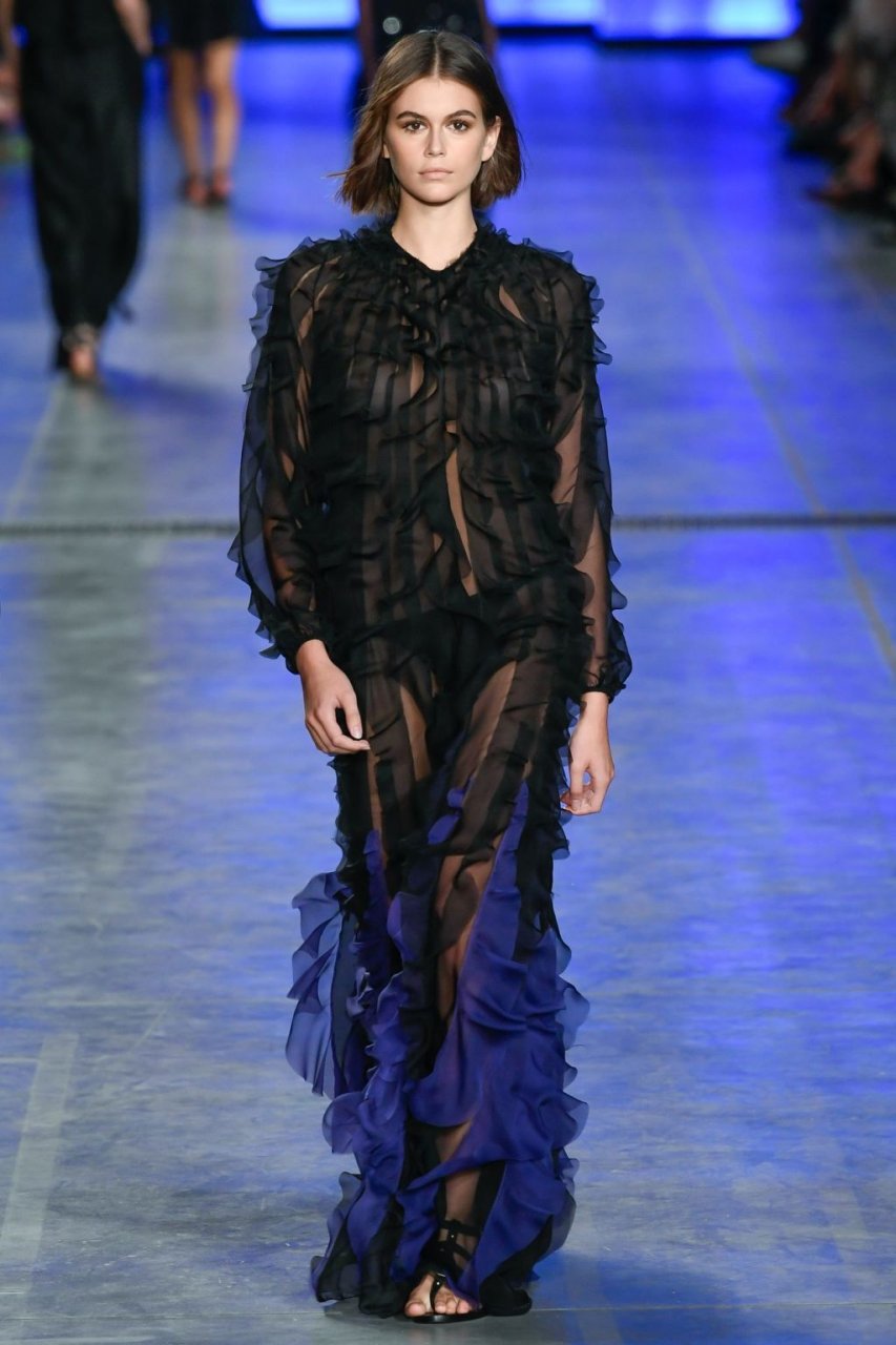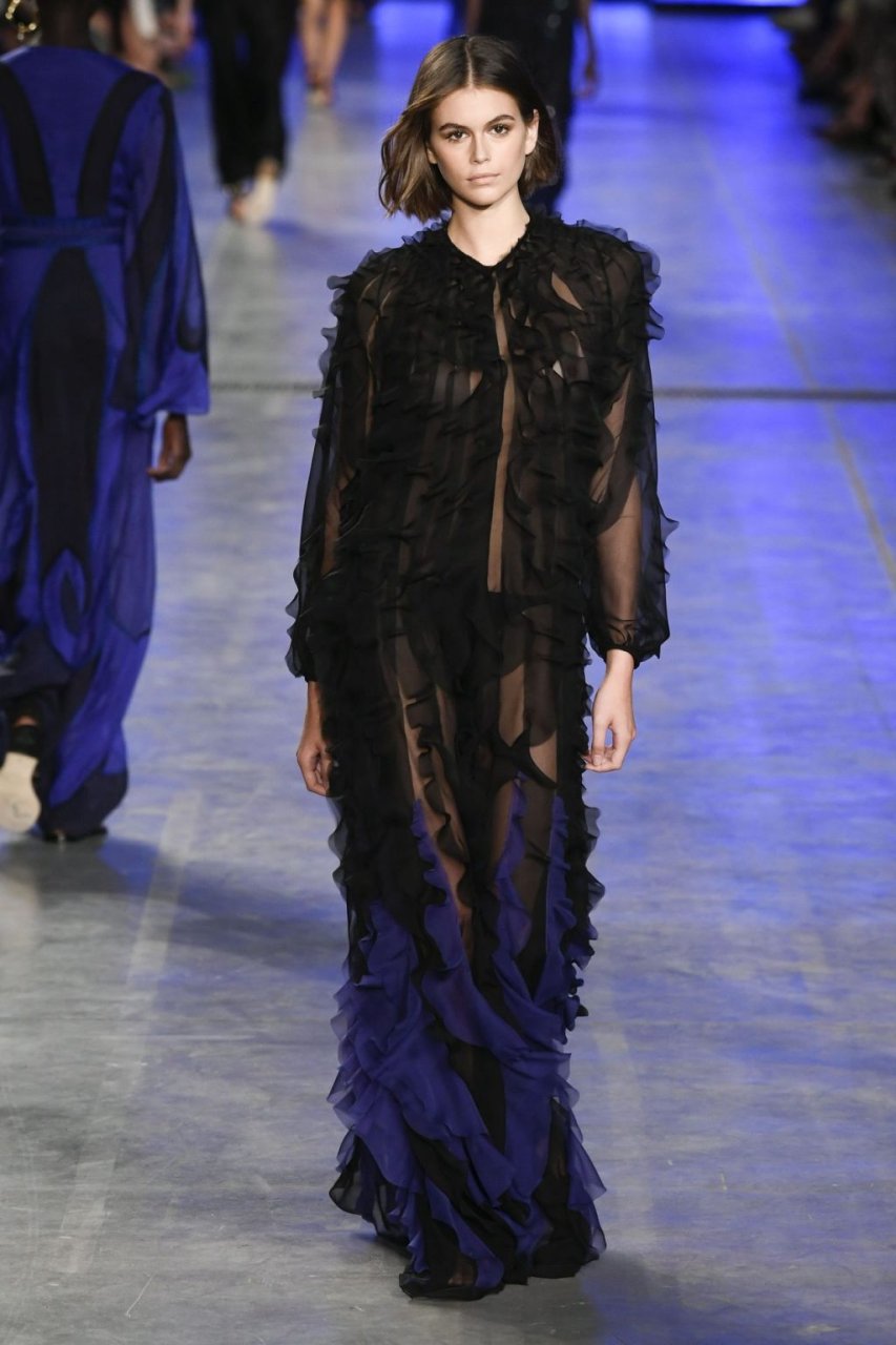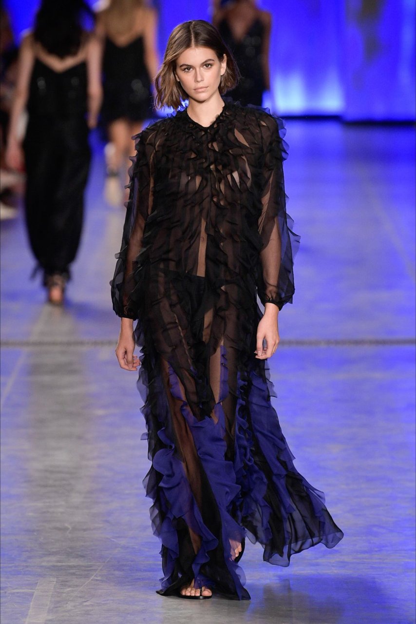 Modella Kaia Gerber (18) ha mostrato il suo seno alla sfilata Alberta Ferretti Primavera/Estate 2020 durante la Milano Fashion Week, 18/09/2019.