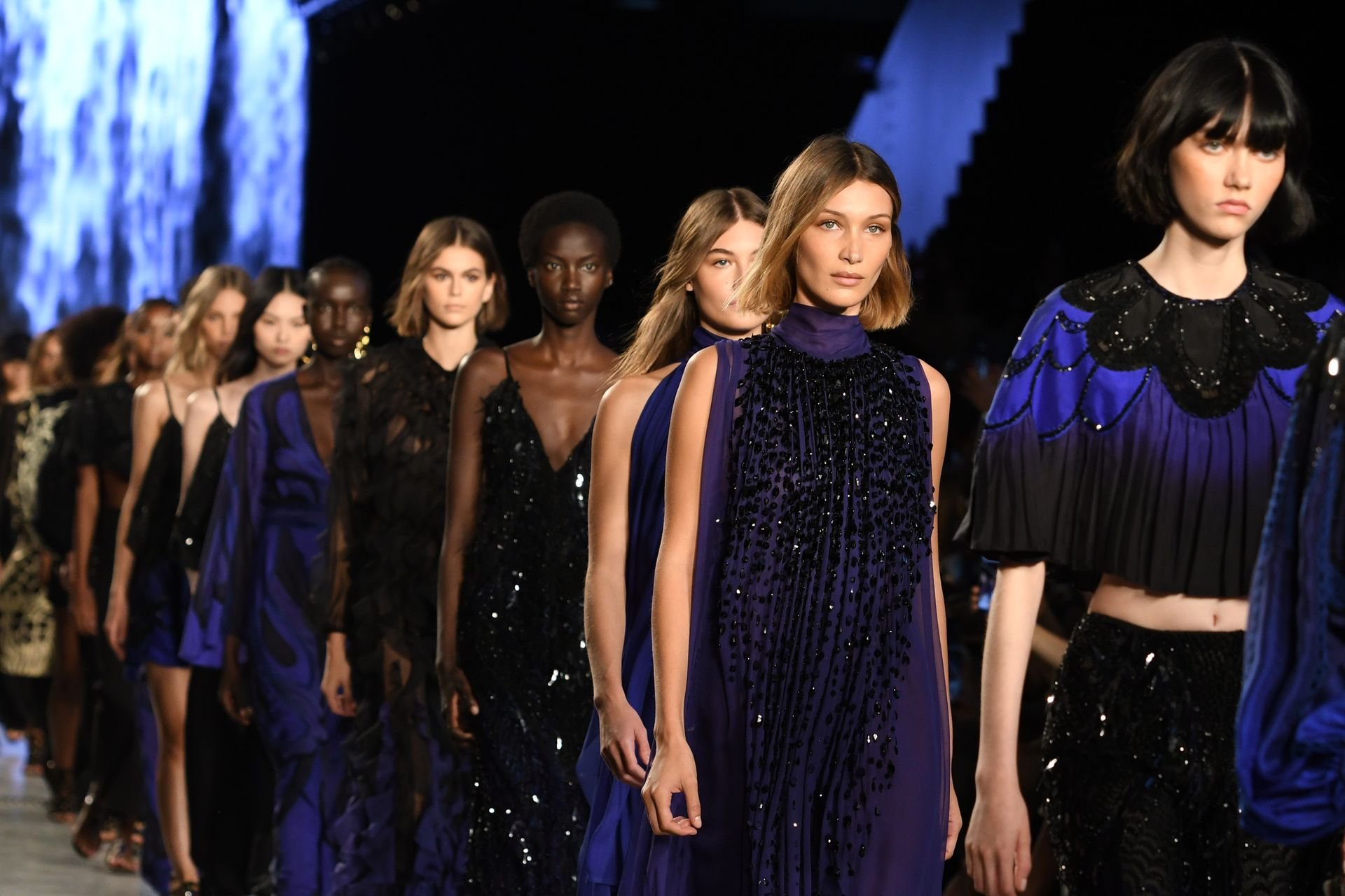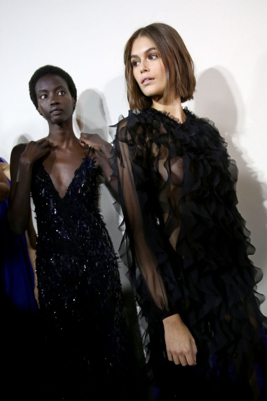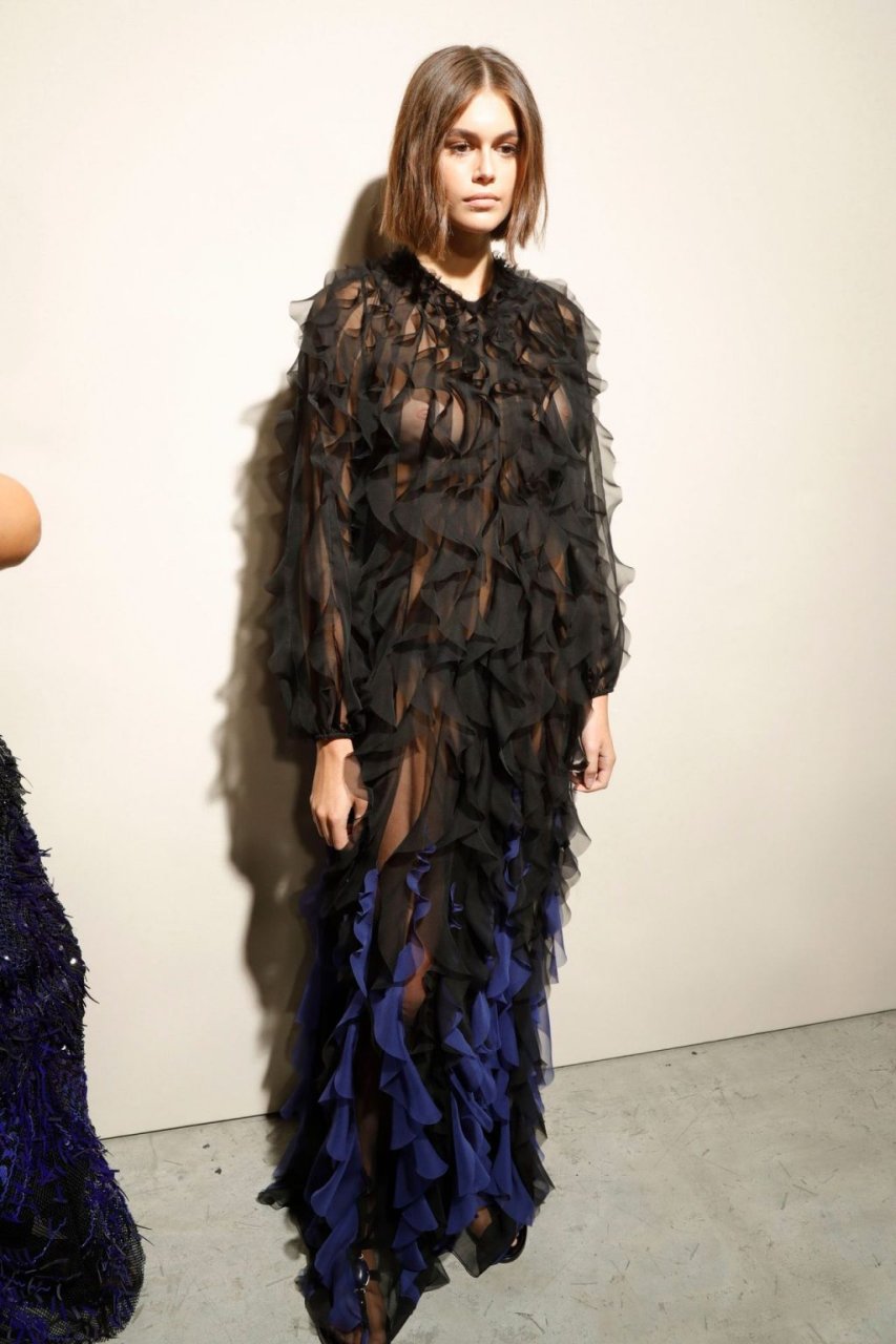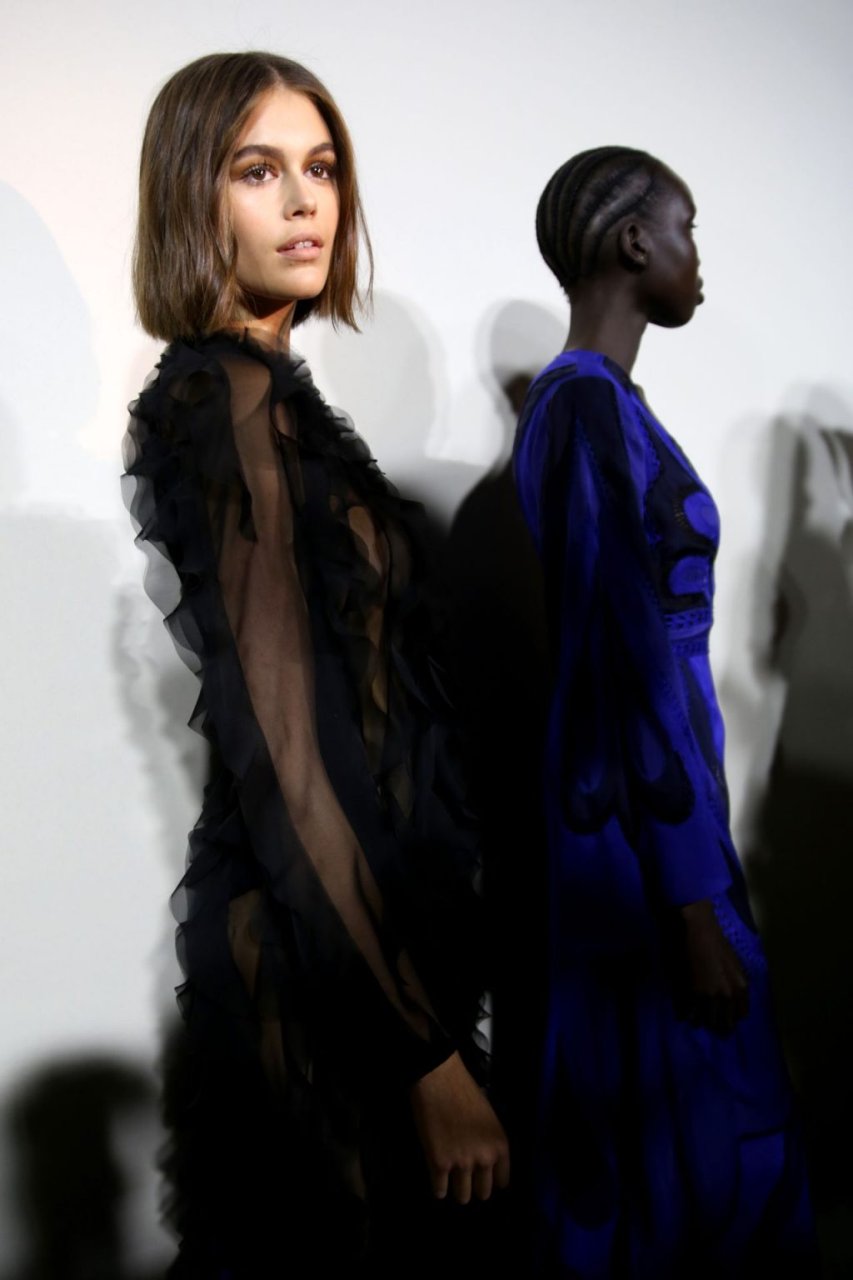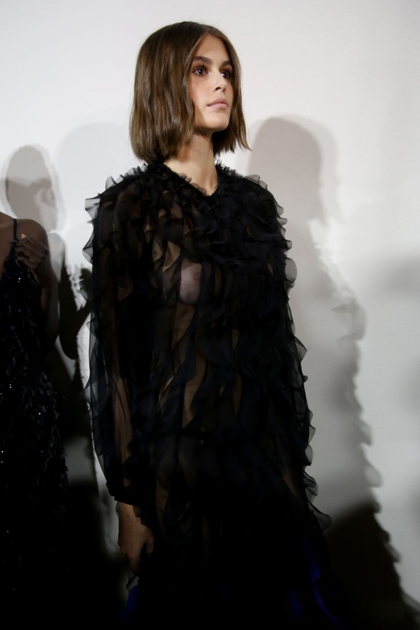 Modella Kaia Gerber (18) ha mostrato il suo seno alla sfilata Alberta Ferretti Primavera/Estate 2020 durante la Milano Fashion Week, 18/09/2019.