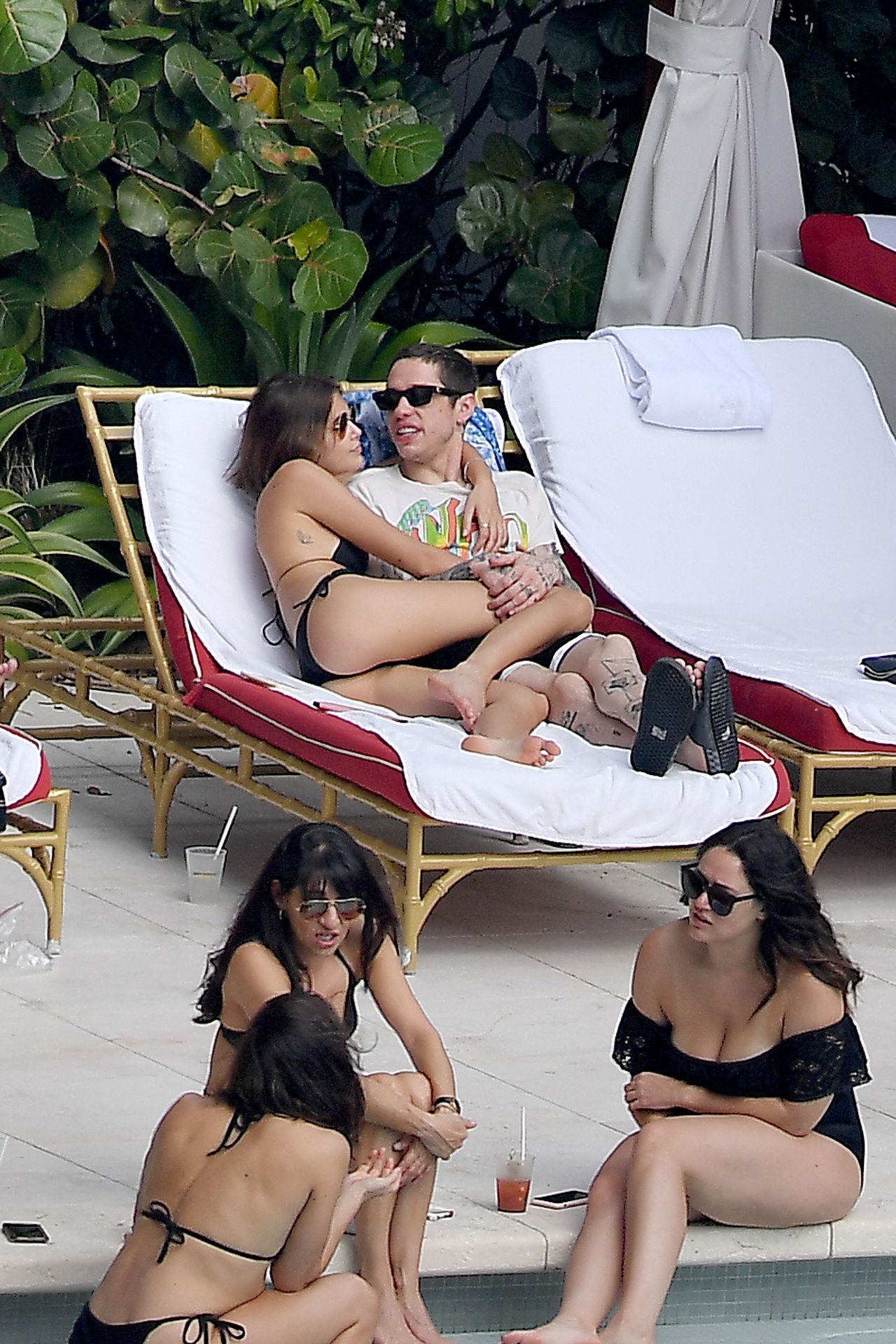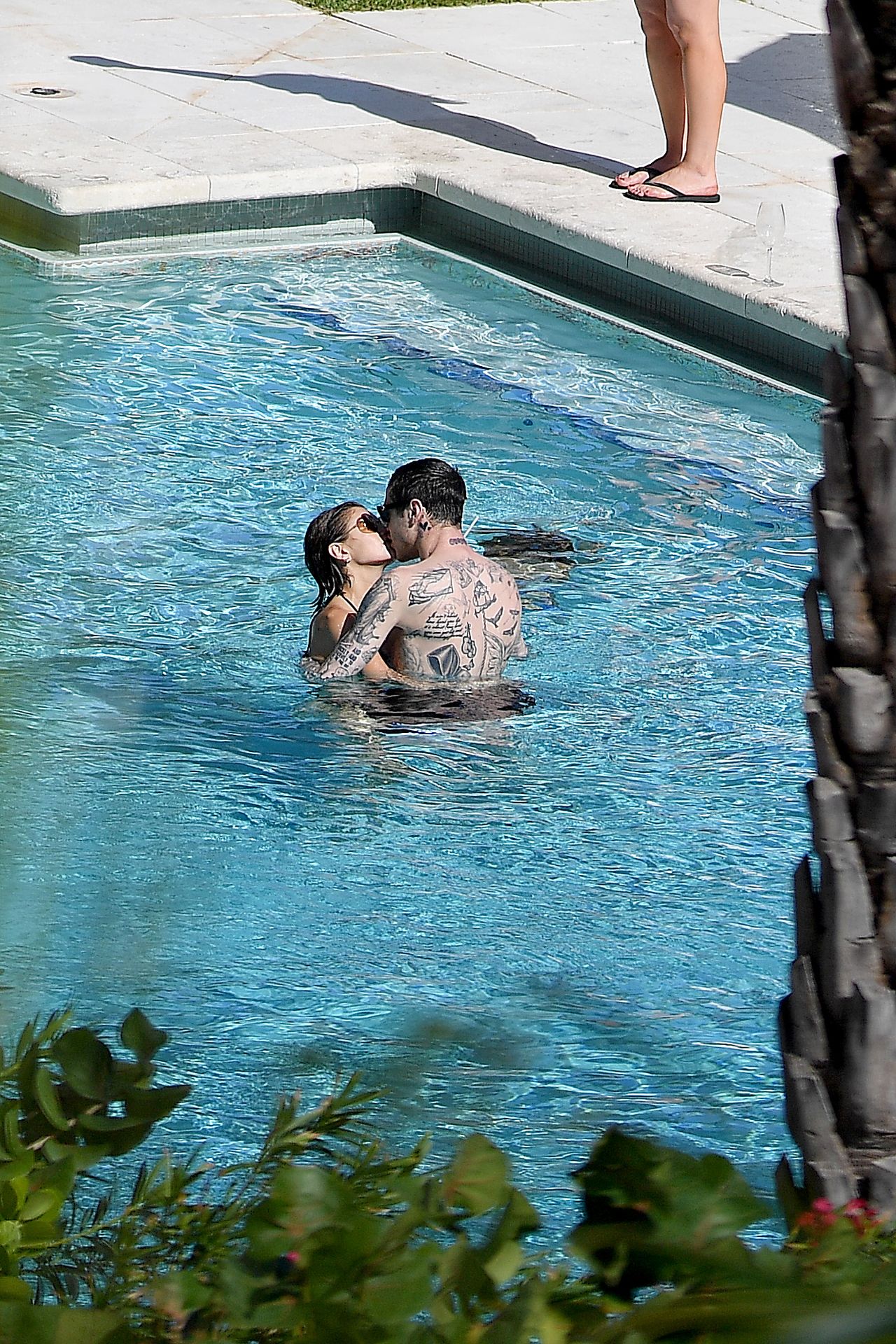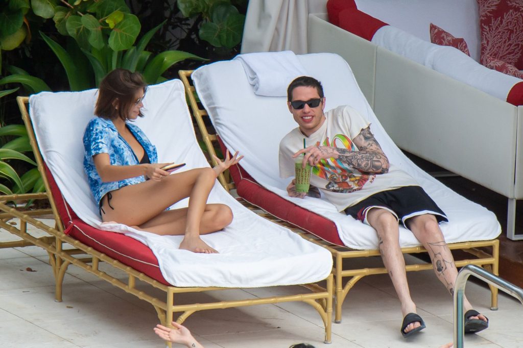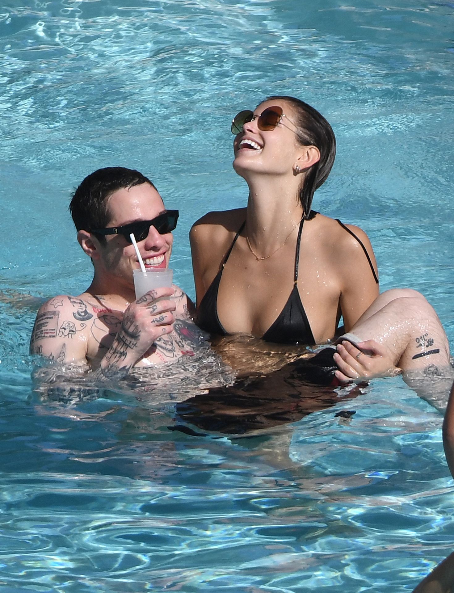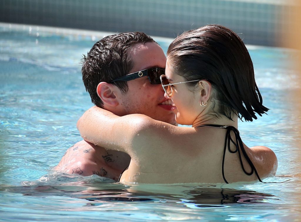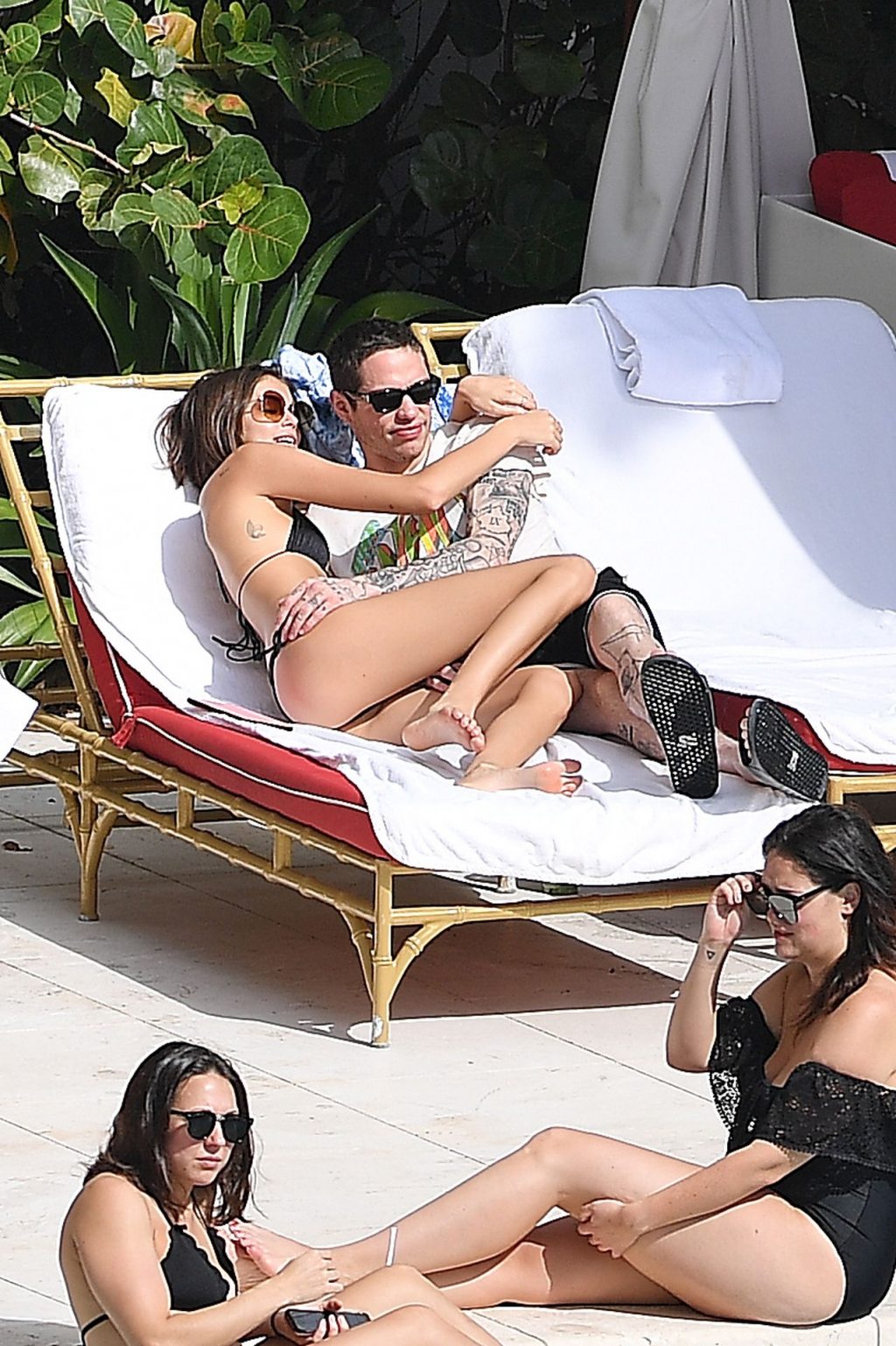 La figlia di Cindy Crawford, la modella Kaia Gerber, indossa un bikini nero mentre bacia il fidanzato Pete Davidson a bordo piscina a Miami, 23/11/2019.